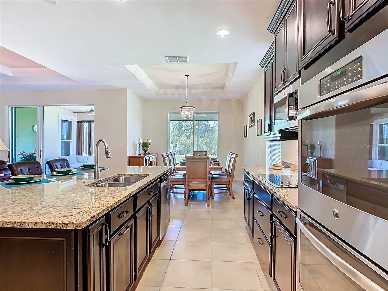WELCOME HOME!!! SIENA ON PRESERVE!!! Discover the elegance of the SIENA Model perfectly positioned on an OVERSIZED LOT in the Portofino Estates of Solivita. Nestled against pristine conservation, this STUNNING ESTATE HOME delivers privacy, beauty, and timeless architectural appeal. A classic Tuscan-style tile roof, a 2-Car PLUS Golf Cart Garage, and a warm, inviting foyer to set the tone for the sophistication inside. Step into a Gourmet Kitchen featuring rich granite countertops, stainless steel appliances, upgraded espresso cabinetry, a wine station, and a spacious walk-in pantry—an ideal space for the home chef. The modern, open-concept layout offers 2,427 Sq. Ft. of interior living space, including a Great Room with a striking coffered ceiling, a formal Dining Room with a tray ceiling, a large Den, 3 generous Bedrooms, 2 Full Baths, and a Powder Room. The expansive Screened and Covered Lanai overlooks serene conservation views, creating the perfect backdrop for morning coffee or evening gatherings. The Primary Suite is a true retreat, offering TWO walk-in closets and an upgraded spa-inspired bath with a HUGE tiled walk-in shower with glass surround, dual vanities, and a private water closet. Additional upgrades include ceramic tile throughout the main living areas and laminate flooring installed in April 2022 in all bedrooms and the den. The exterior was freshly painted in May 2022. This home offers the ideal blend of luxury, comfort, and extra space, perfect for entertaining family and friends in grand style. Bring your personal touch and make this exceptional residence your own.
