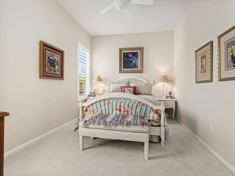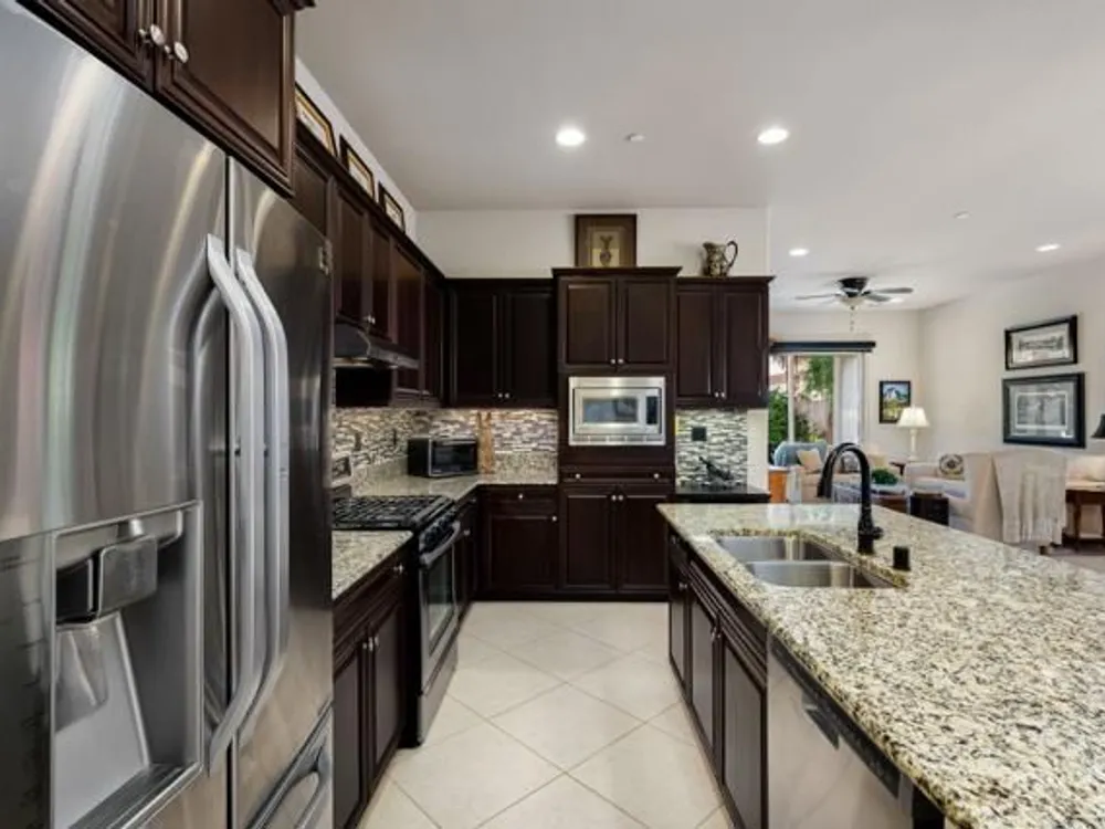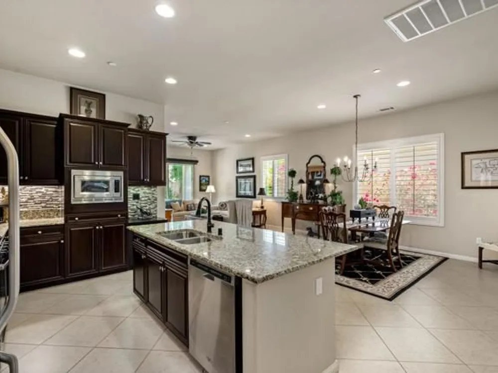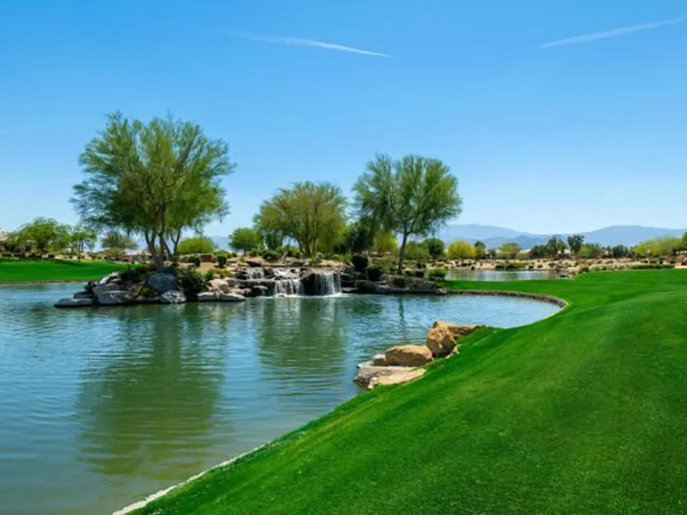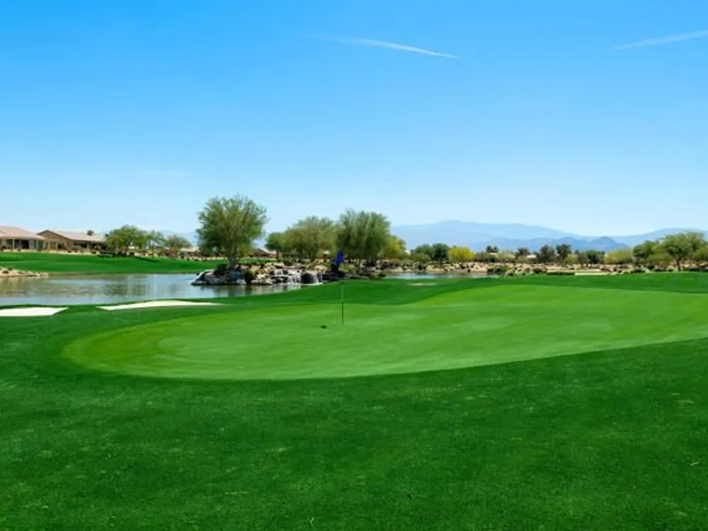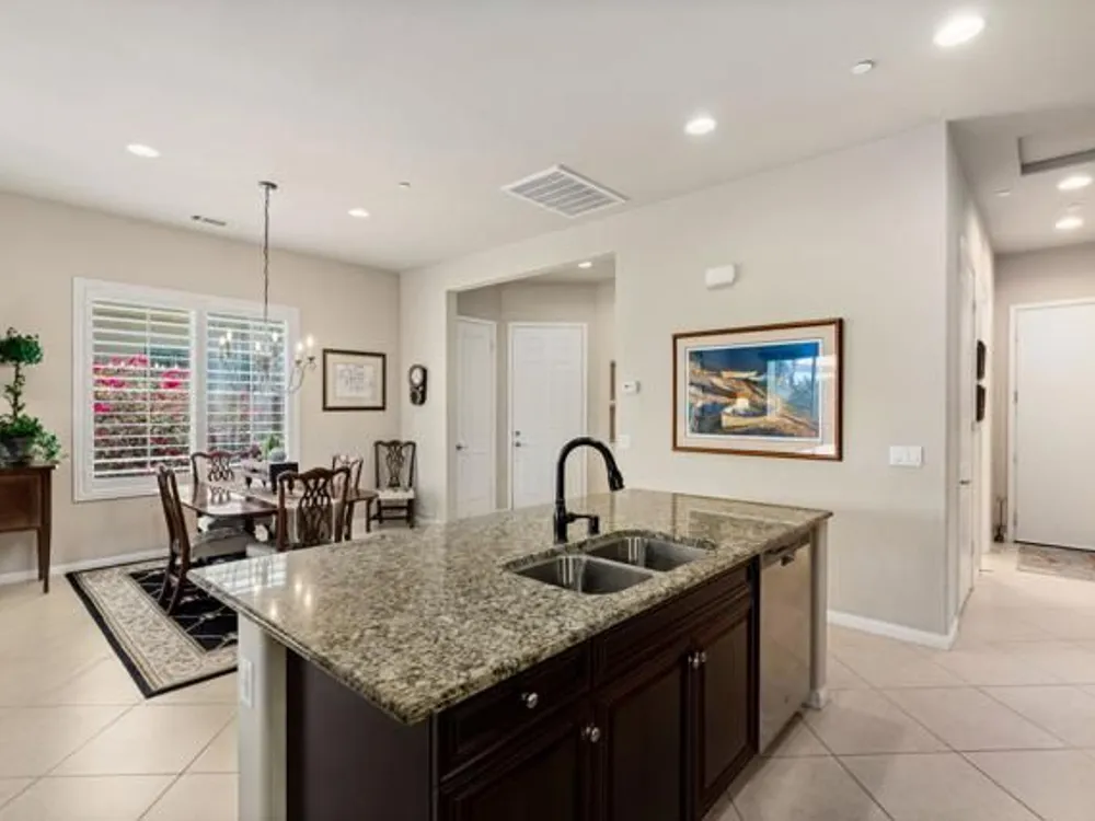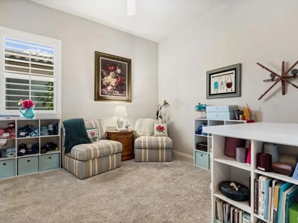 Located in the coveted 55+ neighborhood of Sun City Shadow Hills, this stunning 3-BEDROOM, 2-bath home offers the perfect blend of comfort, style, and function. The open-concept Inspiration floor plan features high ceilings, abundant natural light, and elegant wood-finish cabinetry throughout. A chef's kitchen shines with granite slab counters, stainless steel appliances, custom backsplash, and a built-in wine cooler. The primary bedroom with en-suite bath includes a CUSTOMIZED CLOSET while the guest rooms (one with an en-suite bath) are thoughtfully separated for privacy. Upgrades include PLANTATION WOOD SHUTTERS, designer lighting, diagonal-set tile flooring, plush bedroom carpet, ceiling fans, and a REMOTE SOLAR SHADE at the patio slider. Step outside to a private backyard oasis with covered and open patios, lush lawn, mature landscaping, and a drip system for easy care. The EXTENDED GARAGE offers GOLF CART SPACE and storage cabinets. The laundry room includes upper and lower cabinets and Electrolux washer and dryer. QUALITY FURNISHINGS and GOLF CART negotiable outside of escrow. Enjoy world-class amenities including golf, pools, fitness centers, and social clubs. Low HOA fees also include Internet access, security and use of the Clubhouse. Live the lifestyle you deserve--schedule your showing today!