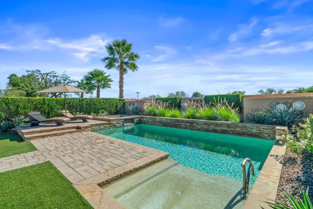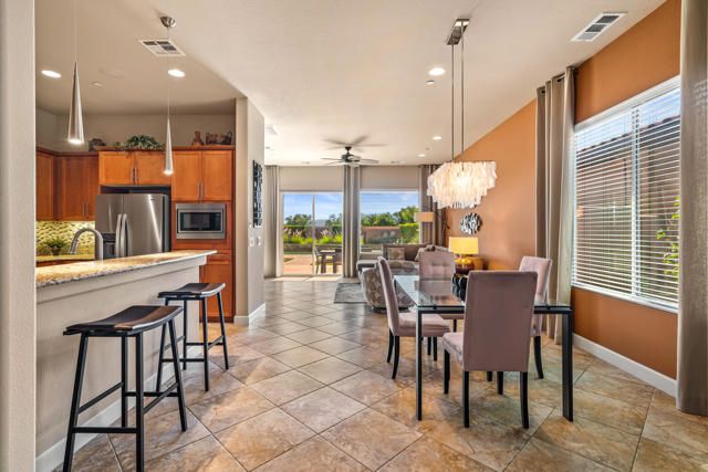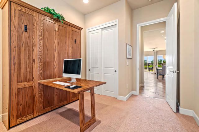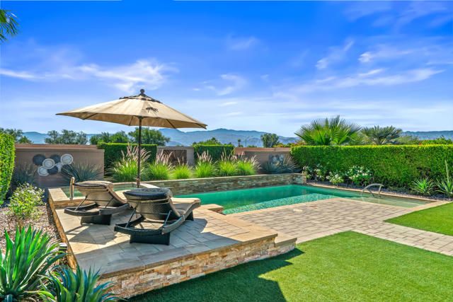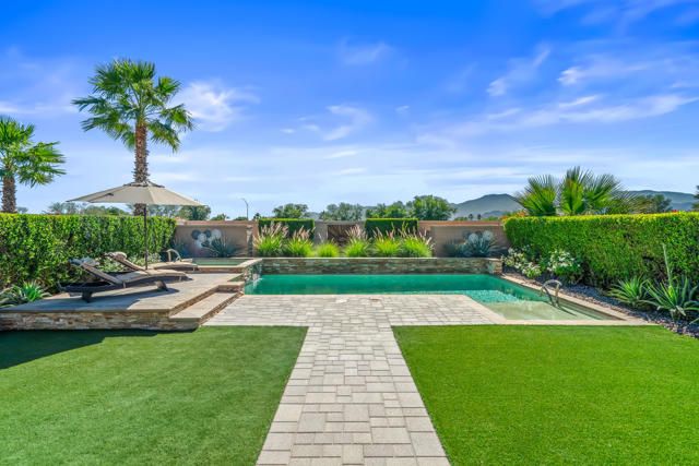EXCEPTIONAL MODERN ELEGANCE AND REFINED LUXURY in the resort style community of Sun City Shadow Hills! Homes of this caliber rarely come onto the market! Offered TURNKEY FURNISHED, this upscale residence showcases contemporary design, fine finishes and an open floor plan perfect for desert living and effortless entertaining. Enter from a beautifully landscaped walkway into a bright and welcoming dining area that flows gracefully into the chef's kitchen, designed with upgraded cabinetry, Corian countertops, breakfast bar, gas stove and built in microwave. The open living concept anchors the space offering abundant natural light, modern recessed lighting and a seamless connection to the outdoor patio, creating a true indoor/outdoor lifestyle! Conveniently located off the kitchen is the laundry room featuring a utility sink, ample cabinetry and direct access to the garage for everyday ease. The Primary Suite is a serene retreat, offering both comfort and sophistication. Wake up to gentle morning light and views of your sparkling pool, offering a gentle ease into your daily routine The spa inspired ensuite features dual vanities, a glass enclosed shower and a spacious walk in closet, designed for ultimate functionality. Every finish evokes a sense of calm elegance, from the neutral palette to the soft textures and refined details. The Guest Room/Office offers exceptional versatility workspace. Outfitted with a custom Murphy Bed that folds away to reveal a built in desk, easily transformed from a comfortable guest room to a productive home office optimizing dual purpose living! Step outside to your PRIVATE RESORT STYLE OASIS situated on an OVERSIZED PREMIUM LOT capturing breathtaking mountain views. Enjoy a fabulous heated saltwater pool and spa, surrounded by paver decking, a tanning ledge and multiple areas for lounging and entertaining. A large covered patio with a pergola provides shade and comfort for alfresco dining, while the professional landscaping with Ficus greenbelts ensues both beauty and privacy EVERY surface and detail from doors and fixtures to lighting and hardware reflects the quality craftmanship and a commitment to luxurious living! CELEBRATE LIFE in prestigious 55+ Sun City Shadow Hills, where residents enjoy two golf courses, clubhouses, fitness centers, pools, tennis, pickleball courts and a whole calendar of clubs and social events. TURNKEY, STYLISH AND IMPECCABLY MAINTAINTED... THIS IS IT!