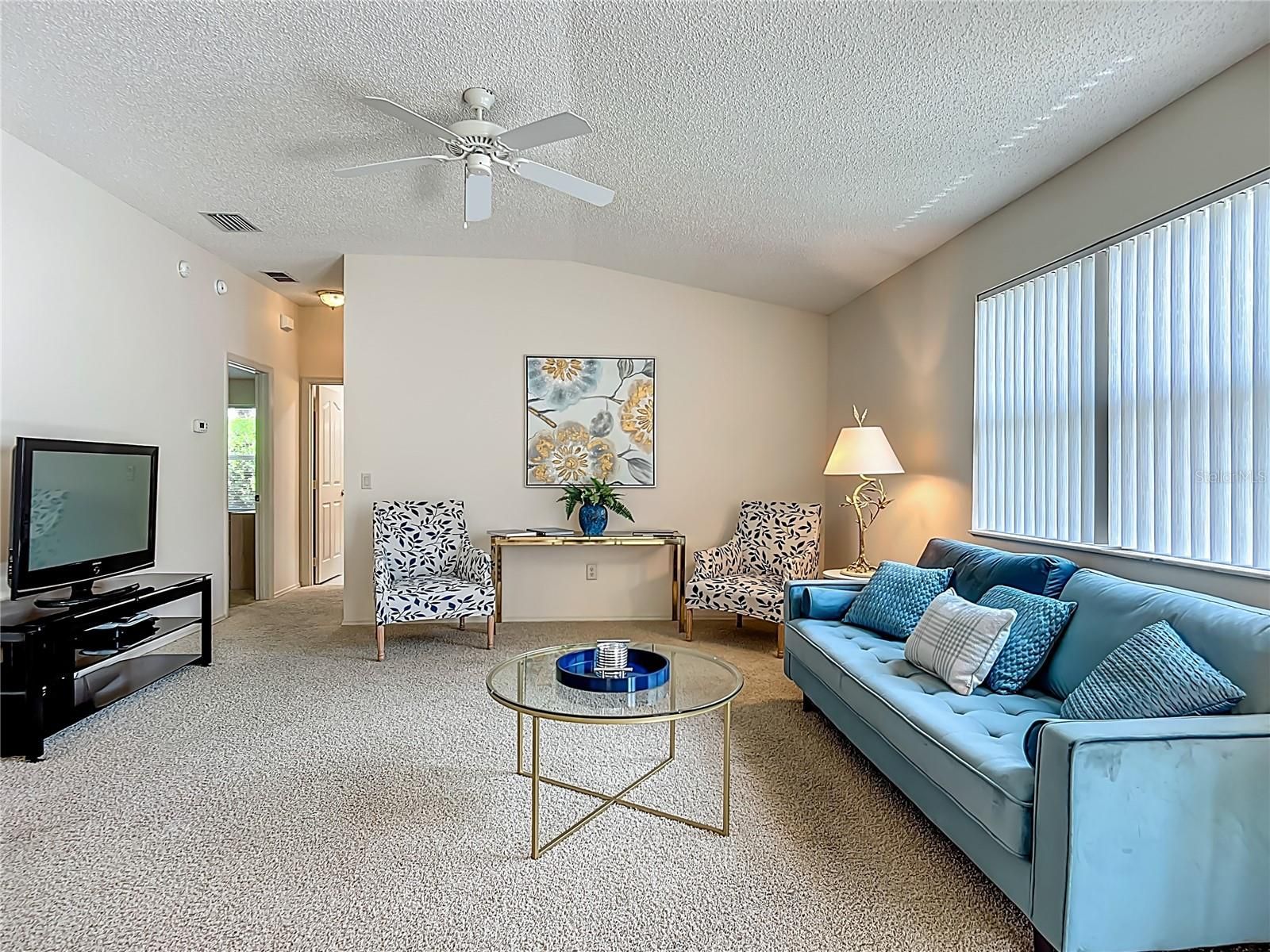 - Cathedral Ceiling(s), Ceiling Fan(s), High Ceilings, Living/Dining Room, Main Level Primary, Thermostat, Vaulted Ceiling(s)