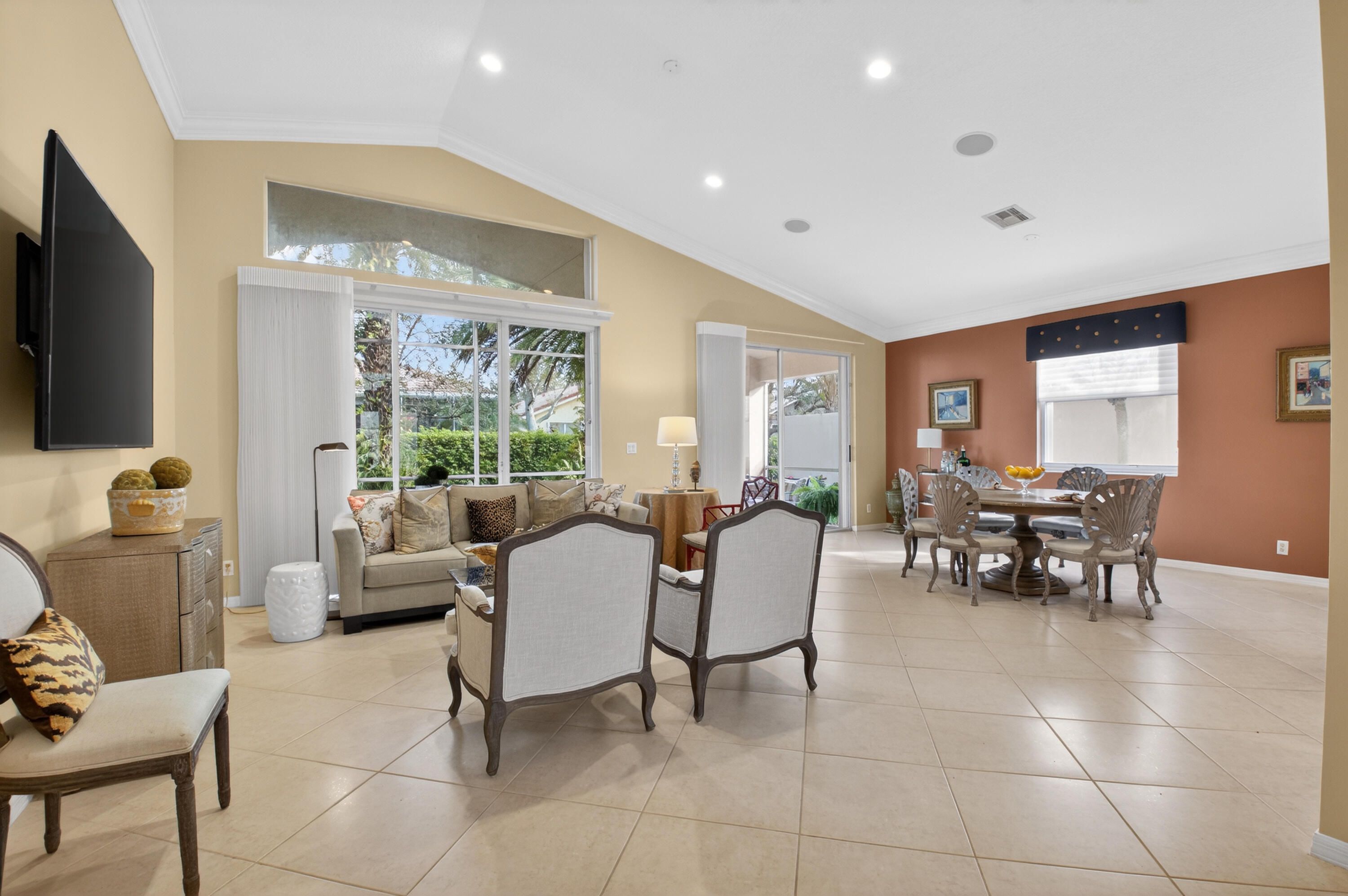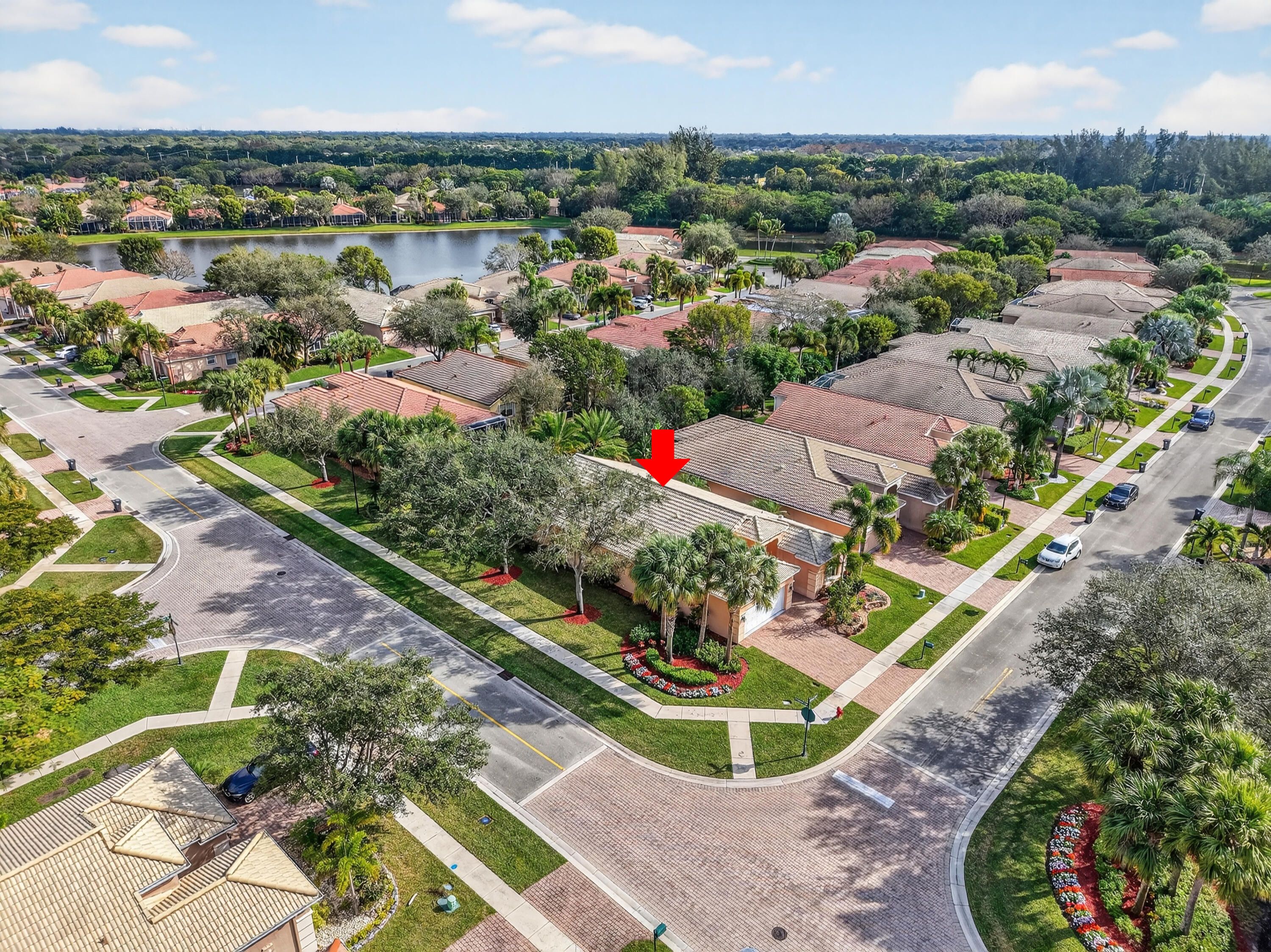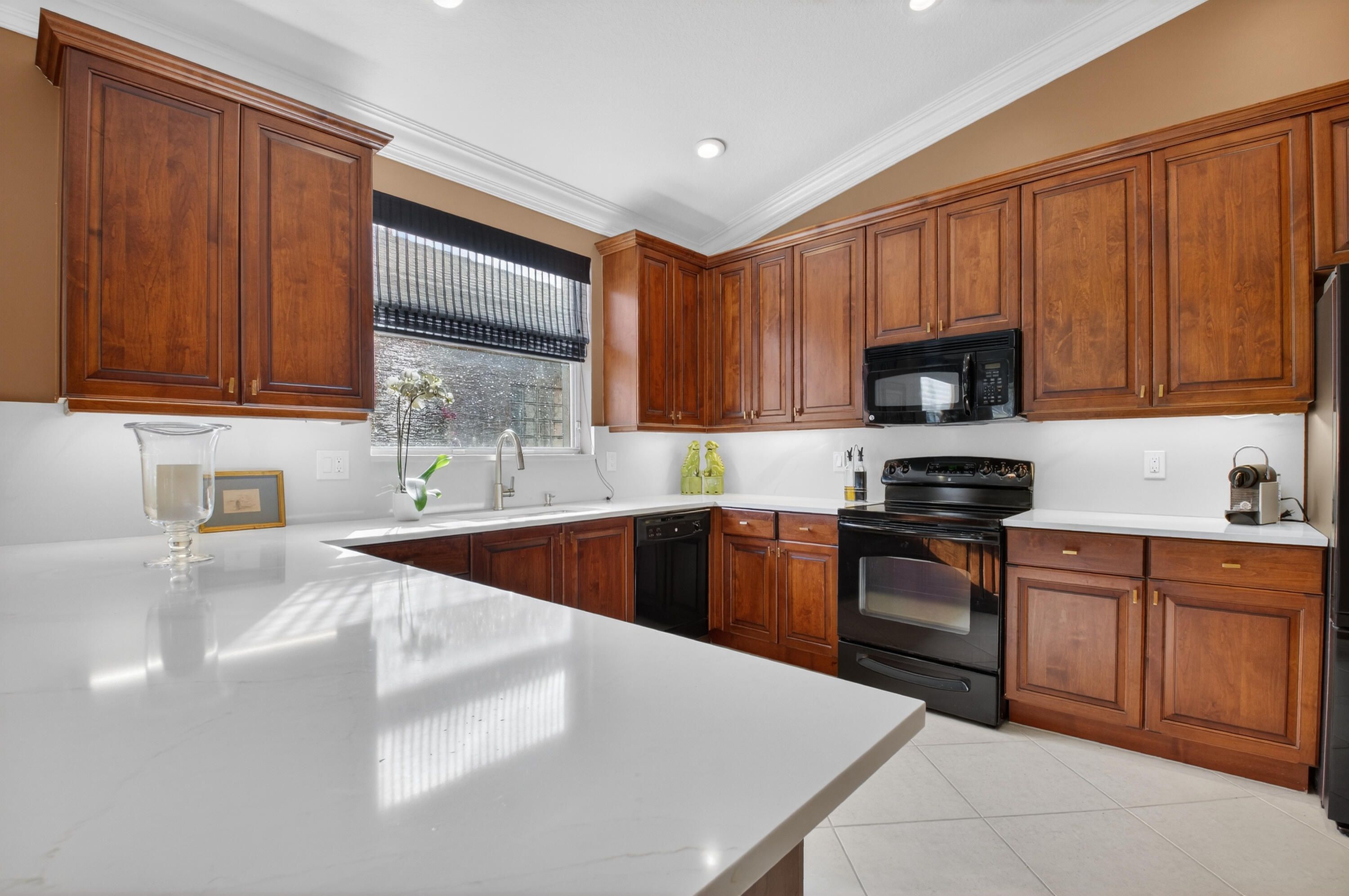 ALWAYS DESIRABLE PORTOFINO MODEL WITH BEAUTIFUL ETCHED GLASS IMPACT DOORS. NEUTRAL CERAMIC TILE SET ON A DIAGONAL, EXTENSIVE CROWN MOLDING, GORGEOUS BUILT-IN OFFICE UNIT, DECORATOR LIGHTING FIXTURES, COUNTER-HEIGHT QUARTZ COUNTERS & BACK SPLASH, CUSTOM PANTRY, WOOD CABINETS WITH LED UNDER CABINET LIGHTING, FARMER'S SINK, BESPOKE REFRIGERATOR (3 YRS NEW), LUMINETS, TILE TO CEILING IN SHOWERS WITH BEAUTFIUL LISTELLOS, PRIMARY BATH HAS RAIN HAND-HELD SHOWER FIXTURE, COMFORT HEIGHT TOILETS & PROFESSIONALLY LANDSCAPED. EVERYTHING YOUR HEART COULD DESIRE. COME JOIN THE VERY ACTIVE VILLAGGIO LIFESTYLE: 2 CLUBHOUSES (SOCIAL & ATHLETIC), INDOOR/OUTDOOR POOLS, CAFE, BEAUTY SALON, PICKLEBALL, TENNIS, BOCCE, SHOW SERIES, CLUBS, CARDS, EXERCISE CLASSES 6 DAYS A WEEK, & SO MUCH MORE!