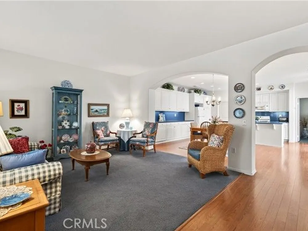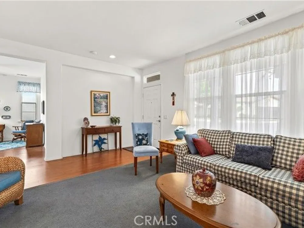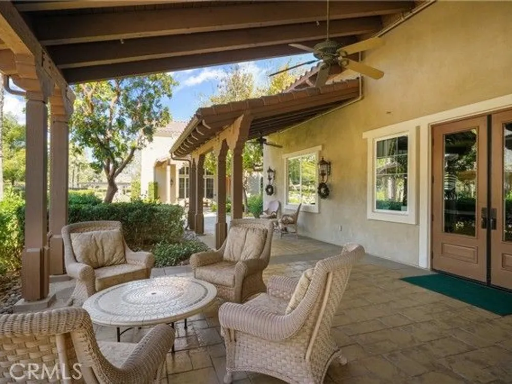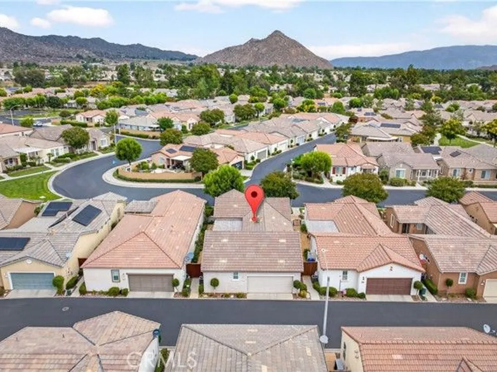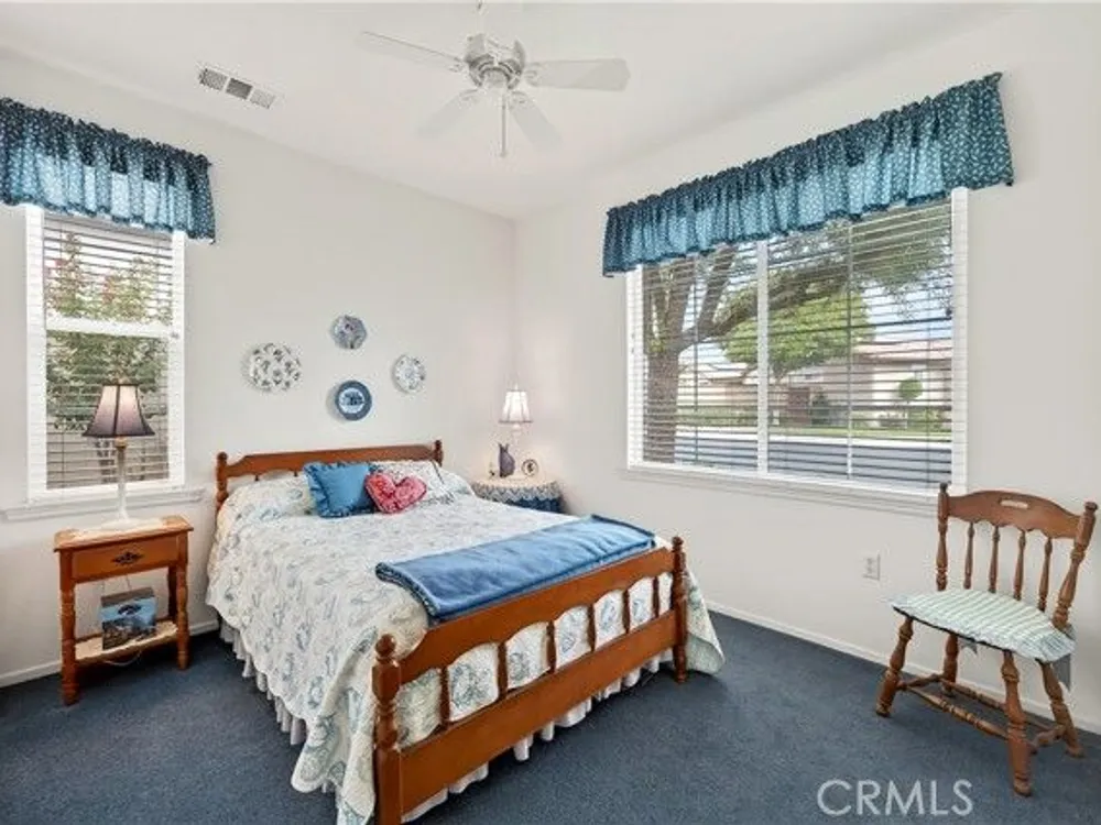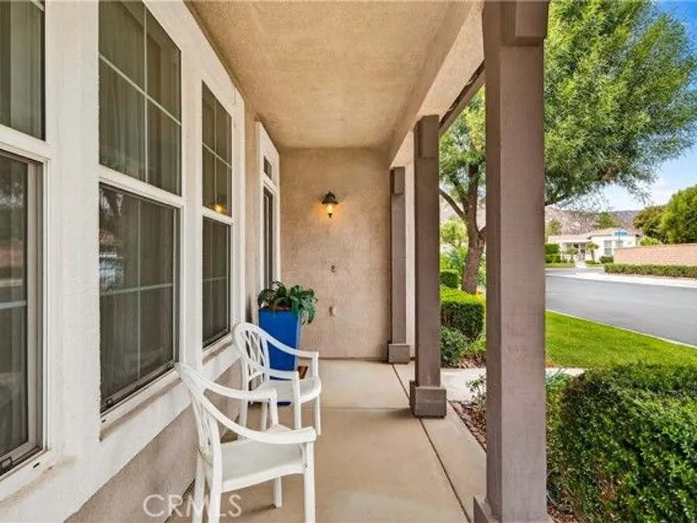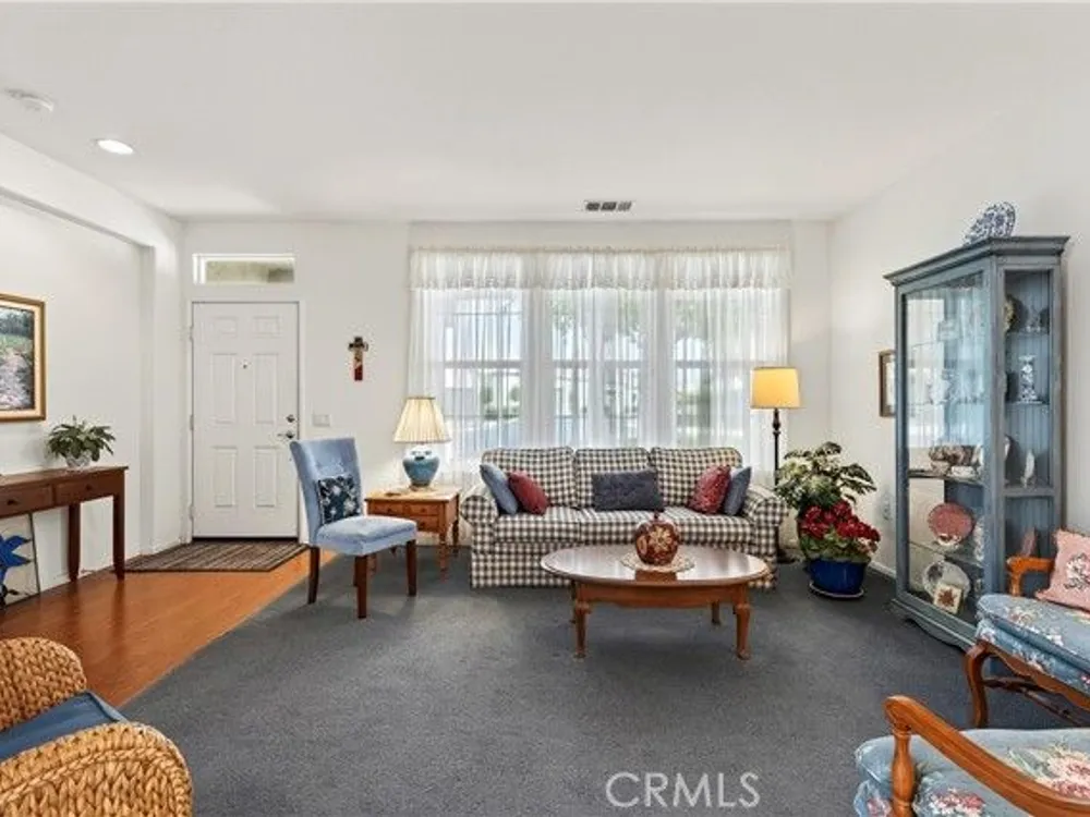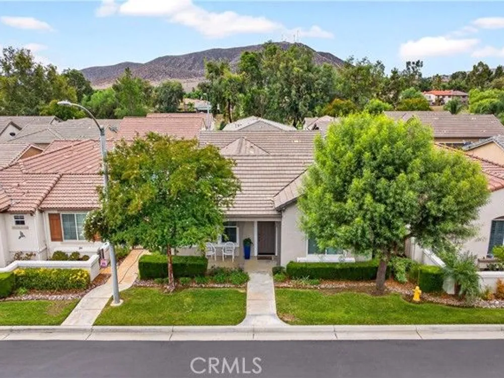 Charming home located in the 55+ fully gated, 24/7 Four Seasons community, surrounded by scenic hills and the Hemet Golf Course. Ideally situated within walking distance to the lodge and all its resort style amenities. This two bedroom, two bath home also features an office/den/craft room and boasts a spacious open floor plan with carpet and wood flooring throughout. The bright, white kitchen offers an island with bar seating, white appliances, and ample cabinet space. A wall of windows fills the living areas with natural light, while French doors open to a beautifully landscaped, covered patio, perfect for relaxing or entertaining. Additional highlights include a large masted bedroom with attached bathroom, an inside laundry room and a roomy 2-car garage. Enjoy a vibrant lifestyle with endless activities for the active senior, including tennis, pickleball, swimming pool, and spa. The community also features a beauty salon, fitness center, and a lodge offering a bistro, movie theater, computer room, craft room, billiards, ballroom, and so much more