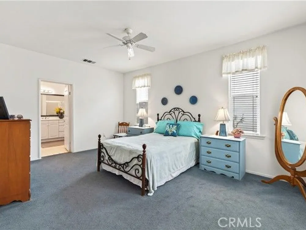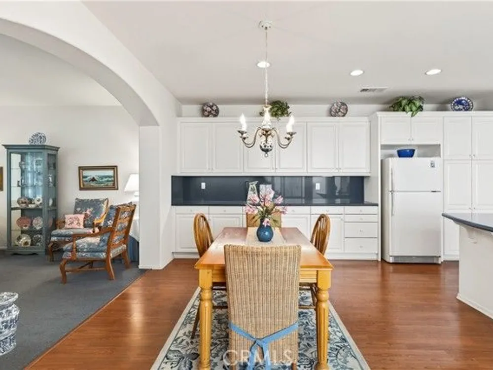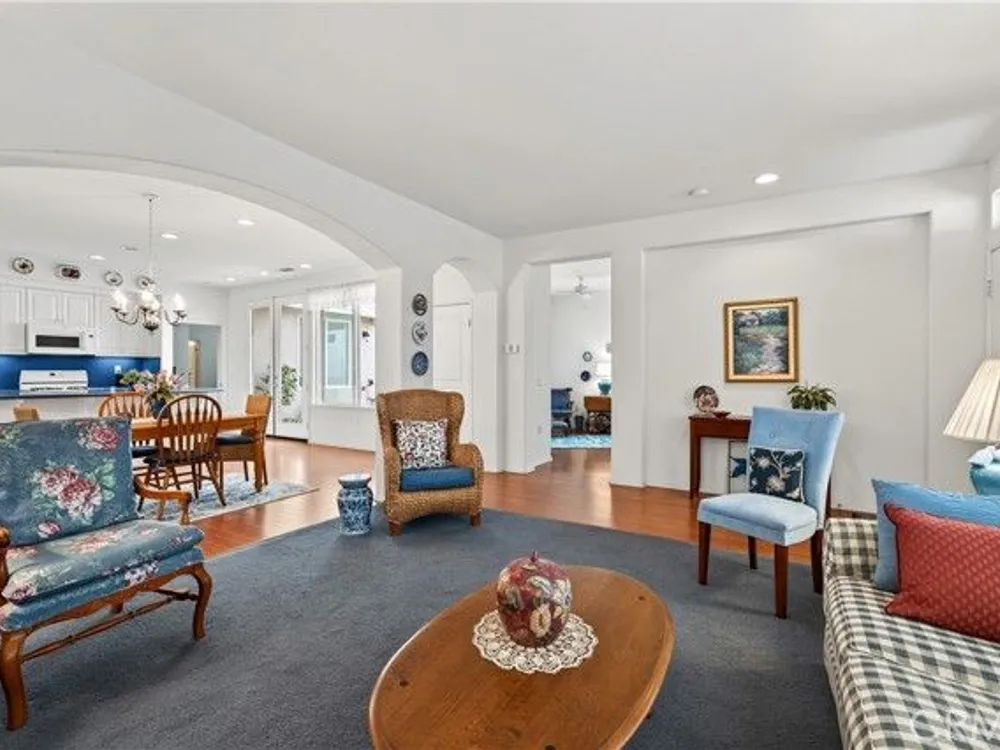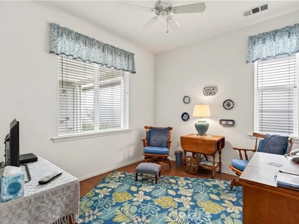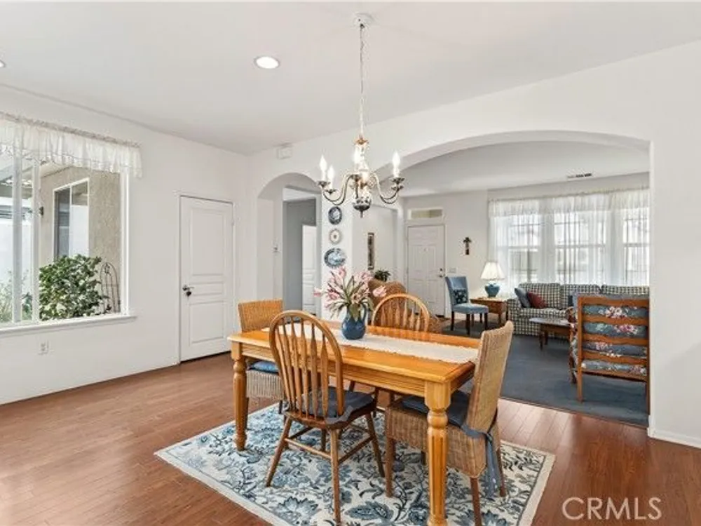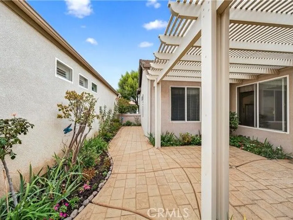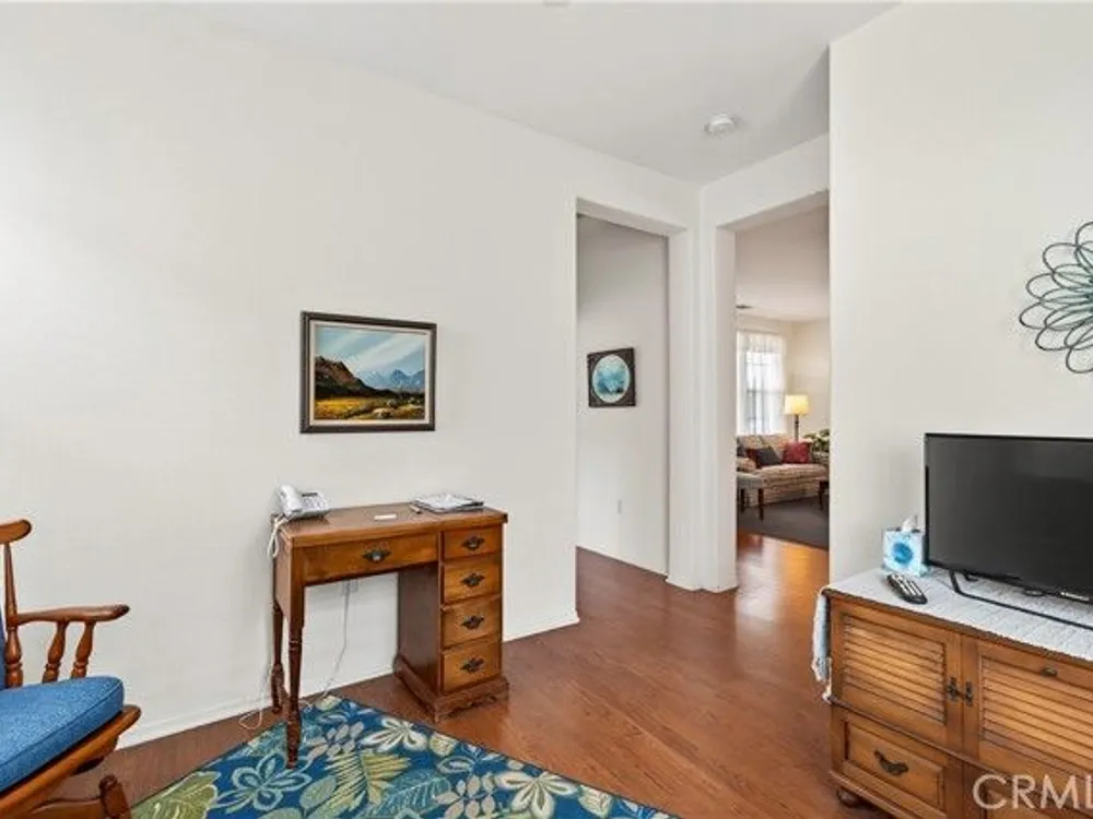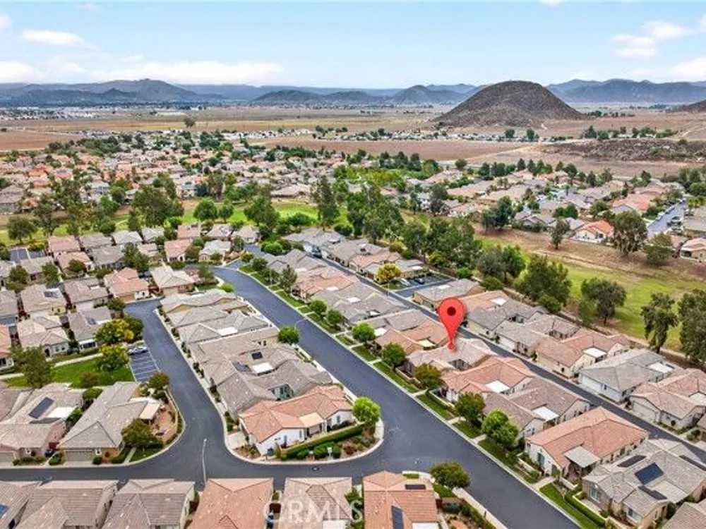 Charming home located in the 55+ fully gated, 24/7 Four Seasons community, surrounded by scenic hills and the Hemet Golf Course. Ideally situated within walking distance to the lodge and all its resort style amenities. This two bedroom, two bath home also features an office/den/craft room and boasts a spacious open floor plan with carpet and wood flooring throughout. The bright, white kitchen offers an island with bar seating, white appliances, and ample cabinet space. A wall of windows fills the living areas with natural light, while French doors open to a beautifully landscaped, covered patio, perfect for relaxing or entertaining. Additional highlights include a large masted bedroom with attached bathroom, an inside laundry room and a roomy 2-car garage. Enjoy a vibrant lifestyle with endless activities for the active senior, including tennis, pickleball, swimming pool, and spa. The community also features a beauty salon, fitness center, and a lodge offering a bistro, movie theater, computer room, craft room, billiards, ballroom, and so much more