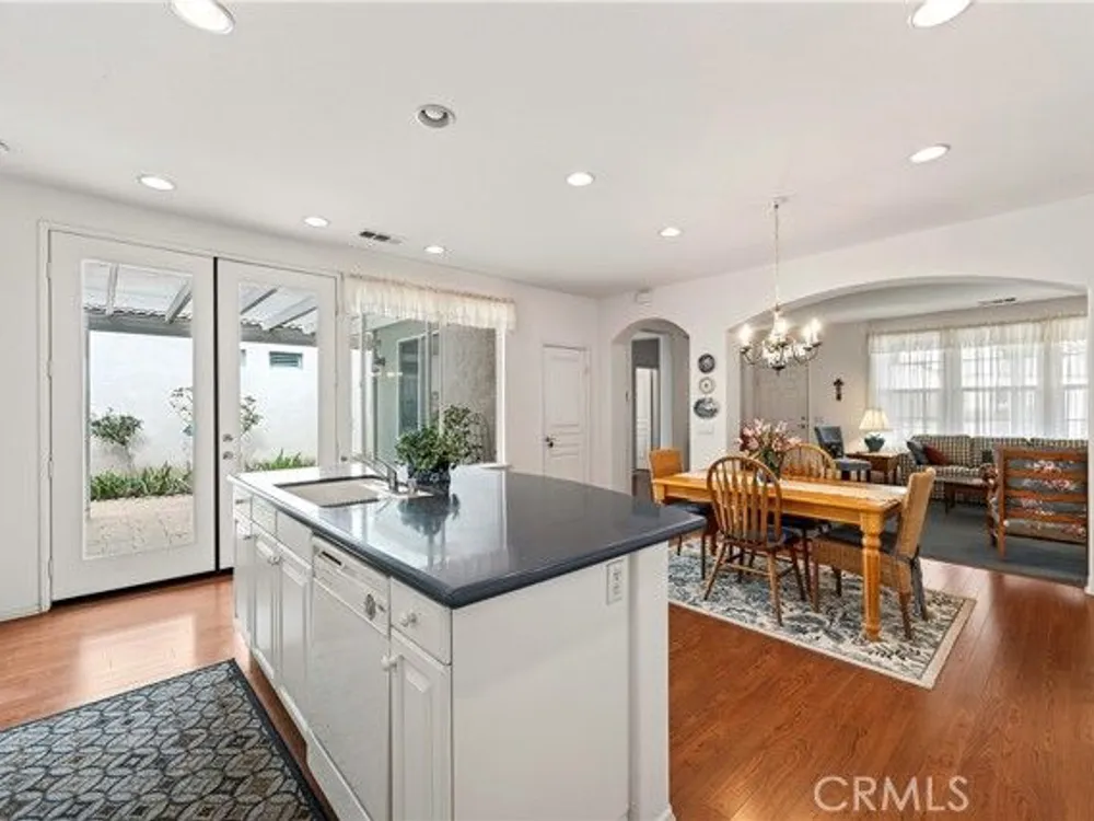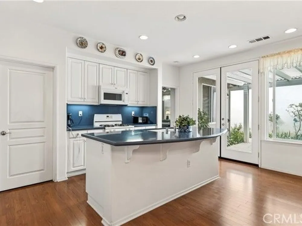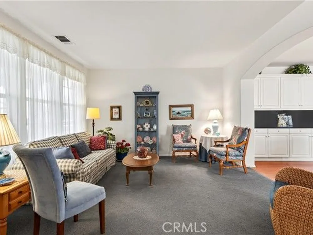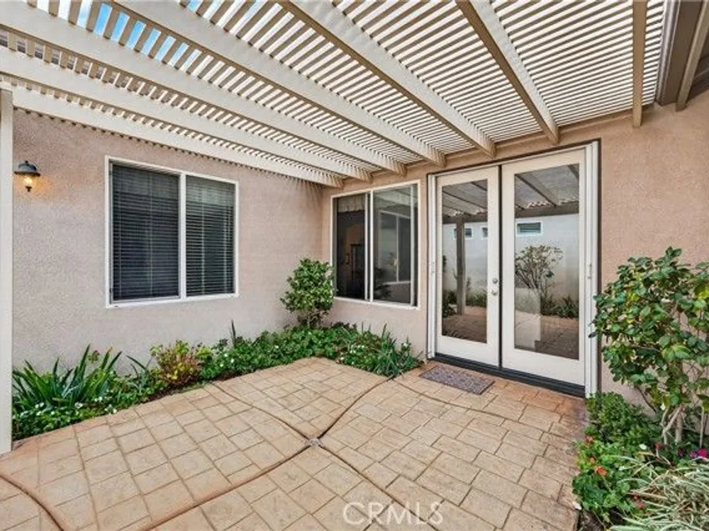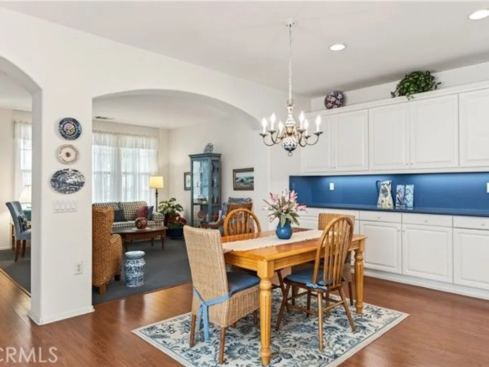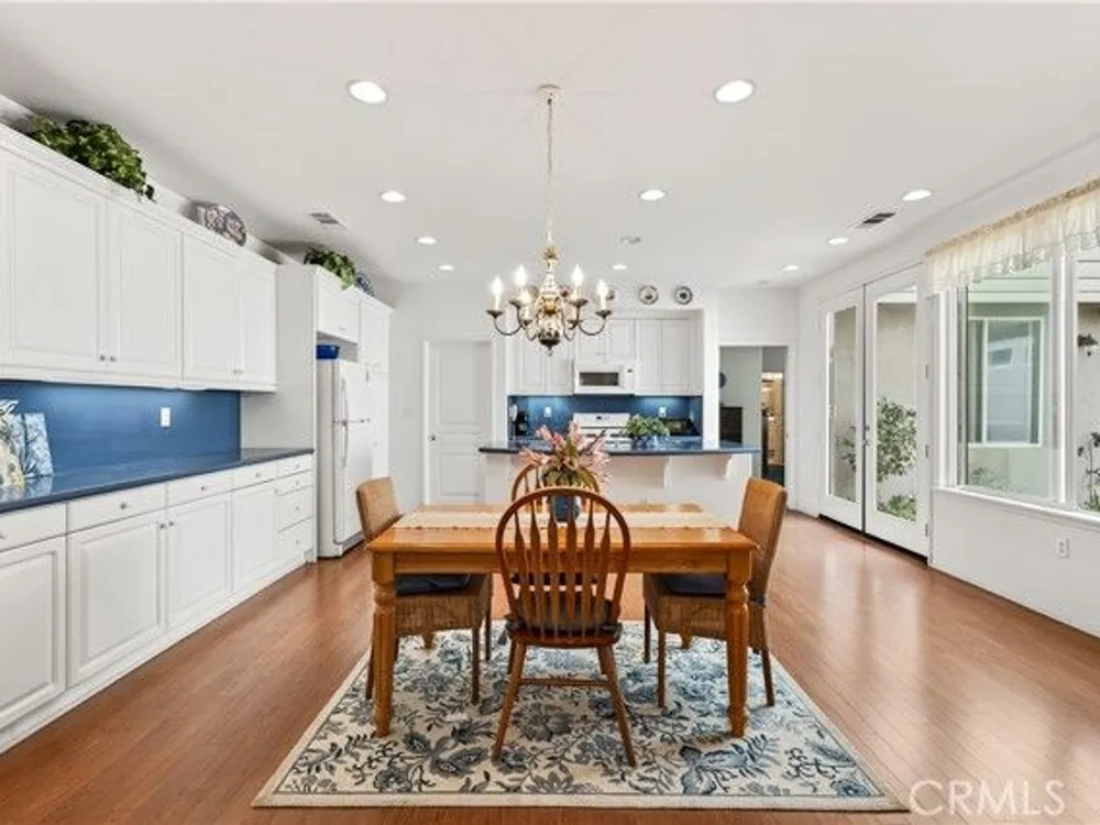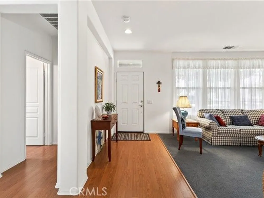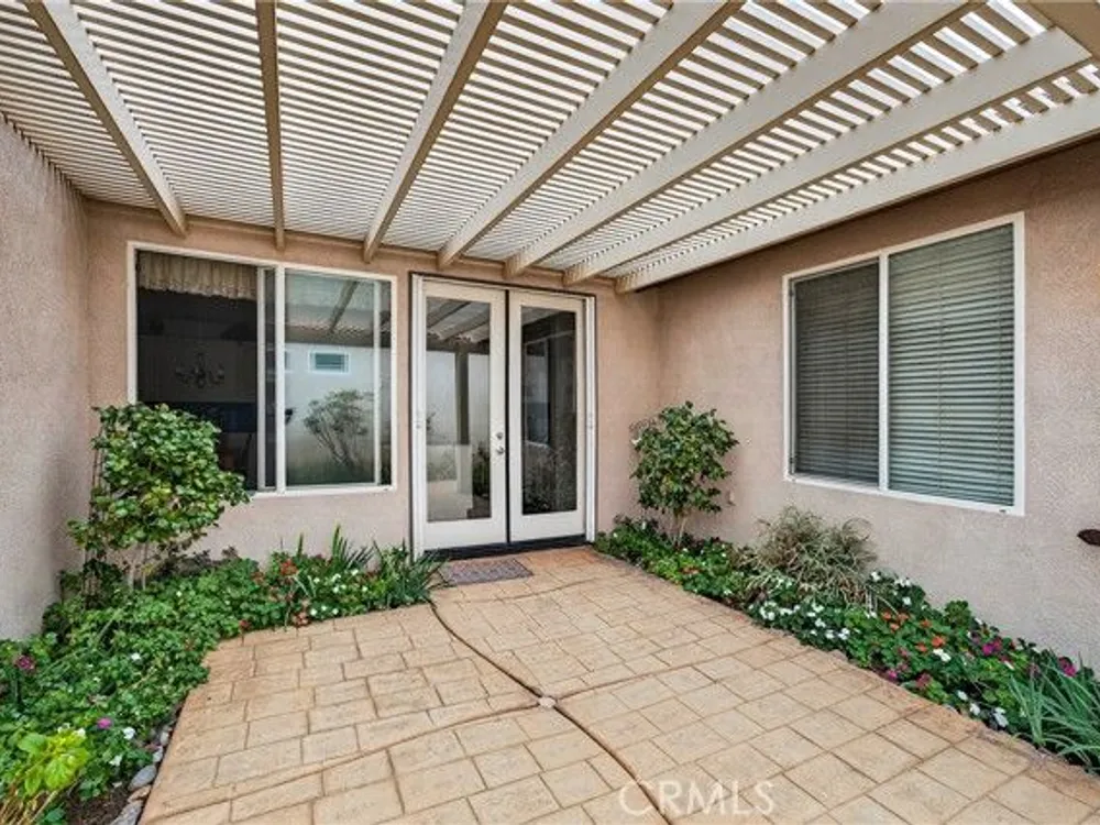 Charming home located in the 55+ fully gated, 24/7 Four Seasons community, surrounded by scenic hills and the Hemet Golf Course. Ideally situated within walking distance to the lodge and all its resort style amenities. This two bedroom, two bath home also features an office/den/craft room and boasts a spacious open floor plan with carpet and wood flooring throughout. The bright, white kitchen offers an island with bar seating, white appliances, and ample cabinet space. A wall of windows fills the living areas with natural light, while French doors open to a beautifully landscaped, covered patio, perfect for relaxing or entertaining. Additional highlights include a large masted bedroom with attached bathroom, an inside laundry room and a roomy 2-car garage. Enjoy a vibrant lifestyle with endless activities for the active senior, including tennis, pickleball, swimming pool, and spa. The community also features a beauty salon, fitness center, and a lodge offering a bistro, movie theater, computer room, craft room, billiards, ballroom, and so much more