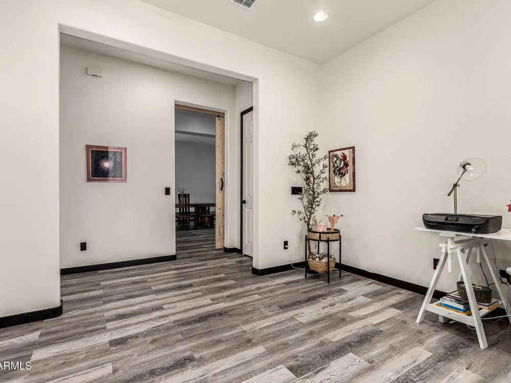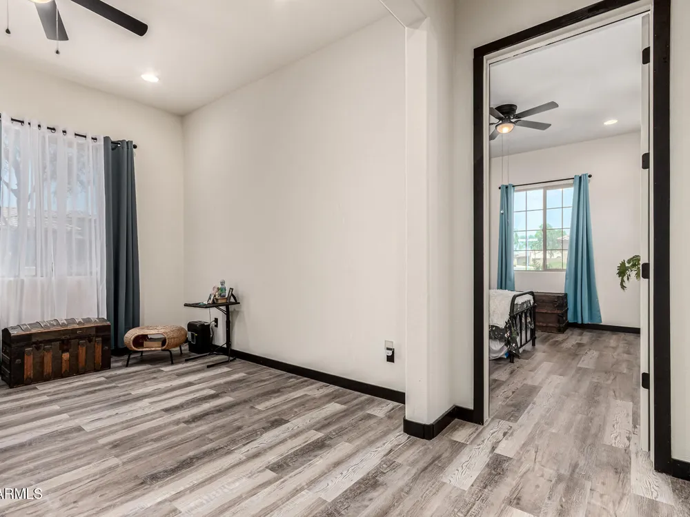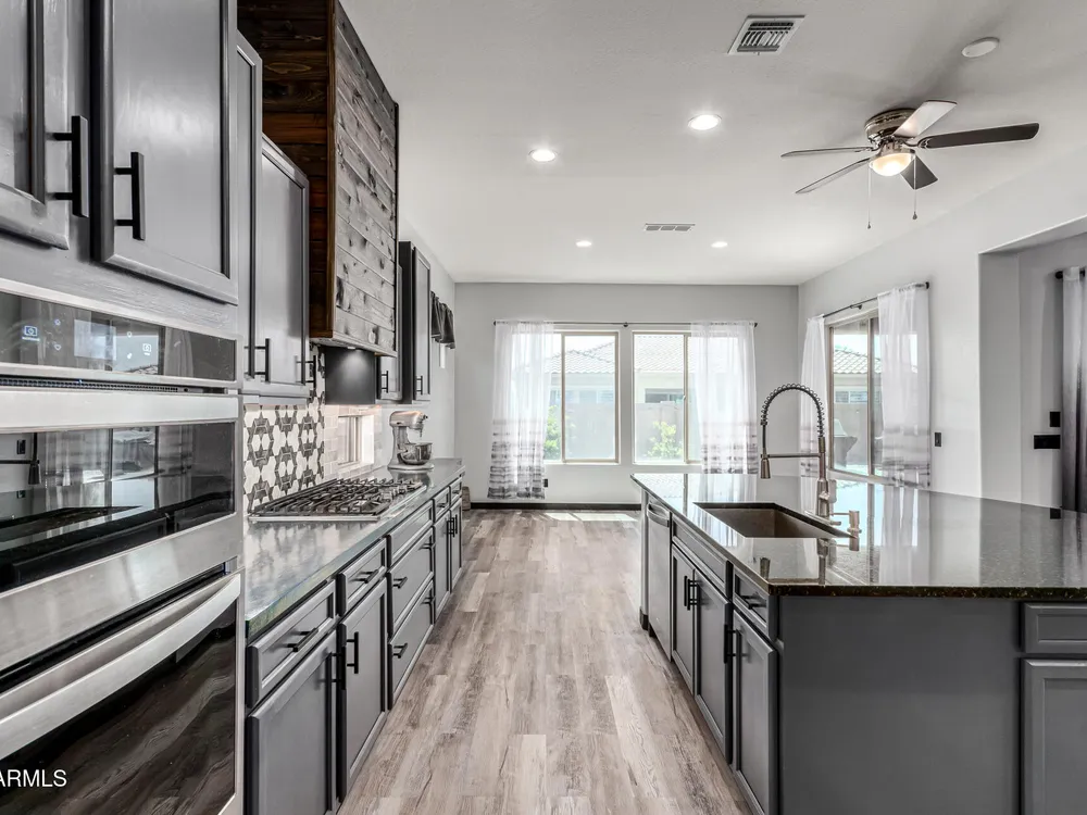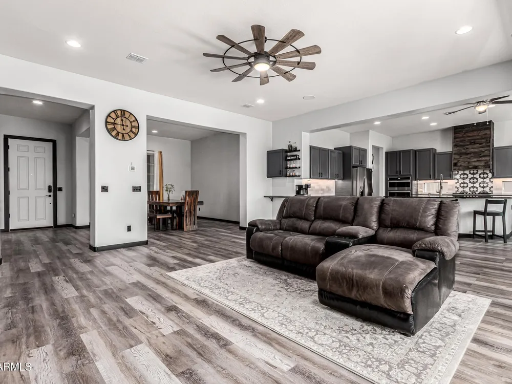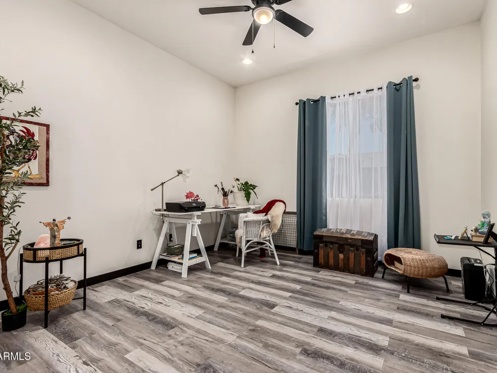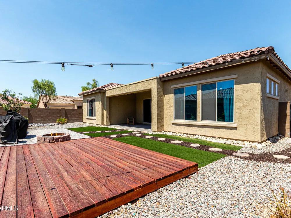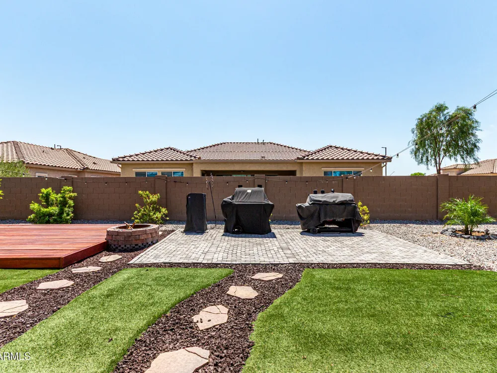 ARIZONA LIVING AT ITS BEST!This modern Tuscan ENDEAVOR combines elegance & resort style living w/ lush landscaping for outstanding curb appeal. Inside, the open layout flows w/ LVP flooring thru out the home. The Chef Lux kitchen features granite counters, SS appliances, gas cooktop, tile backsplash, walk in pantry & large island-ideal for gatherings. The primary suite is a true retreat featuring a barn door entry into Primary Bath with granite dbl vanity & tiled walk in shower w/ glass wall for a sleek, contemporary finish. Guest bedroom & flex space offers privacy & comfort for guests, hobbies or office. Backyard designed for entertaining & relaxing featuring spacious covered patio overlooking turf, deck, wood burning pit, lush vegetation creating a private desert OASIS!! Sun City Anthem at Merrill Ranch offers a 48,000 SF recreation center w/ craft rooms for quilting, pottery, glass works, jewelry & crafts, spacious ballroom w/ stage for dancing, theatrical productions, concerts & more. PLUS full gym, work out rooms, indoor lap pool & spa, walking track, cafe area, card rooms, poker tables, pool table, ping pong table, business center, class room for interesting seminars! Troon Poston Butte Golf Course is one of the nicest in the area. Sun City offers Pickleball, Tennis, Bocce Ball, Horseshoes, Shuffleboard, clubs for all activities.......LIVE WHERE THE SURROUNDINGS DELIGHT, INSPIRE & CHALLENGE YOU!
