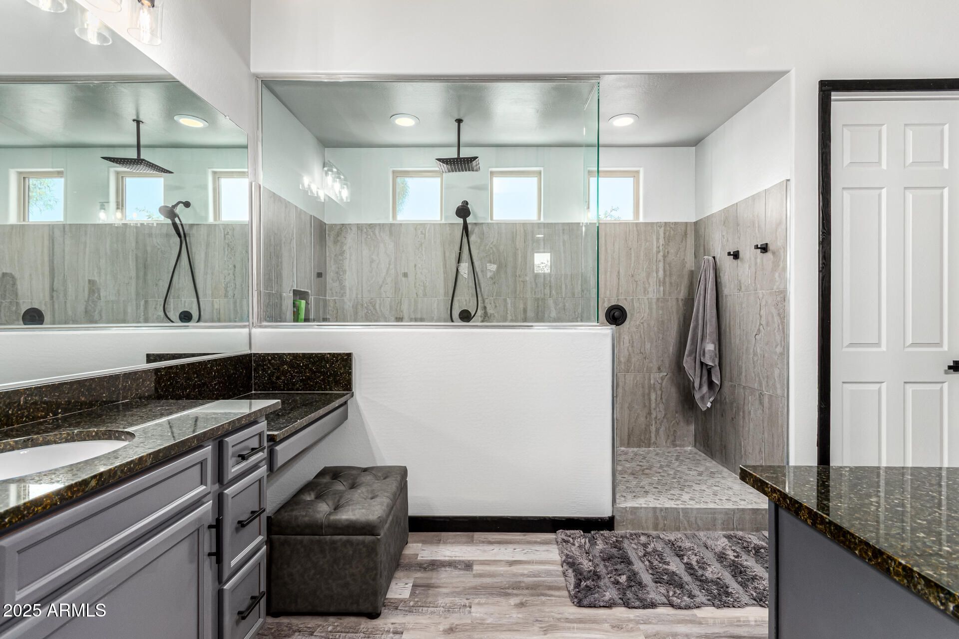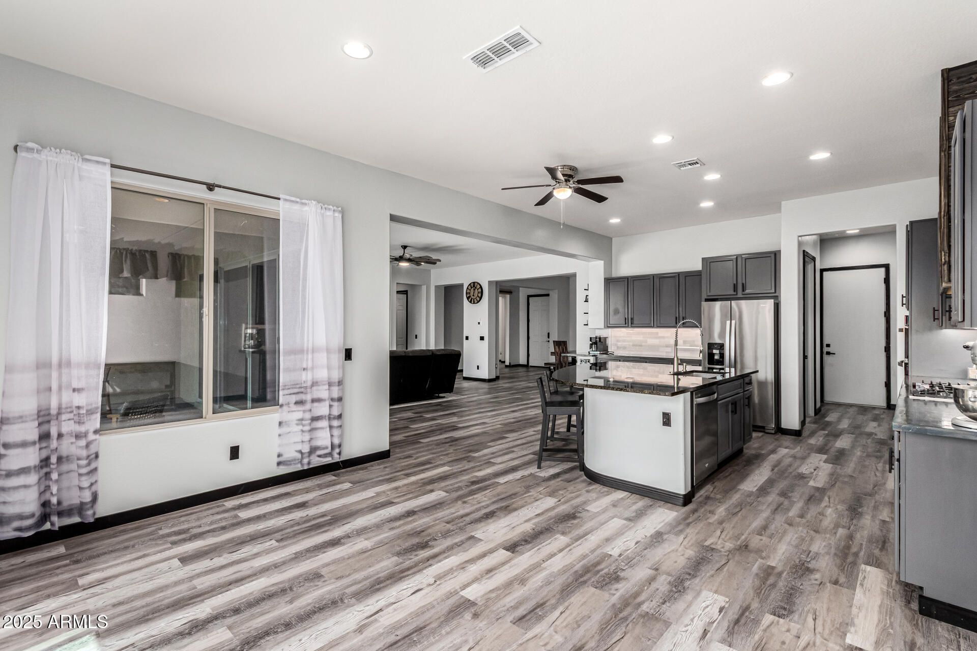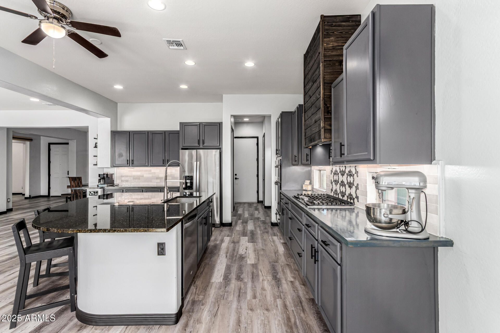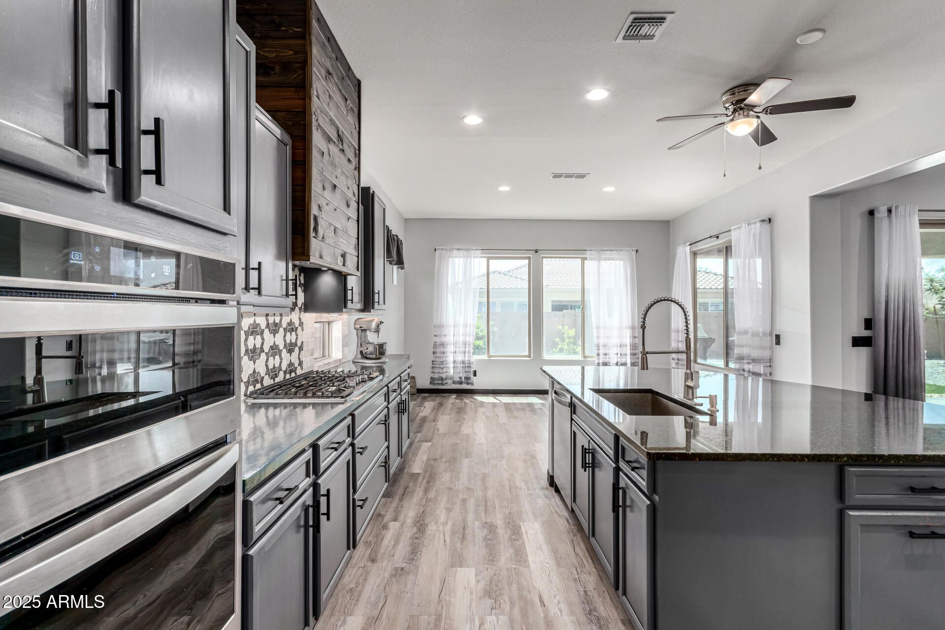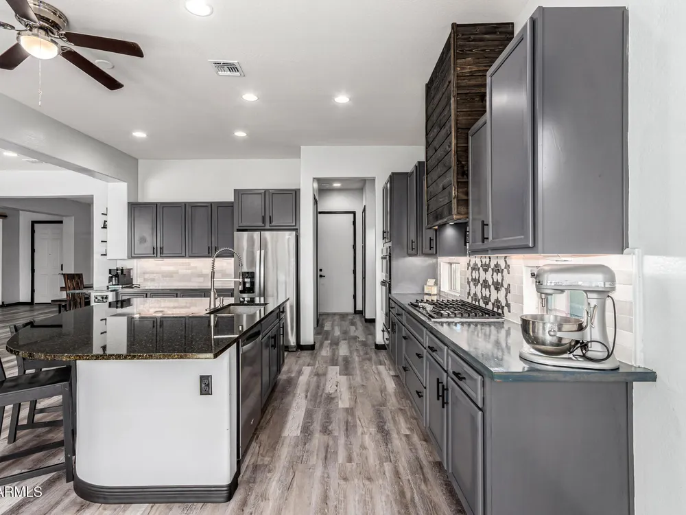 ARIZONA LIVING AT ITS BEST!This modern Tuscan ENDEAVOR combines elegance & resort style living w/ lush landscaping for outstanding curb appeal. Inside, the open layout flows w/ LVP flooring thru out the home. The Chef Lux kitchen features granite counters, SS appliances, gas cooktop, tile backsplash, walk in pantry & large island-ideal for gatherings. The primary suite is a true retreat featuring a barn door entry into Primary Bath with granite dbl vanity & tiled walk in shower w/ glass wall for a sleek, contemporary finish. Guest bedroom & flex space offers privacy & comfort for guests, hobbies or office. Backyard designed for entertaining & relaxing featuring spacious covered patio overlooking turf, deck, wood burning pit, lush vegetation creating a private desert OASIS!! Sun City Anthem at Merrill Ranch offers a 48,000 SF recreation center w/ craft rooms for quilting, pottery, glass works, jewelry & crafts, spacious ballroom w/ stage for dancing, theatrical productions, concerts & more. PLUS full gym, work out rooms, indoor lap pool & spa, walking track, cafe area, card rooms, poker tables, pool table, ping pong table, business center, class room for interesting seminars! Troon Poston Butte Golf Course is one of the nicest in the area. Sun City offers Pickleball, Tennis, Bocce Ball, Horseshoes, Shuffleboard, clubs for all activities.......LIVE WHERE THE SURROUNDINGS DELIGHT, INSPIRE & CHALLENGE YOU!