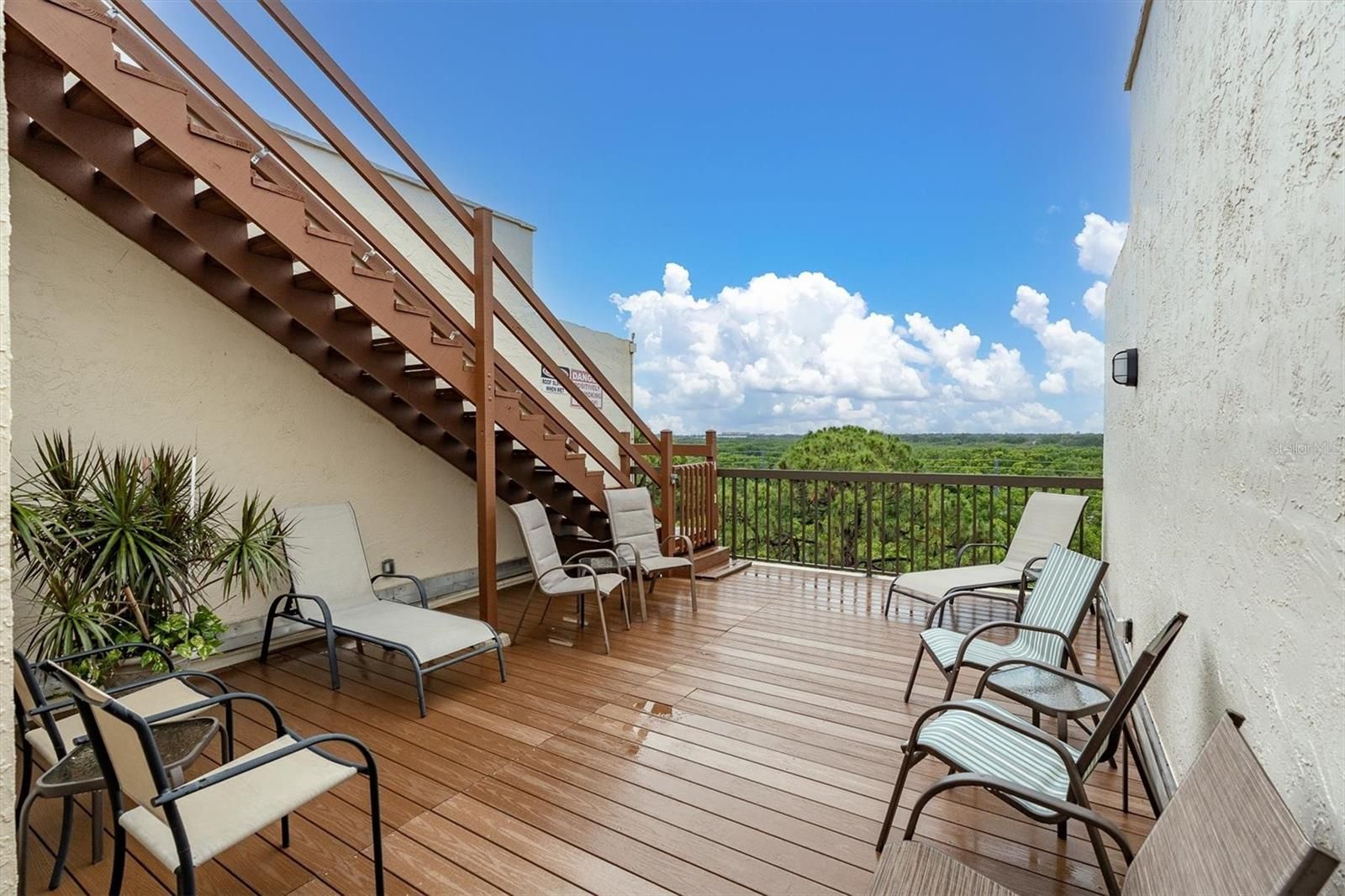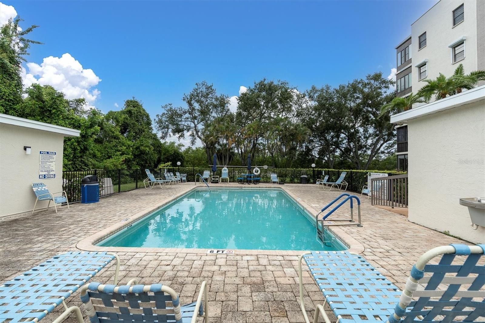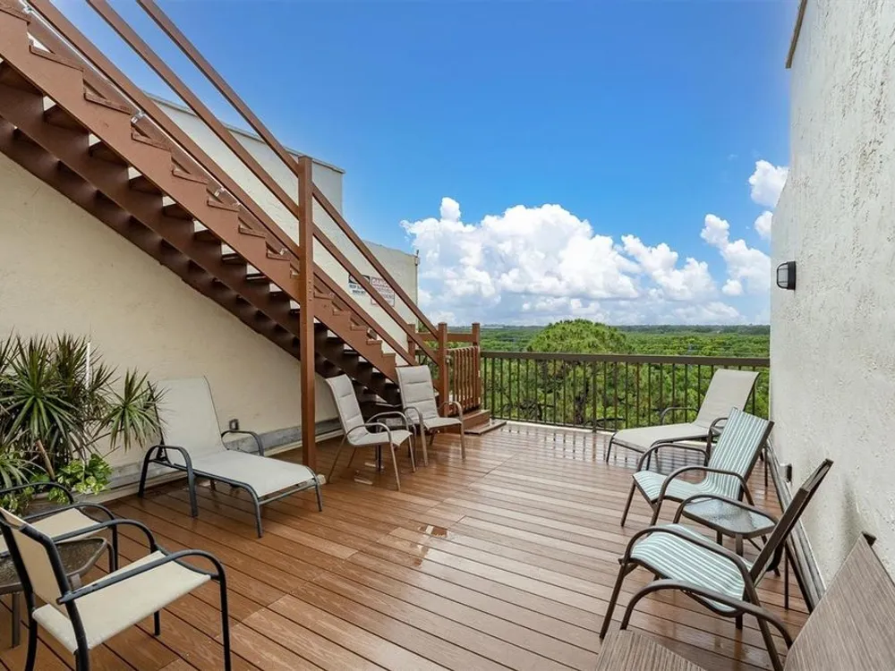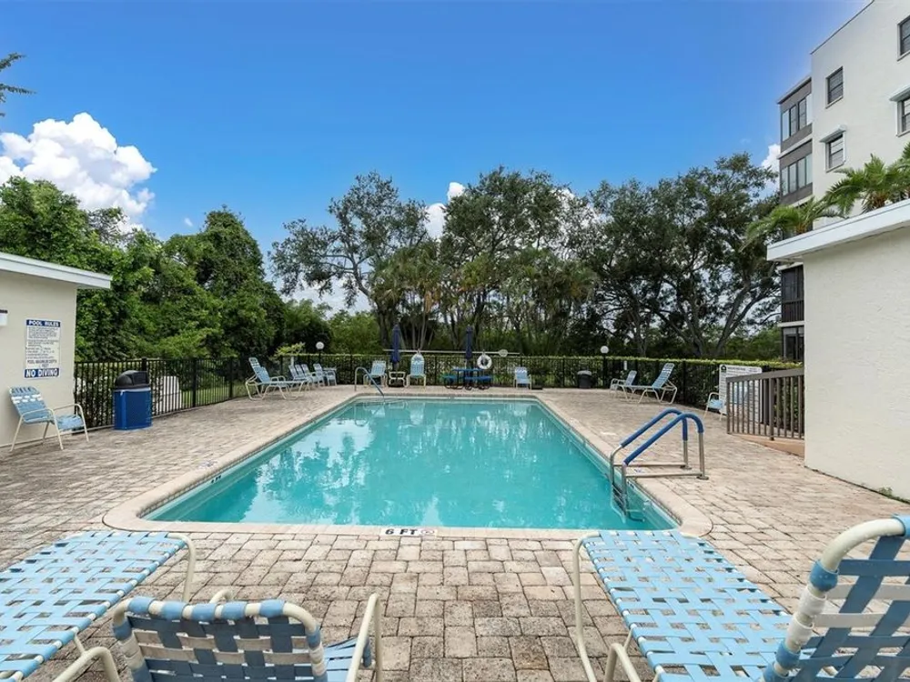 Top-Floor End Unit in Terrace Park of Five Towns – Spacious 2BR/2BA with Two All-Season Patios! Welcome to carefree Florida living in this spacious 2-bedroom, 2-bath condo in the highly sought-after 55+ community of Terrace Park of Five Towns. This top-floor end unit in the Radcliffe building offers 1,700 square feet of comfortable living space, thoughtfully designed for both relaxation and entertaining. Enjoy added privacy with no neighbors above and the benefit of extra natural light from this end-unit location. Step inside to a bright entry foyer with a coat closet and neutral tile flooring. The generously sized living room, formal dining area, and flexible den/family room flow effortlessly together, creating a versatile layout to fit your lifestyle. Two enclosed all-season patios with sliding windows extend the living space—one off the living area and den with views of the natural surroundings, and the other exclusive to the primary suite. The primary bedroom includes a walk-in closet, additional storage closet, and an en-suite bath with both a walk-in shower, separate soaking tub, and linen closet. A guest bedroom and second full bath are ideal for hosting friends and family. The kitchen awaits your own personal touch and features a gas stove, pantry, and pass-through to the den—perfect for entertaining or casual meals. A large laundry room off of the kitchen has built-in cabinetry providing additional storage, and the washer and dryer can be included. The unit also comes with a covered carport space right next to the secure lobby entrance. Residents of the Radcliffe building enjoy access to a private fifth-floor sun deck, and the building’s pool is conveniently right next to building. The broader community offers a second pool, a clubhouse, shuffleboard, tennis courts, and walking paths—all in a beautifully maintained, active setting. Located just minutes from the Gulf beaches and the shops and restaurants along Park Street, this condo offers the best of both peaceful living and easy access to everyday conveniences. Don’t miss the opportunity to bring your personal touch and make this top-floor retreat your own!