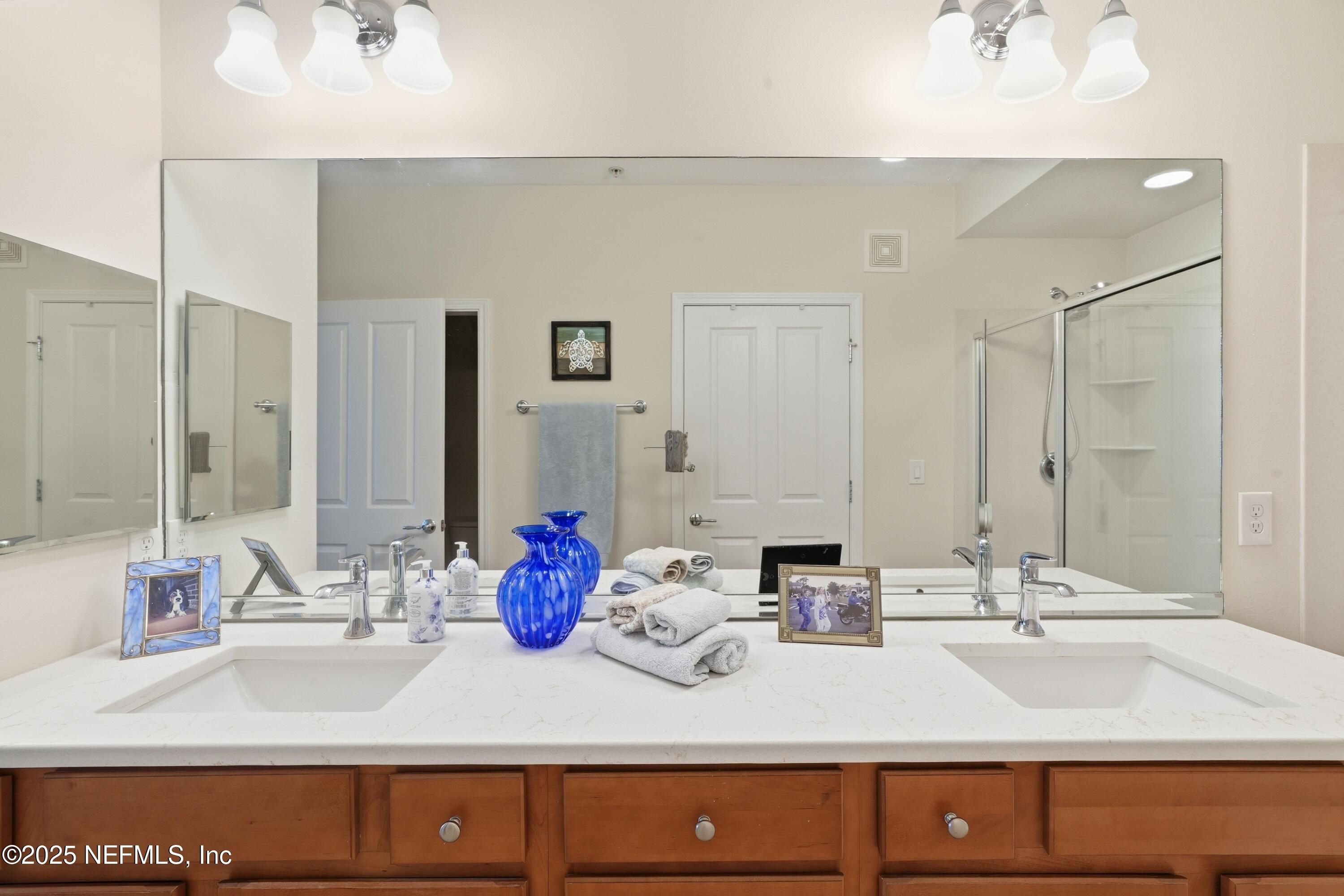 Gorgeous Mediterranean-style 2BR, 2BA + den ground floor carriage home in Del Webb Ponte Vedra, a premier 55+ community within award-winning Nocatee! Concrete block construction, barrel tile roof, attached garage, storm shutters, and screened lanai overlooking park and gardens. Immaculate and move-in ready with new luxury vinyl plank floors, new ceiling fans, fresh paint, granite kitchen counters, quartz bath counters, and stainless appliances. Includes reverse osmosis water filter, water softener, and bond portion of CDD paid off (saves $1,100+/yr). Enjoy The Anastasia Club's resort-style amenities—pools, fitness, pickleball, and clubs—plus full access to all of Nocatee's parks, pools, and events. Live the active, low-maintenance Florida lifestyle you've dreamed of!