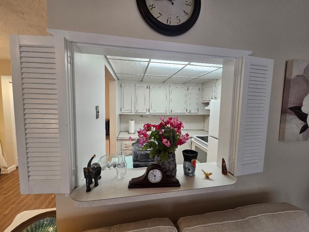 Beautiful one bed rm 1.5 bath unit on second floor and building has elevator. New laminate wood flooring, freshly painted, bedroom AC unit is new, newer toilets and vanities, organizer closets, large screened patio over looking garden area,sold fully furnished with all furniture.