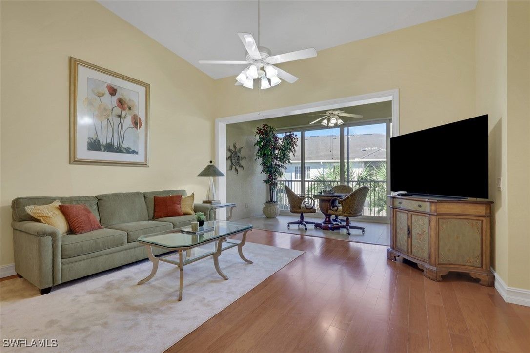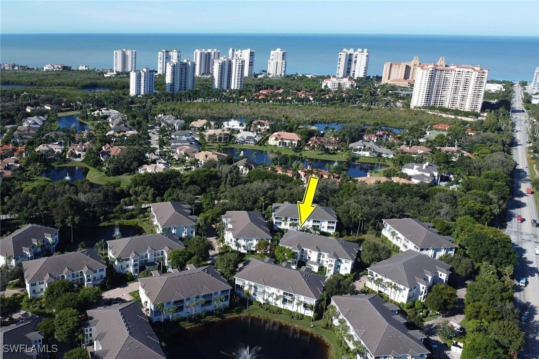 Top-floor living in Breakwater at Pelican Bay where volume ceilings, privacy and light all come together. This spacious 3rd-floor residence lives like a single-family home with an open great-room plan and peaceful treetop /water views from the fully enclosed lanai. Wide sliding doors allow you to open the space and flow right from the living room onto the outdoor area, effectively creating one large indoor/outdoor room for relaxing or entertaining. The bright white kitchen features rich granite counters, stainless appliances, abundant cabinetry and a long breakfast bar that keeps you connected to the dining and living areas. A built-in wine rack / serving area adds extra storage and a convenient spot for coffee, bar setup or buffet service. A separate den with custom floor-to-ceiling built-ins is the perfect home office, library or media room, easily converted to a sleeping area when extra company shows up as the couch can be converted to double bed. Additionally, could be easily converted to a full 3 bedroom by just adding an extra wall, as it has been done in many similar units in Breakwater. Wood and tile flooring in the main living spaces, neutral finishes and well-maintained interiors make this home easy to enjoy from day one or personalize to your taste. Breakwater is one of Pelican Bay’s newer low-density enclaves, tucked in a lush setting yet just minutes to Mercato, Waterside Shops and Artis–Naples. Per the association, windows and sliding doors are in the process of being upgraded to impact-resistant for added peace of mind (buyer to verify details and timeline). Ownership includes access to all Pelican Bay amenities: private beach access via tram, beachfront dining, fitness, tennis, walking paths and a full calendar of social activities. Available furnished or unfurnished and ready for you to enjoy the season in paradise.
