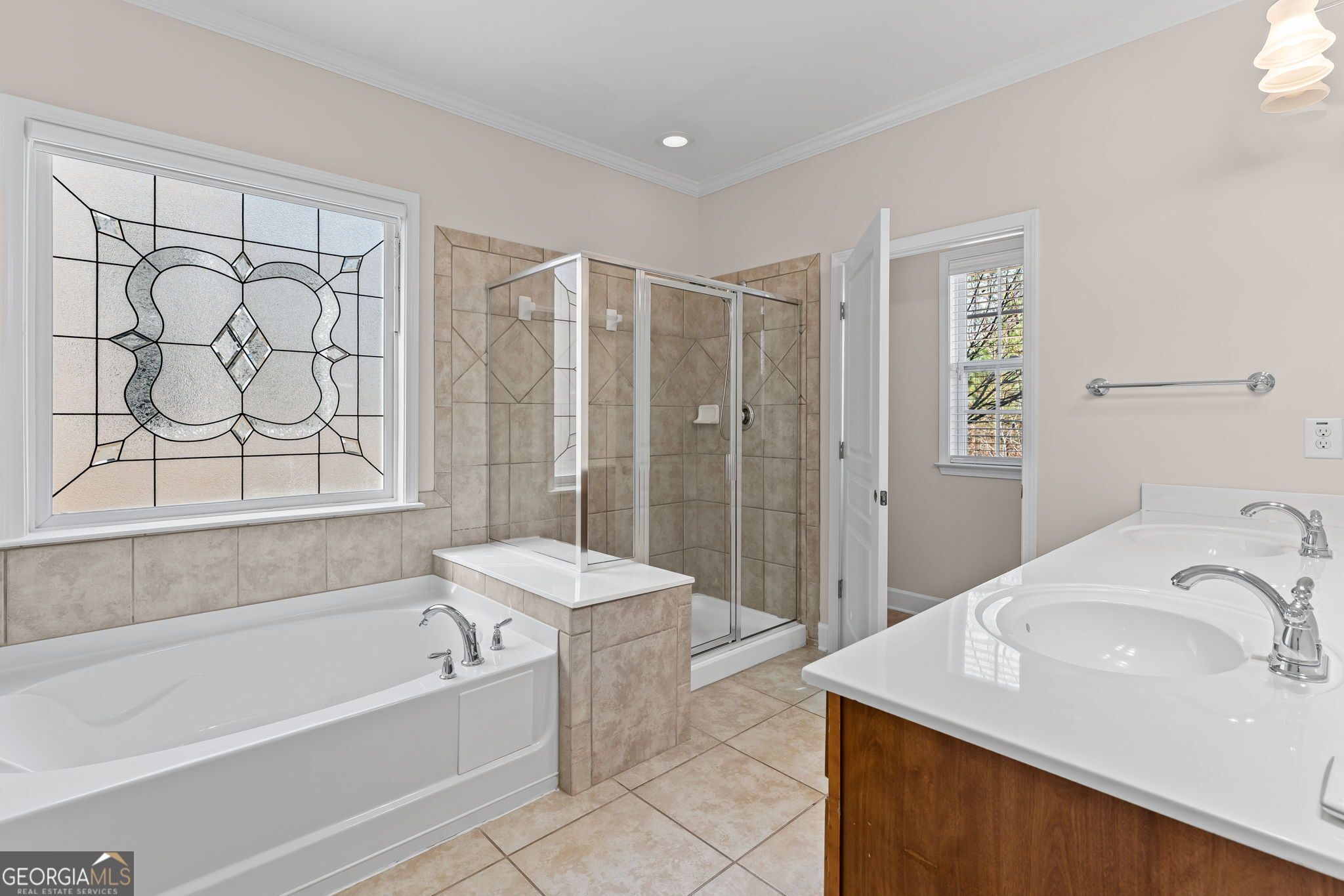 - Double Vanity, High Ceilings, Main Level Primary, Separate Shower, Soaking Tub, Split Bedrooms, Tile Bath, Tray Ceiling(s), Walk-In Closet(s), Dual Pane Window(s), Bonus Room, Exercise Room, Family Room, Entrance Foyer, Game Room, Laundry Facility, Library, Loft, Media Room, Home Office, Sunroom