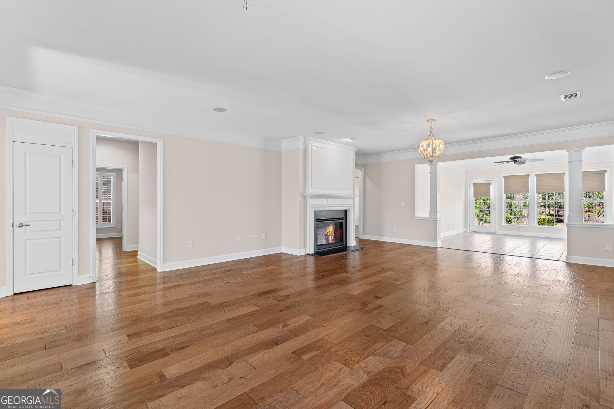 Beautifully maintained single-family home located in Sun City Peachtree, a premier 55+ active adult community. This spacious 3-bedroom, 3-full bath home offers approximately 2,912 sq. ft. of thoughtfully designed living space with a desirable golf course setting. Step inside to find hardwood floors and an open, inviting layout. The kitchen is well appointed with solid surface countertops, stainless steel appliances, prep island, and sunny eat-in area, perfect for casual dining or entertaining. The family room features a gas-starter fireplace, surround sound, and flows seamlessly into a tiled sunroom overlooking a private, partially wooded golf course view, creating the perfect space to relax and unwind. The main-level owner's suite offers trey ceiling, spacious en suite bath with soaker tub, large shower, double cultured marble vanities, and a generous walk-in closet. A private officelex space and fully functional laundry room provide everyday convenience. An additional bedroom and full bath on the main level are ideal for guests. Upstairs, enjoy a versatile loft and large familyonus room that can serve as a game room, media room, workout space, or hobby area. The upper level also includes a private guest suite with full bath and walk-in closet, offering comfort and privacy for visitors. Additional highlights include a 4 foot extended garage, beautiful curb appeal, and a private backyard with serene golf course views. Enjoy resort-style living with all the amenities Sun City Peachtree has to offer including clubhouse, golf, tennis, fitness, swimming, and numerous social activities. Move-in ready and perfect for enjoying the active adult lifestyle! New roof, new plumbing upgraded.