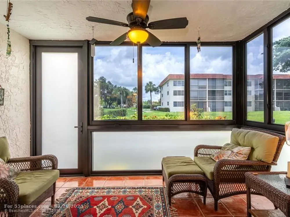 Phase III MAGNIFICENT TRANQUIL WATER, GOLF AND LANDSCAPE VIEWS. CLUBHOUSE ACROSS THE STREET; 2BR/2BA BRIGHT CORNER UNIT; WASHER/DRYER INSIDE! UPDATED OPEN KITCHEN & Bathrooms (2 like new Showers). IMPACT GLASS ENCLOSED PATIO! Conveniently Close to entrance. Beautiful Mexican style flooring throughout. 2nd bedroom currently used as music studio; Recreation Lease PAID IN FULL! FREE golf (except cart fees) on two 18 hole courses (PGA & Par3); Amenities include Restaurant, Billiard Room, Bbq/Picnic Area, Clubhouse, Courtesy Bus, Exercise Room, Heated Pool, Library, Putting Green, Sauna, Shuffleboard, Tennis, Pickle Ball, Vehicle Wash Area, Electric Car Charging Station. Close to shopping, dining & highways. 15 min. to the beach. Association says 55+ age required; LOCATION! LOCATION! LOCATION!