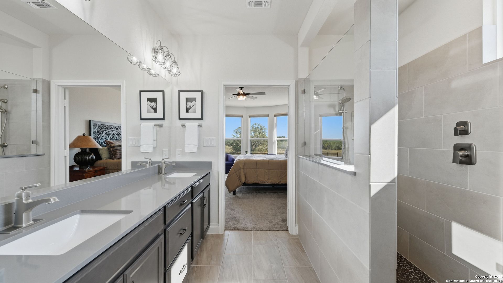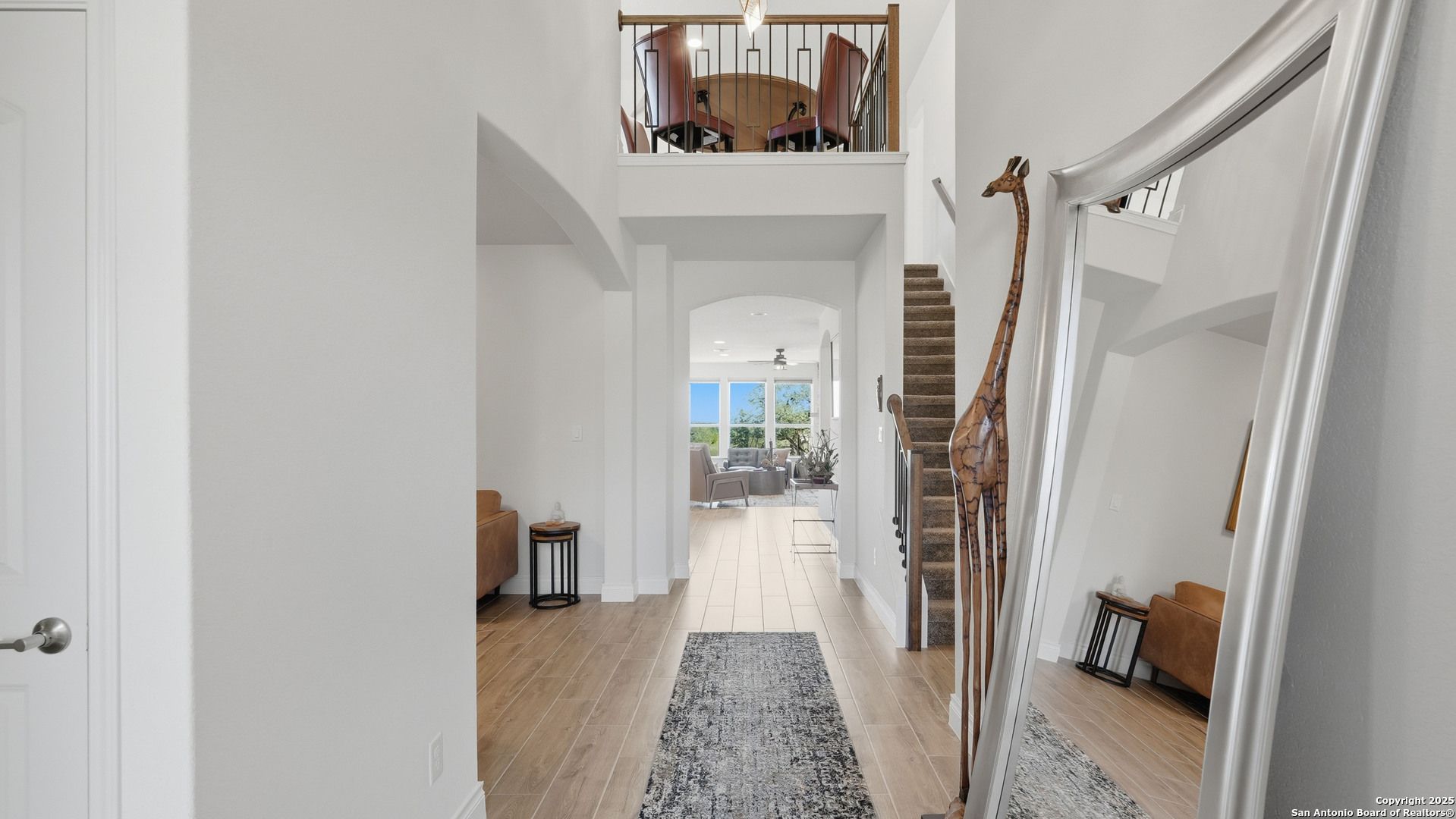 Welcome to this beautiful home in the popular Veramendi community of New Braunfels! Tucked away at the end of a quiet cul-de-sac, this spot backs up to a peaceful greenbelt-where you can often see cows grazing just beyond the fence. The large backyard is perfect for relaxing or entertaining, and it's just a short walk to the neighborhood elementary school. This 2-year-old home has been very lightly lived in and is in excellent condition, with tons of upgrades throughout, including a whole-home water softener, custom window coverings, and upgraded lighting and fans. Inside, you'll find 3,382 square feet of space with 4 bedrooms, 3 bathrooms, a media room, a game room, and a convenient office nook-perfect for managing household tasks. The primary suite features a cozy bay window, and the home is zoned to NBISD. Check the supplements for a full list of upgrades-this one truly has it all - including the Texas hillcountry view out the back!