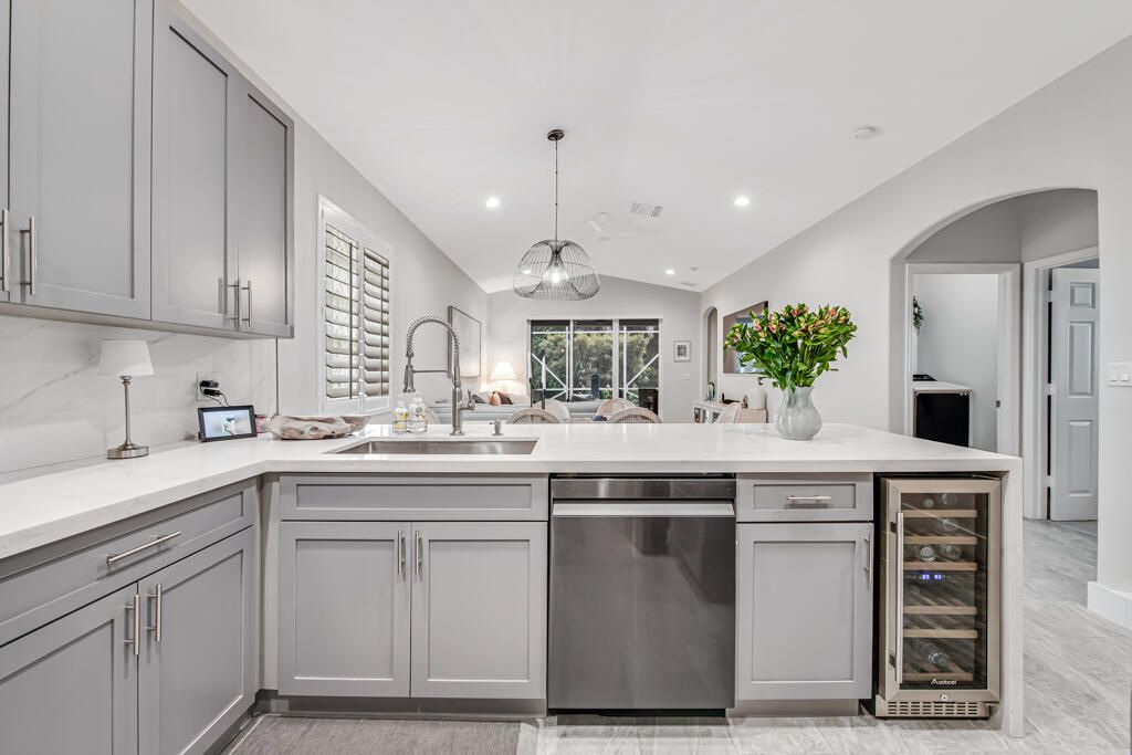 ABSOLUTE STUNNING PERFECTION! Wide open concept! Gourmet Designer kitchen with Quartz counters and backsplash, new Cabinets 42'' , expanded pantry, and breakfast area, New appliances Samsung, new cooktop w/ gorgeous SS Hood and wine cooler. Living area features vaulted ceilings, new fans, and custom lighting. Beautiful Porcelain floors throughout the house, plantation shutters, high hat lights. Master Bedroom, ceramic floors, expanded walk in closet w/system and drawers, second closet, magnificent Master Bathroom with custom shower and freestanding bathtub, double vanity w/ Quartz counters, drawers. second & third bedroom are a generous size. The second bath is updated with shower and new vanity. A/C 2021 HWH 2018 BRAND NEW STATE OF THE ART CLUBHOUSE! ALONG W/ THE SEPARATE LAKESIDE NEW FITNESS CENTER THAT BLOWS AWAY THE OTHER COMMUNITIES. FULL SERVICE BAR, AN CAFE AREA FACILITIES INCLUDE TWO POOLS, ONE OF WHICH IS A RESISTANCE POOL. THE SOCIAL HALL THE SOCIAL HALL FEATURES A BRAND NEW STAGE W/PROFESSIONALSOUND BOOTH AND DRESSING ROOMS.