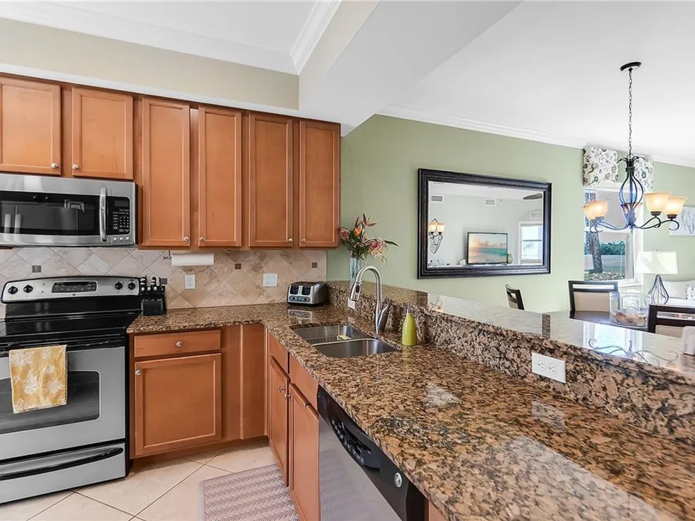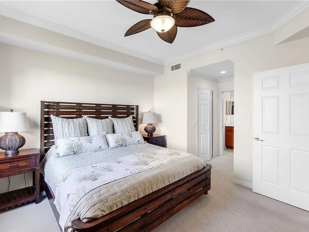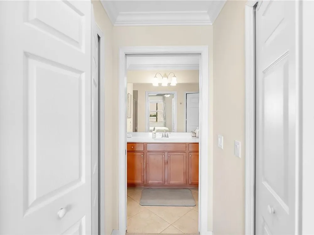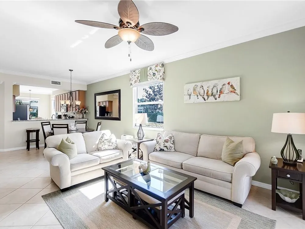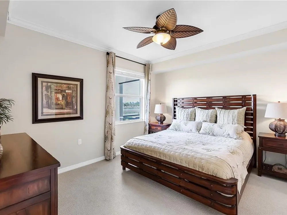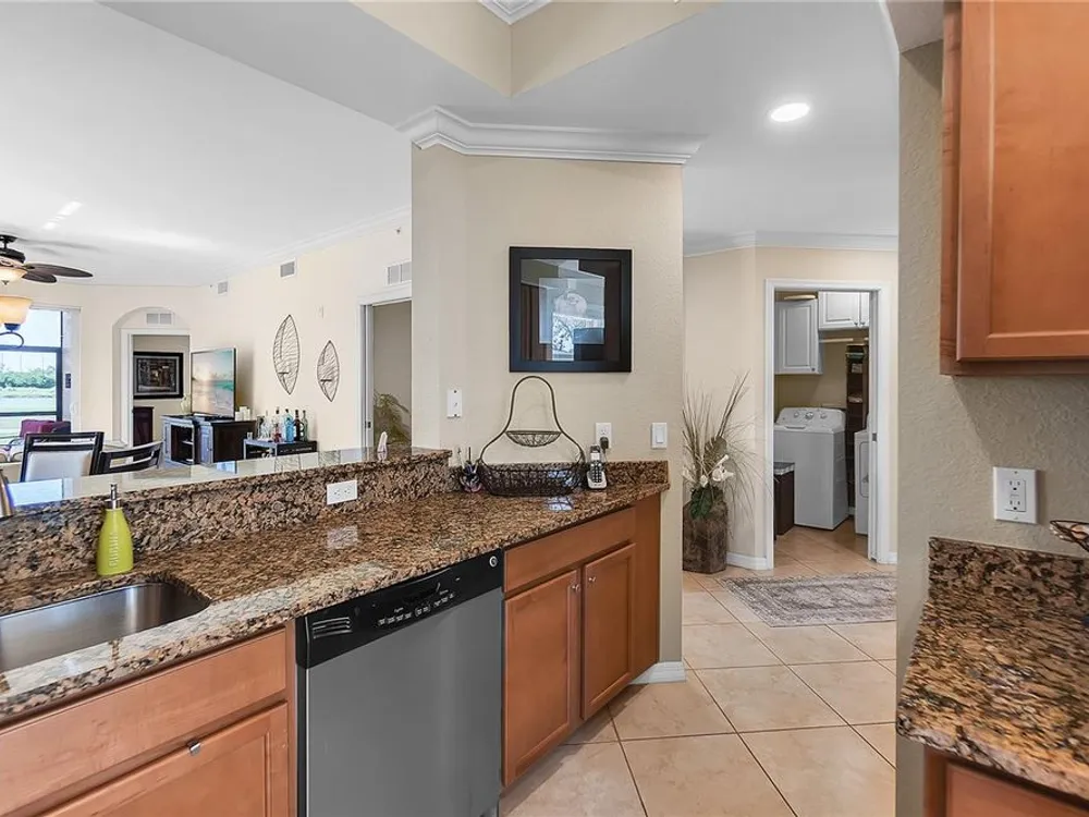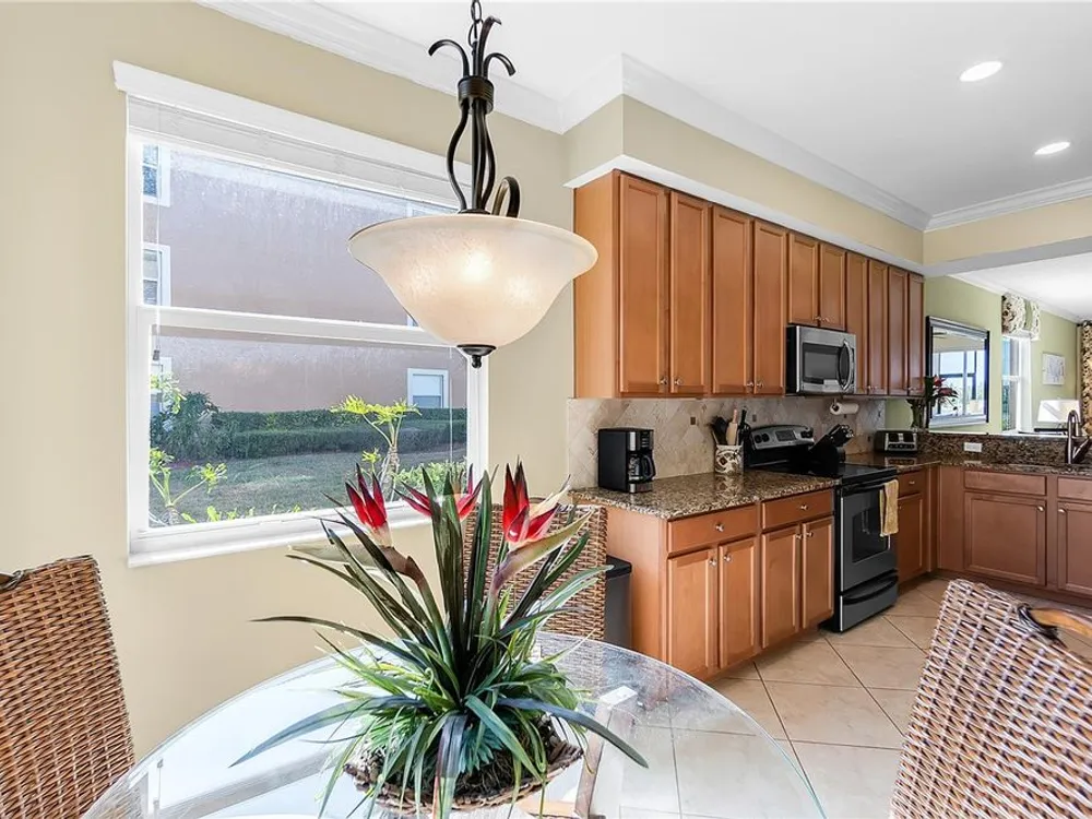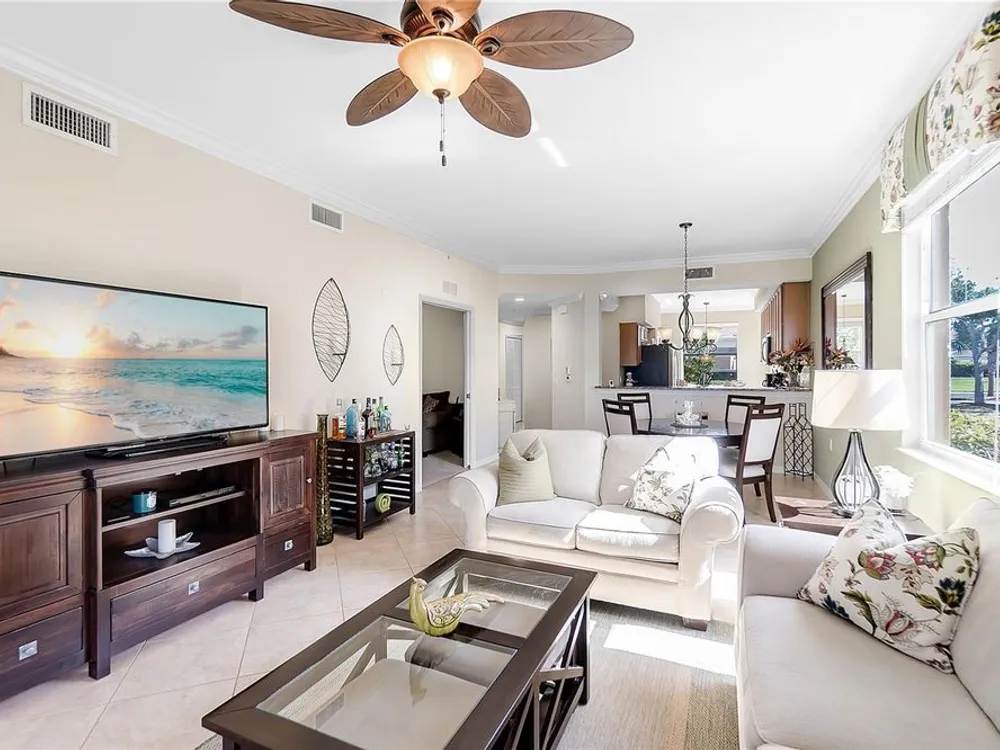 - Ceiling Fan(s), Crown Molding, Eat-in Kitchen, In-Wall Pest Control, Living/Dining Room, Open Floorplan, Solid-Wood Cabinets, Stone Counters, Thermostat, Walk-In Closet(s), Window Treatments