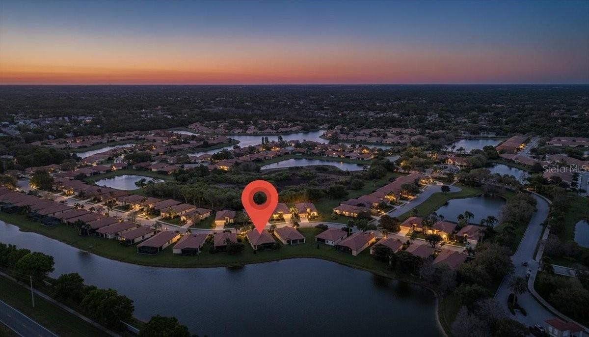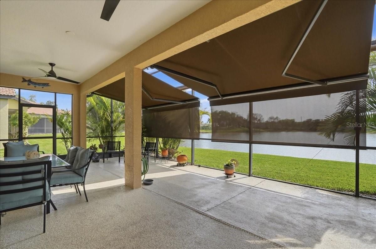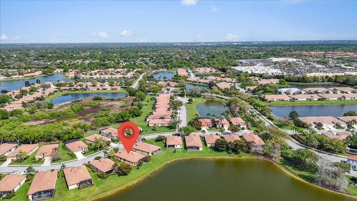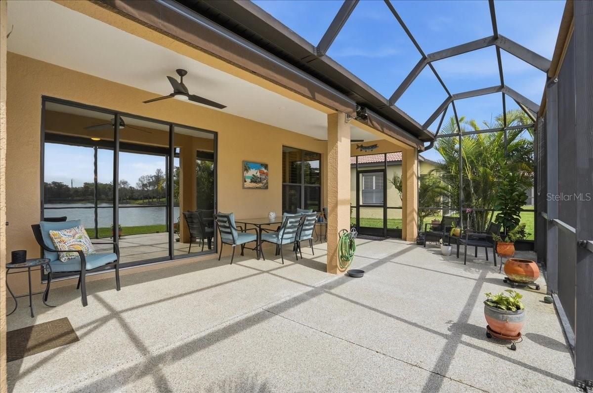 AN ABSOLUTE SHOWSTOPPER OF A HOME! Welcome to this magnificent 3 bedroom, 2 bath residence, ideally located in the lively Lakeridge Falls community, designed for those aged 55 and over. This home artfully combines comfort and convenience showcasing a plethora of upgraded features that reflect a model home quality. Situated on a serene pond with expansive water views, this lot provides an exceptional level of privacy within the gated community. The gourmet kitchen, the heart of the home, boasts elegant quartz countertops, complemented by an upscale Whirlpool appliance suite with a centerpiece 5-burner gas range (complete with griddle), and stylish two tone cabinetry. The spacious quartz-topped island offers seating and plenty of cook-prep area. Whether you’re a seasoned chef or love hosting friends and family, this kitchen is sure to impress, and sits adjacent to a cozy breakfast nook area where you can relax and enjoy the outdoor views with your morning beverage. A pass-through opening between the living and dining areas features a matching quartz counter, alongside built-in cabinetry that is perfect for storing games, dining ware, or seasonal decor for easy access. The primary bedroom sits off the lanai and features dual closets, and an ensuite bath with a spacious twin sink granite top vanity, private water closet, and easy walk in shower. Both bathrooms in the home have been tastefully upgraded, highlighting modern fixtures and finishes that exude sophistication. Two additional bedrooms are situated at the opposite end of the home for added guest and homeowner privacy. Inside, elegant crown molding and plantation shutters grace every room, adding an extra touch of refinement, and the elevated electrical package ensures abundant lighting options throughout. Two distinct living areas mean you have the flexibility to create spaces for relaxation, entertaining, or pursuing hobbies. Each space is crafted with both comfort and functionality in mind. Tile flooring flows seamlessly throughout the home, making it easy to maintain and perfect for Florida living. The AC unit, installed in 2020, ensures efficient cooling, and the garage includes a new garage door and motor, and handy ceiling-anchored shelves plus ample cabinetry for storage and organization. With a sturdy tile roof, and over 2,000 square feet of living space, this home offers ample room to enjoy with the comfort of NOT being in a flood zone. Step outside to the screened lanai, where you can bask in the picturesque pond views. The remote-controlled retractable awnings allow you to manage sunlight, crafting your ideal outdoor retreat, whether you prefer basking in the sun or enjoying the shade. The lanai floor has even been refinished, enhancing your outdoor experience. This home has been meticulously maintained, ensuring it remains in pristine condition, ready for you to move in and embrace the lifestyle you deserve with the fun and convenient (and recently renovated) community amenities that are offered. Ideally located a short drive to UTC, airport options, sought after dining, every kind of shopping and of course the exciting areas of Downtown Sarasota, Bradenton and world renown beaches! Don’t miss the opportunity to own this extraordinary home, which beautifully blends modern amenities with the tranquility of private waterfront living. Experience the best that Lakeridge Falls has to offer—schedule your tour today!