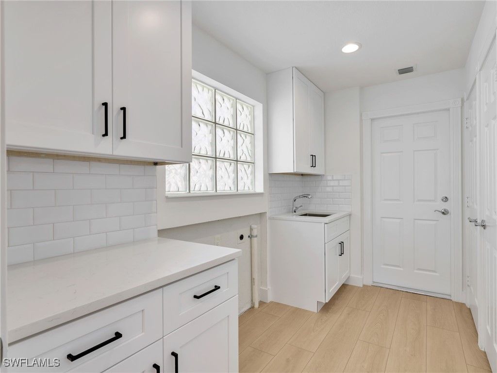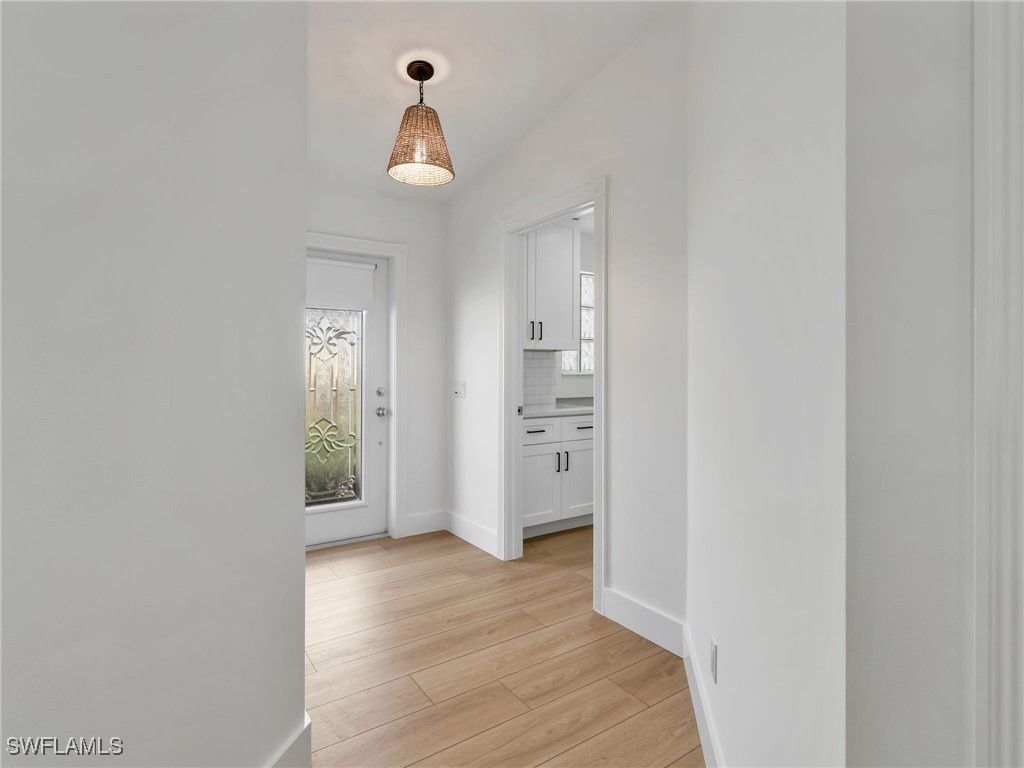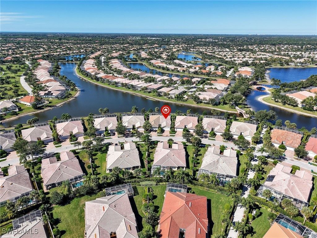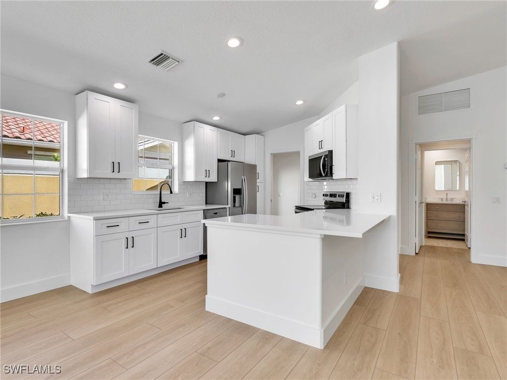 This stunning villa has been fully remodeled from top to bottom and is completely move-in ready. The interior has been entirely gutted and rebuilt with luxury plank vinyl flooring, fresh paint, new lighting throughout, ceiling fans, and custom closets for beautifully organized storage. A large family room with vaulted ceilings creates an open, airy gathering space. The den offers flexible use — ideal as a dining area, or a secondary family room. The brand-new kitchen features white shaker cabinetry, quartz countertops, stainless steel appliances, and a stylish subway tile backsplash. The laundry room offers new matching cabinetry and its own coordinating backsplash for a clean, cohesive look. Both bathrooms have been beautifully updated with designer tile, new vanities, new toilets, and all-new plumbing. Outside, a brand-new private pool overlooks a serene long lake view — the perfect setting for relaxing or entertaining. The home also offers excellent storm protection with electric shutters on the lanai and aluminum roll shutters on the rest of the home. Additional highlights include central vacuum, a newer A/C for added comfort and peace of mind and a new pool pump. Located within Verona Walk, an award-winning, guard-gated community known for its resort-style amenities — pools, tennis, pickleball, fitness center, restaurant, and more — all with low HOA fees and an active lifestyle. Dive into a vibrant social scene with a calendar full of activities and events. Additionally, conveniences are at your doorstep with a restaurant, ice cream shop, salon, travel agency, gas station, and post office all located within the community.