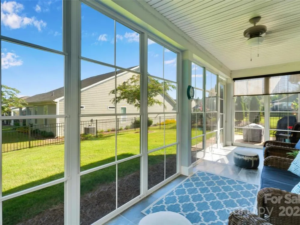This beautiful property located in Cresswind, the 55 and over community that has all the amenities you could ever want. An open floor plan with extended sunroom and move-in ready condition. The extended garage comes with an epoxy floor with plenty of overhead shelving for additional storage. Step out back to a fenced in yard and an enclosed screened porch with EZ Breeze Windows - perfect for relaxing or entertaining family and friends. This home features foam insulation for energy efficiency and lower utility bills. Lawn maintenance included monthly HOA covers basic cable, internet, security system, irrigation and community amenities. Enjoy all this community has to offer: pickleball courts, tennis courts, bocce ball, indoor heated swimming pool, outdoor resort pool, cooking classes, social gatherings, and more. Conveniently located near hospitals, shopping and I-485, yet tucked into a peaceful neighborhood.