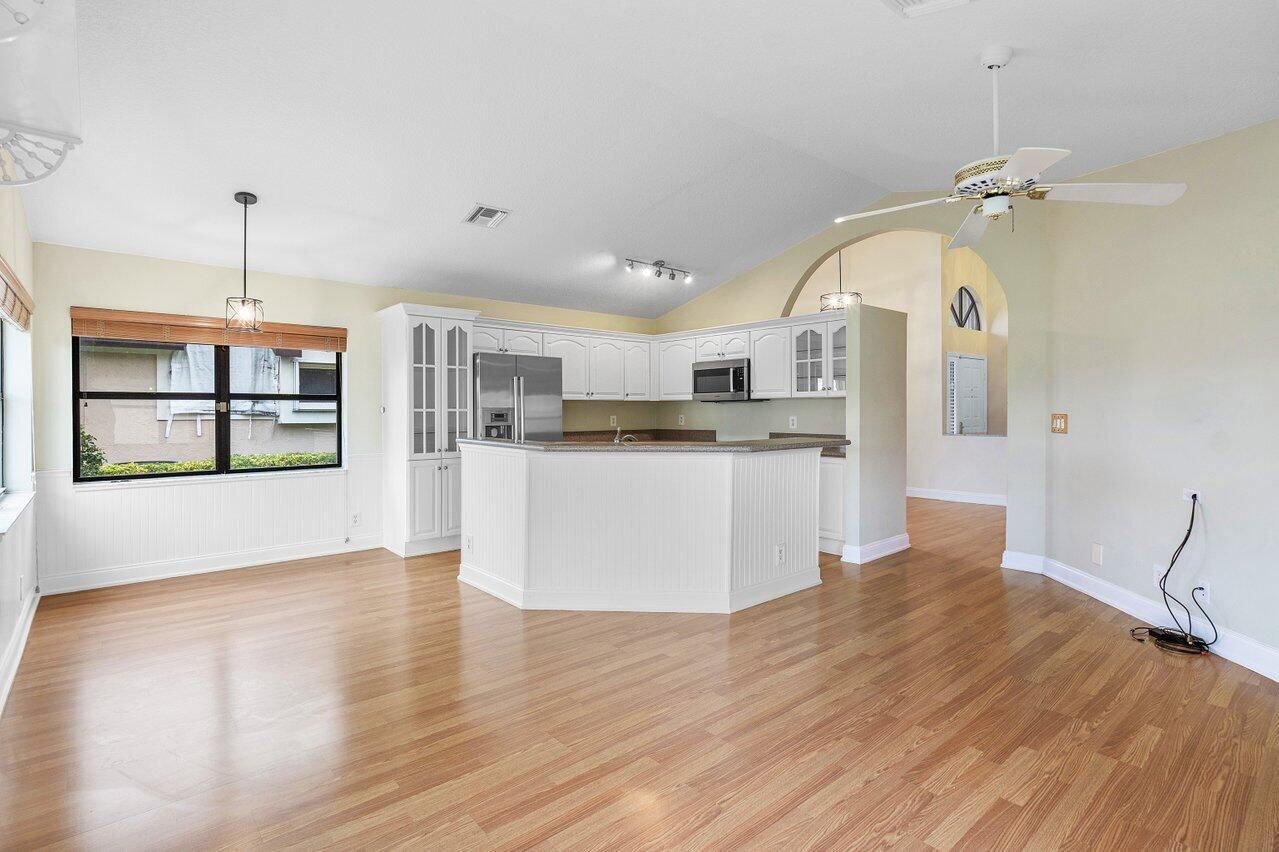 Welcome to Aberdeen Country Club, the epitome of Luxury Living. This prime 3 bed/2 bath well-maintained villa located on hole-6 boasts vaulted ceilings, engineered hardwood floors, newer Bosch appliances, & custom plantation shutters. The enclosed lanai expands the interior living space, seamlessly blending indoors with the outdoors. An awning-covered patio provides shade while taking in serene lake and golf course views from a fenced-in yard. This home features many enhancements: updated garage floor, new AC UV light & pump, new roof 2022, master bath renovated in 2018, guest bath updated in 2017, & central vac. Aberdeen Country Club offers resort-style living with Golf, Tennis, & Social Memberships available as well as bar/restaurants, pro-shops, and spa-like pools with towel service. Welcome to Aberdeen Country Club, the epitome of Luxury Living. This prime 3 bed/2 bath well-maintained villa located on hole-6 boasts vaulted ceilings, engineered hardwood floors, newer Bosch appliances, & custom plantation shutters. The enclosed lanai expands the interior living space, seamlessly blending indoors with the outdoors. An awning-covered patio provides shade while taking in serene lake and golf course views from a fenced-in yard. This home features many enhancements: updated garage floor, new AC UV light & pump, new roof 2022, master bath renovated in 2018, guest bath updated in 2017, & central vac. Aberdeen Country Club offers resort-style living with Golf, Tennis, & Social Memberships available as well as bar/restaurants, pro-shops, and spa-like pools with towel service. Seller will consider a credit towards country club fee based on offer. For HOA documents and application please go to www.hamptonus.com. Management company is: Campbell Property Management. POA: Aberdeen POA, INC Property Manager: Lisa Teets [email protected]. Contact: Aberdeen Country Club (561-738-4903 ext 325) for tour and membership options. There is a one-time membership fee as well as annual dues. HOA Fee Includes: -Cable -Internet -Roof -Lawn -Irrigation System -Painting Exterior