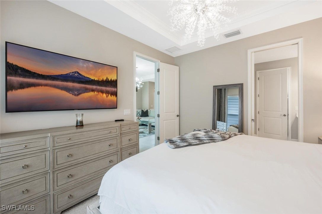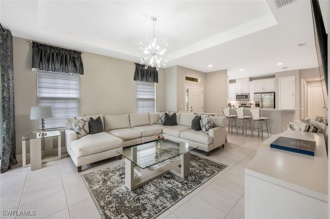 Private, peaceful setting at the end of cul-de sac sits this brand new furnished villa with screened-in lania over looking the preserve. One story living, hassle free lifestyle, with 2 bedrooms, den/office, 2 baths, and 2- car garage. The decor is sleek with tones of grey and white contemporary lighting and fixtures gives a high energy “Vibe”. Enjoy the Resort lifestyle here at Esplanade of Hacienda Lakes which includes 6,500 Sq. Ft. Club house, 24/7 Fitness gym, circular resistance pool and spectacular lap pool, hot tub,fire-pit ,Umbrellas by the pool, and music, PICKLEBALL, Tennis, Bocce Courts , playground dog park. Fun social events social & card room plus billiards. Everyone is raving about the amazing “over the top events “ the club put on.