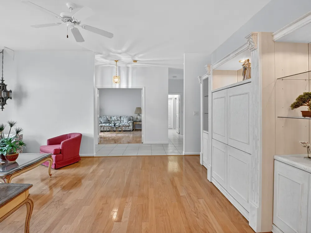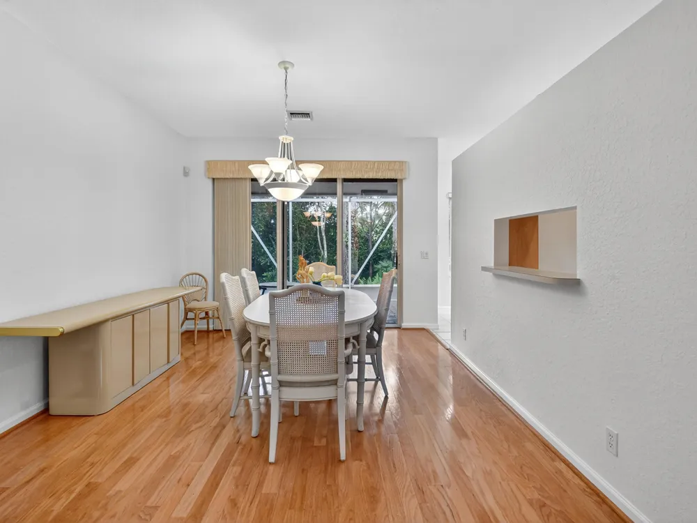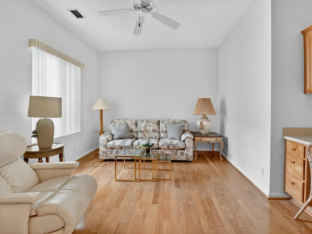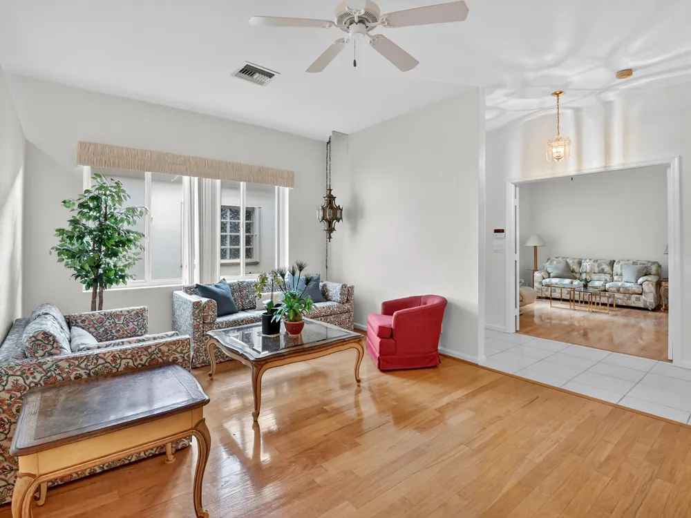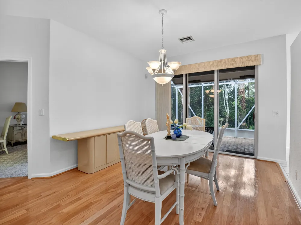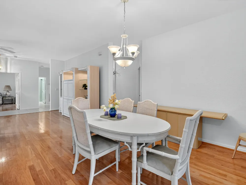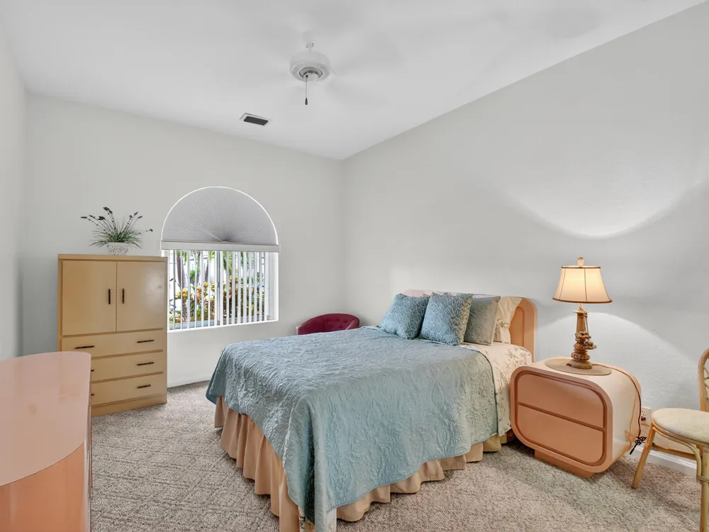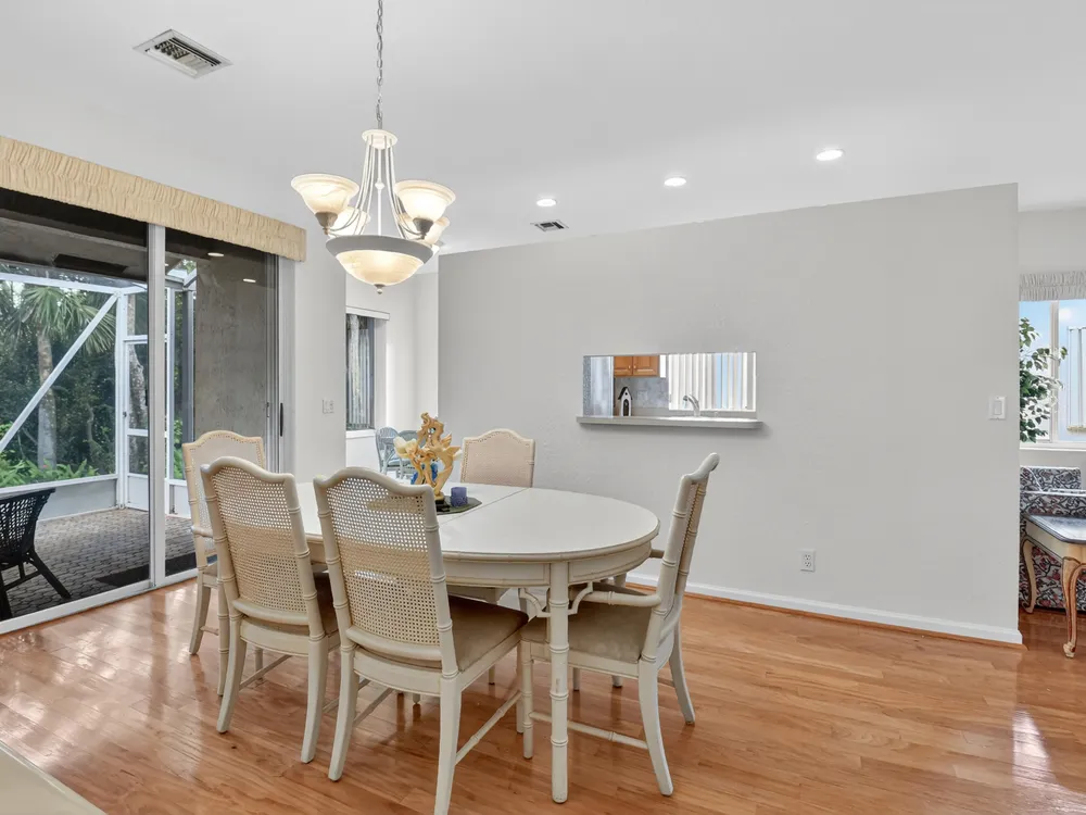 This 3/2, is FRESHLY PAINTED w/ a light & airy neutral pallet boasting an open floor plan. Interior has wood floors in the main living/dining areas & spacious bedrooms with ample storage space. Exterior includes accordion shutters for storm protection, a side entrance & a covered lanai that provides both privacy & serenity. Venetian Isles is a 55+ community that offers country club living. Amenities include a new clubhouse w/ a restaurant serving breakfast & lunch, PLUS an upstairs bistro bar that serves dinner. A social hall is utilized for weekly parties & shows, a craft room, billiards & a library. Outside the clubhouse is a large resort-like pool w/hot tub, resistance walking pool, Tennis, Pickleball & Bocce courts. Last but not least, a free-standing state- of-the-art workout room.