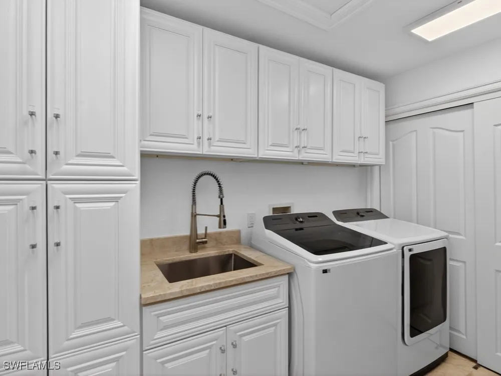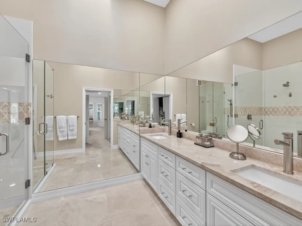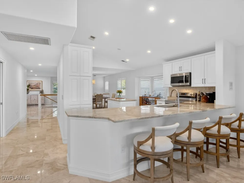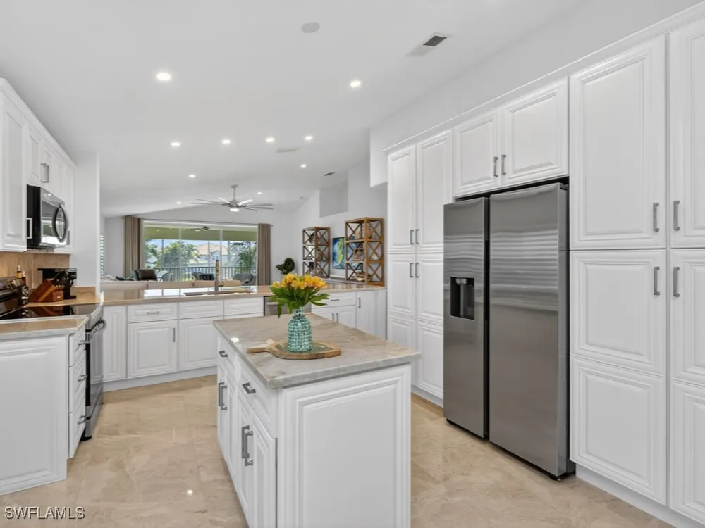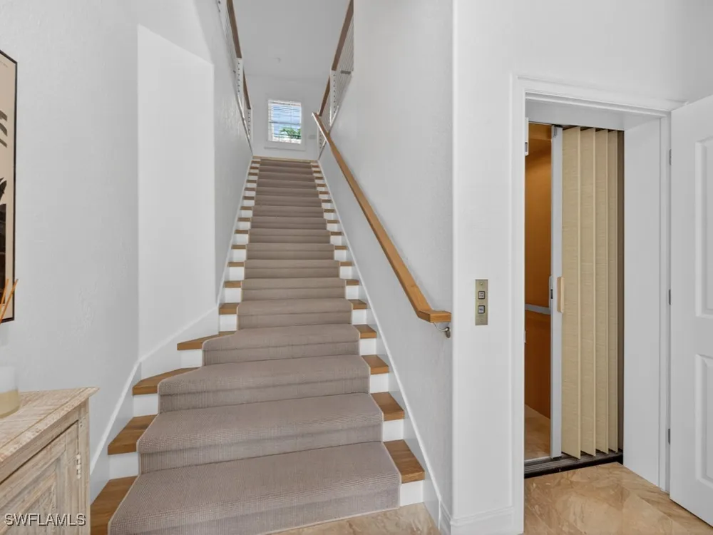 Magnificent completely remodeled in 2022 second floor unit located in the Saratoga community in Lely Resort. CURRENT MEMBERSHIP IN THE PLAYERS CLUB AND SPA AVAILABLE UPON PURCHASE. The Players Club and Spa is optional, current owners are members so membership can transfer to buyer at current membership fees. Upgrades include marble flooring custom wood staircase Taj Mahal quartzite countertops throughout kitchen/ bathrooms and laundry room. Unit has Elevator and new appliances, with two car garage with Epoxy coated floor. Community pool and hot tub.