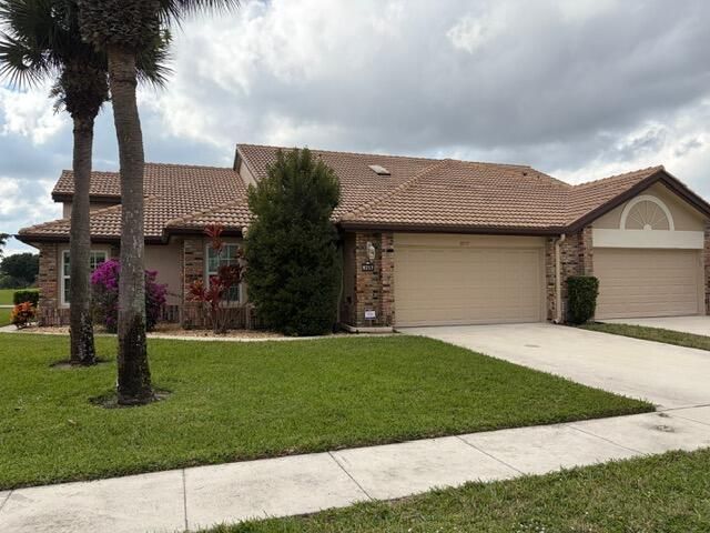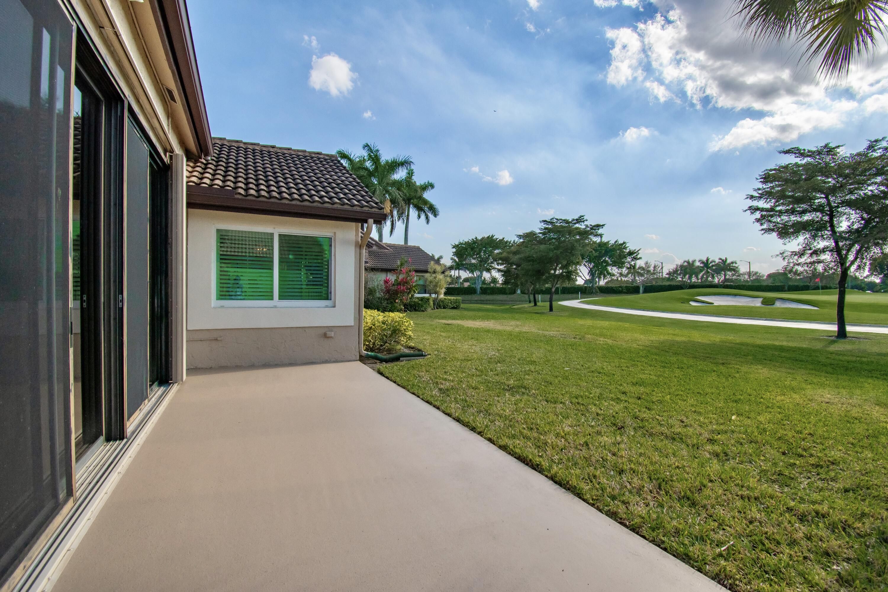 Aberdeen country club, beautiful villa golf and Lakeview. Two bedroom plus office / den. Modern kitchen with granite countertops, stainless steel appliances, white cabinetry. Mainly impact hurricane glass and back hurricane shutter. Very large, enclosed back patio overlooking the golf course. three year-old roof. Home is on a quiet cul-de-sac move right in.