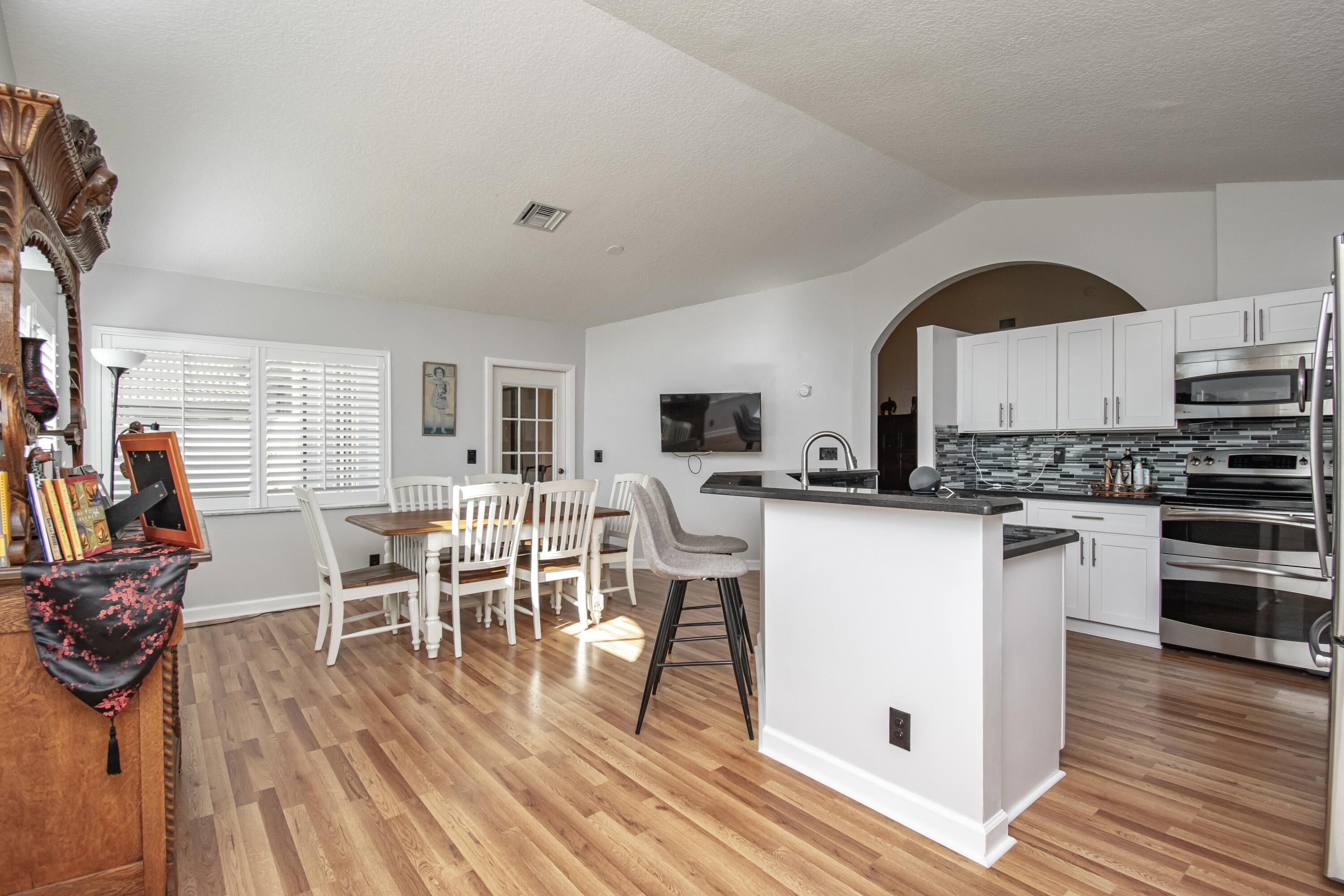 - Cathedral Ceiling(s), Vaulted Ceiling(s), Split Bedrooms, Breakfast Area, Living/Dining Room, Eat-in Kitchen, Dual Sinks, Main Level Primary, Separate Shower, Soaking Tub