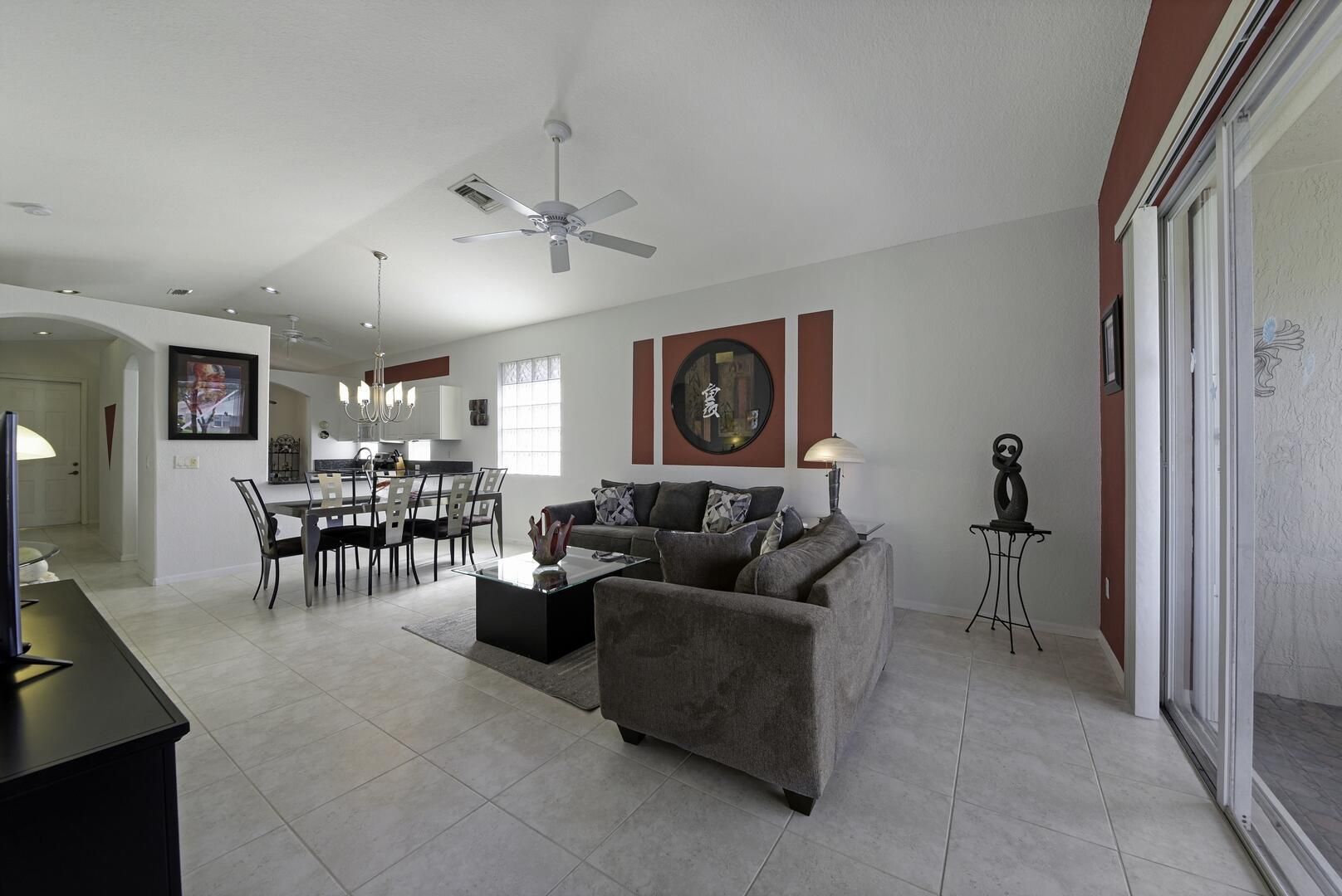 Welcome to this beautifully maintained 3-bedroom, 2-bath home located in the desirable community of Venetian Isles. This residence features an open floor plan with vaulted ceilings, neutral flooring, and an abundance of natural light enhanced by high-hat lighting throughout. Accordion shutters provide peace of mind and added protection. The spacious kitchen is designed for both functionality and style, offering granite countertops, a pantry, a convenient pass-through to the dining area, and a snack bar perfect for casual dining or entertaining. The primary suite is a relaxing retreat featuring vaulted ceilings, dual closets, and a luxurious bath with double sinks, a soaking tub, and a walk-in shower.