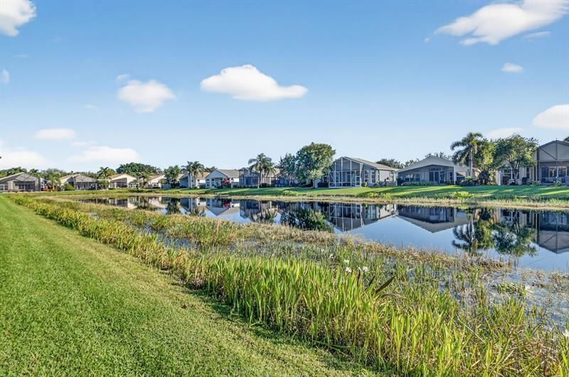STUNNING WATERFRONT HOME! Custom architectural details throughout! From the moment you enter you will notice the unique interior design. In addition, this home is being sold with Sklar Furnishings, known for creating high end designed spaces. So much thought was put into the total design which is evident throughout this popular Atlantic model. 2 bedrooms and den (which can be converted to a 3rd bedroom) & 2 baths. The screened lanai, quiet lakeview & easement between homes, adds to the privacy & desirability of this one of a kind property. You will be impressed by the thought that was put into this beautiful home, as well as the total move-in condition, to be enjoyed on day one! Valencia Shores is known for it’s active 55+ lifestyle, unlimited sports, amenities and clubs for all interests.