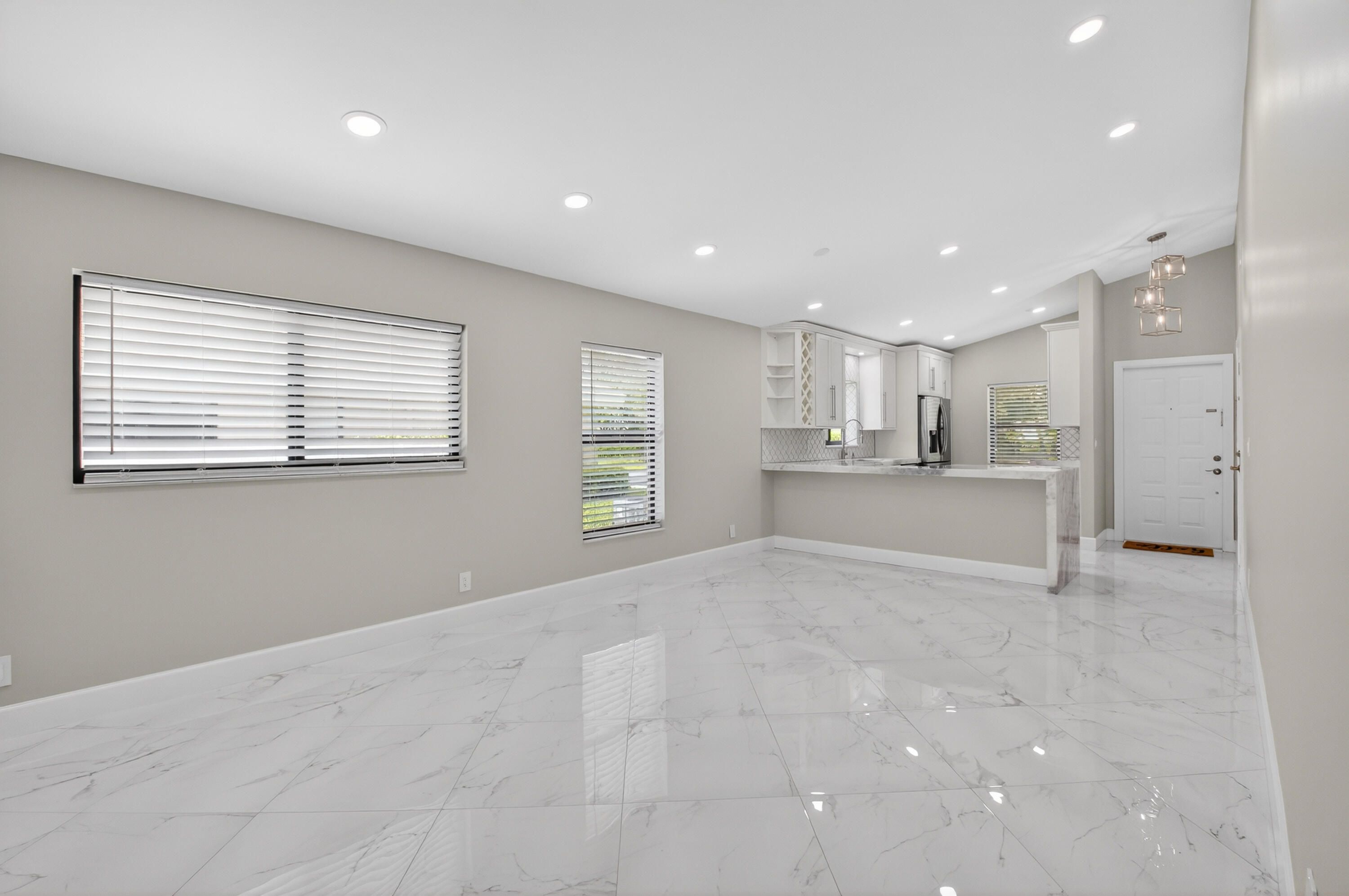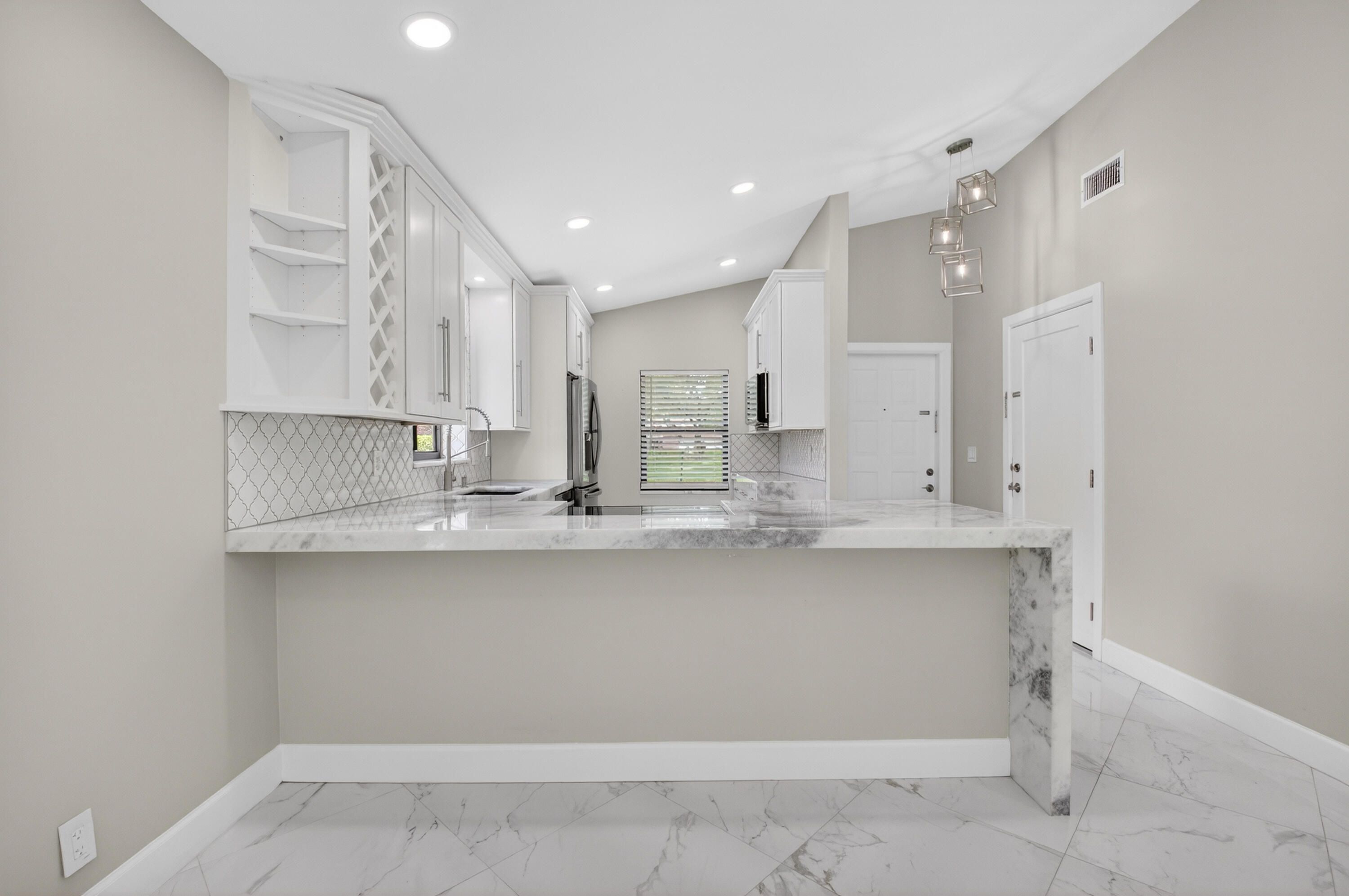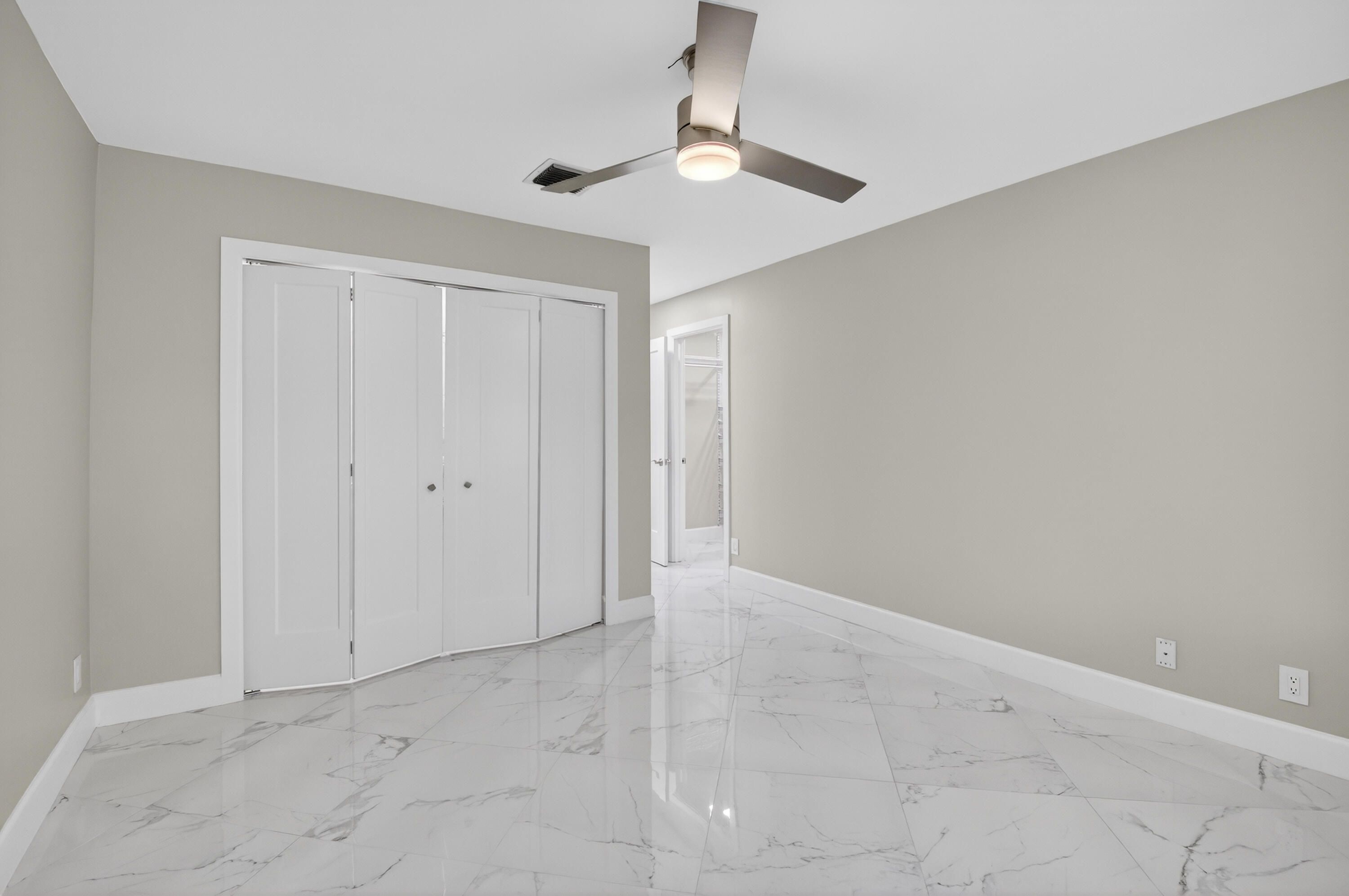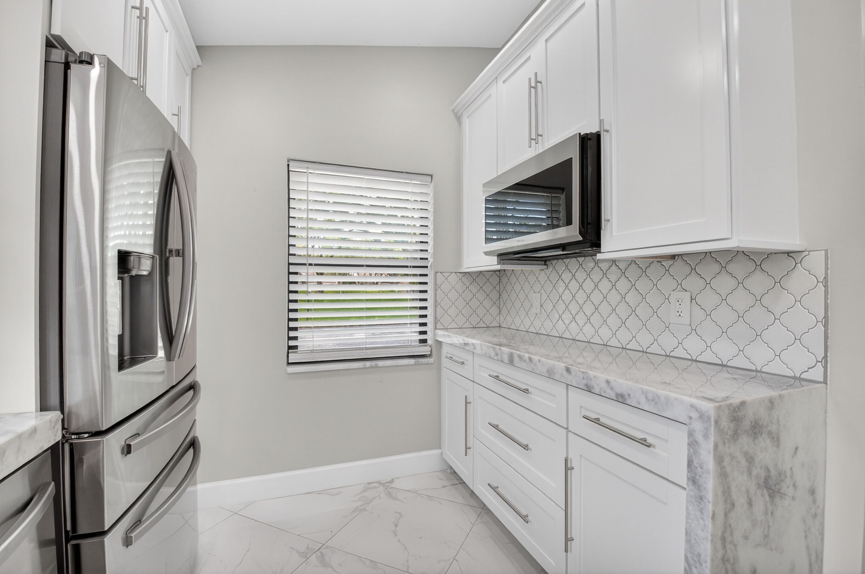 Spectacular fully renovated villa showcasing high-end designer finishes throughout. Custom quartz countertops and cabinetry, solid core doors, and impact windows provide style, quality, and peace of mind. Spacious primary suite offers a luxurious soaking tub, dual sinks, walk-in shower, and two closets including a large walk-in. This 2-bedroom, 2-bath home plus den features a decorator fireplace and a large paver patio perfect for entertaining. Enjoy all new high-efficiency appliances, NEW ROOF, AC, and HOT WATER HEATER. Located in the gated community of Whisper Walk with lush landscaping and resort-style amenities including clubhouse, Olympic-size heated pool, tennis, pickleball, and more. Close to shopping and major roads.