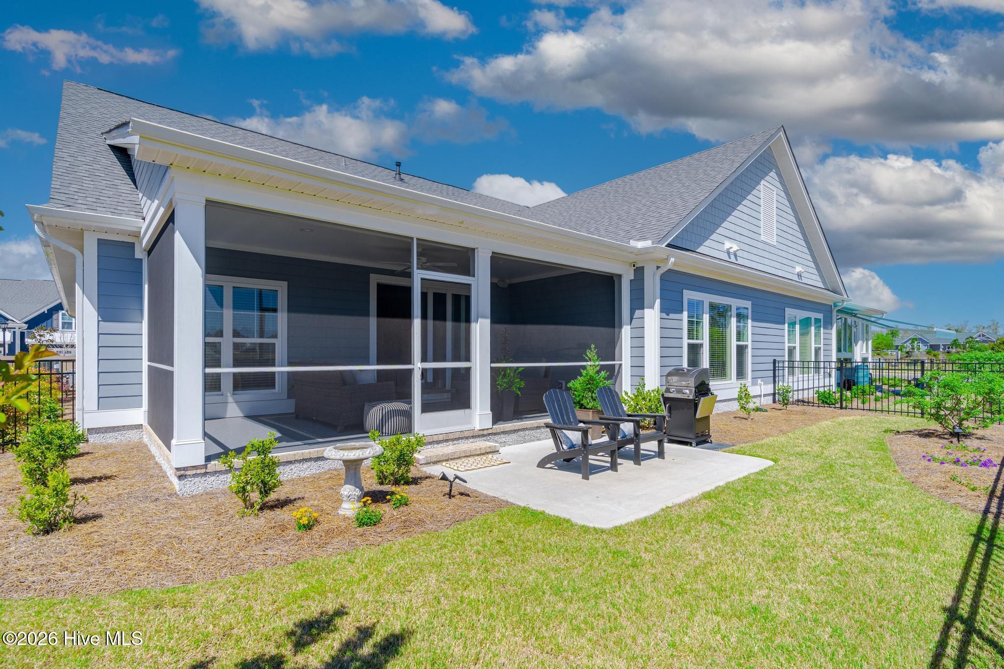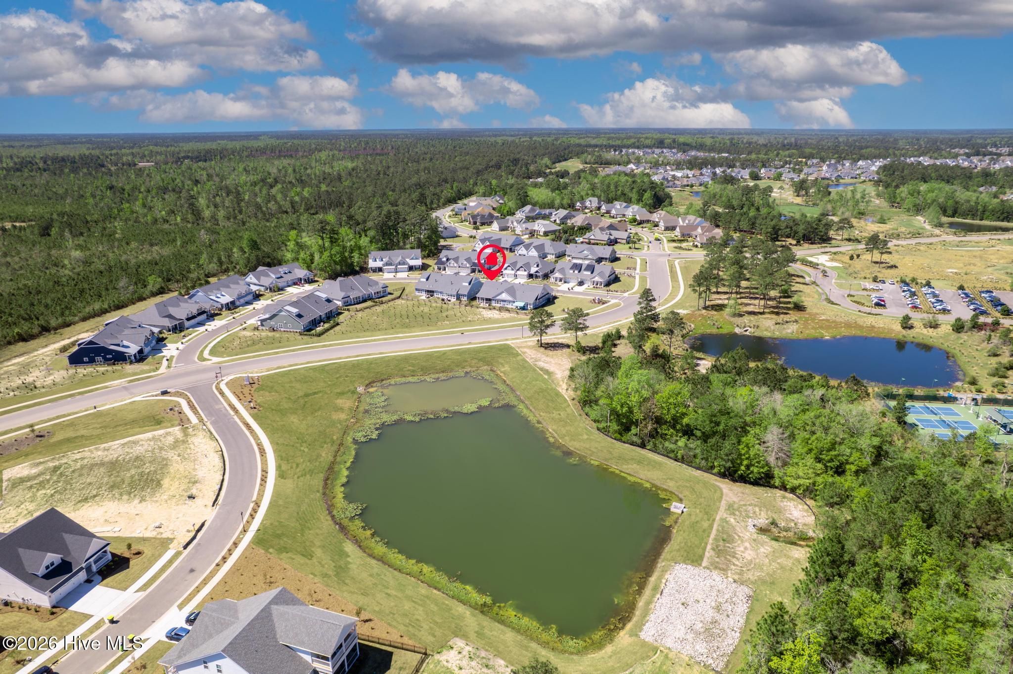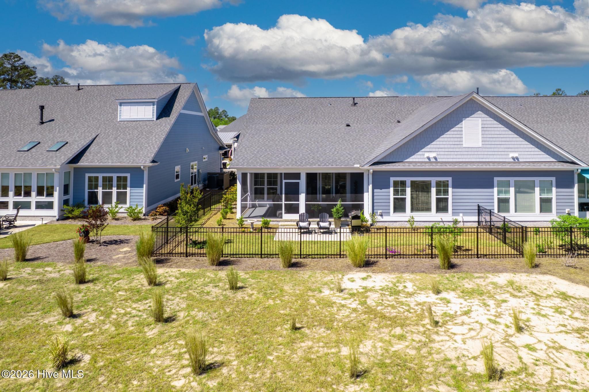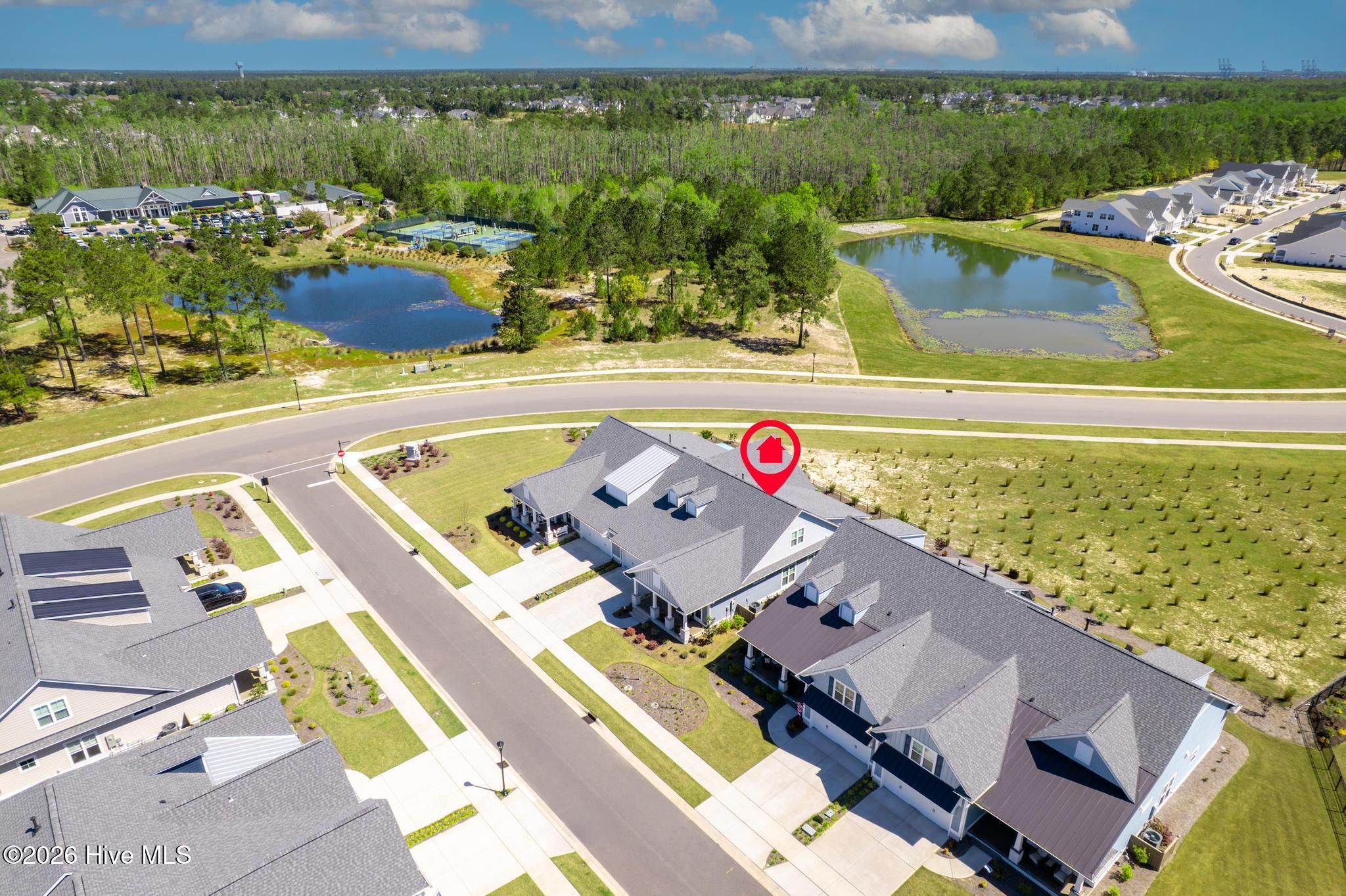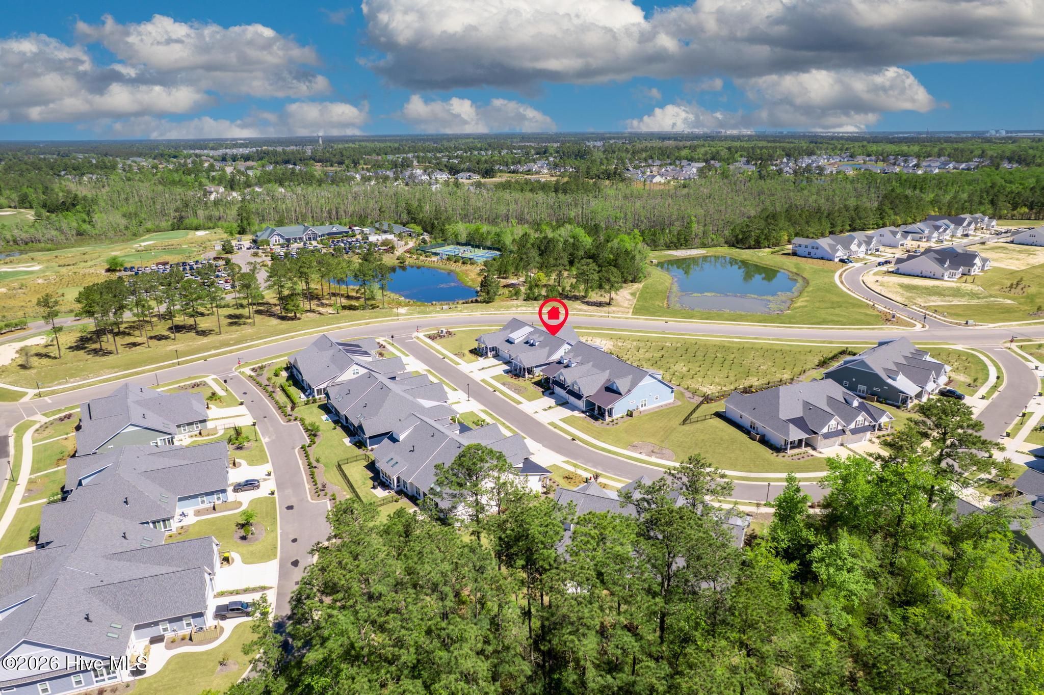 Enjoy easy, low-maintenance living in this beautifully designed Trusst-built townhome, just 3 years young and offering over 2,400 square feet of bright, open space in one of Brunswick Forest's most walkable locations. Filled with natural light, the home welcomes you with a spacious great room featuring a gas fireplace, custom built-ins, and an open layout ideal for both everyday living and entertaining. The gourmet kitchen offers generous counter space and flows seamlessly into the main living area, along with a dedicated dining space perfect for gathering. A designated office provides flexibility for working from home or quiet retreat. The first-floor primary suite adds everyday convenience, complete with an ensuite bath and a large walk-in closet. Upstairs, guests have plenty of room to spread out, along with abundant storage including a large attic and a well-sized garage. Step outside to the lanai and take in peaceful pond views and coastal breezes--perfect for morning coffee or relaxing evenings. Located in Brunswick Forest, this home offers exceptional access to the community's lifestyle amenities, including the nearby private golf club (membership required), pickleball courts, and miles of scenic walking and biking trails. Shopping and dining are conveniently located at the front of the neighborhood. Just 12 minutes to historic downtown Wilmington, 15 minutes to Wilmington International Airport, and a short drive to several area beaches. A bright, beautiful home offering comfort, convenience, and the coastal lifestyle buyers are looking for.