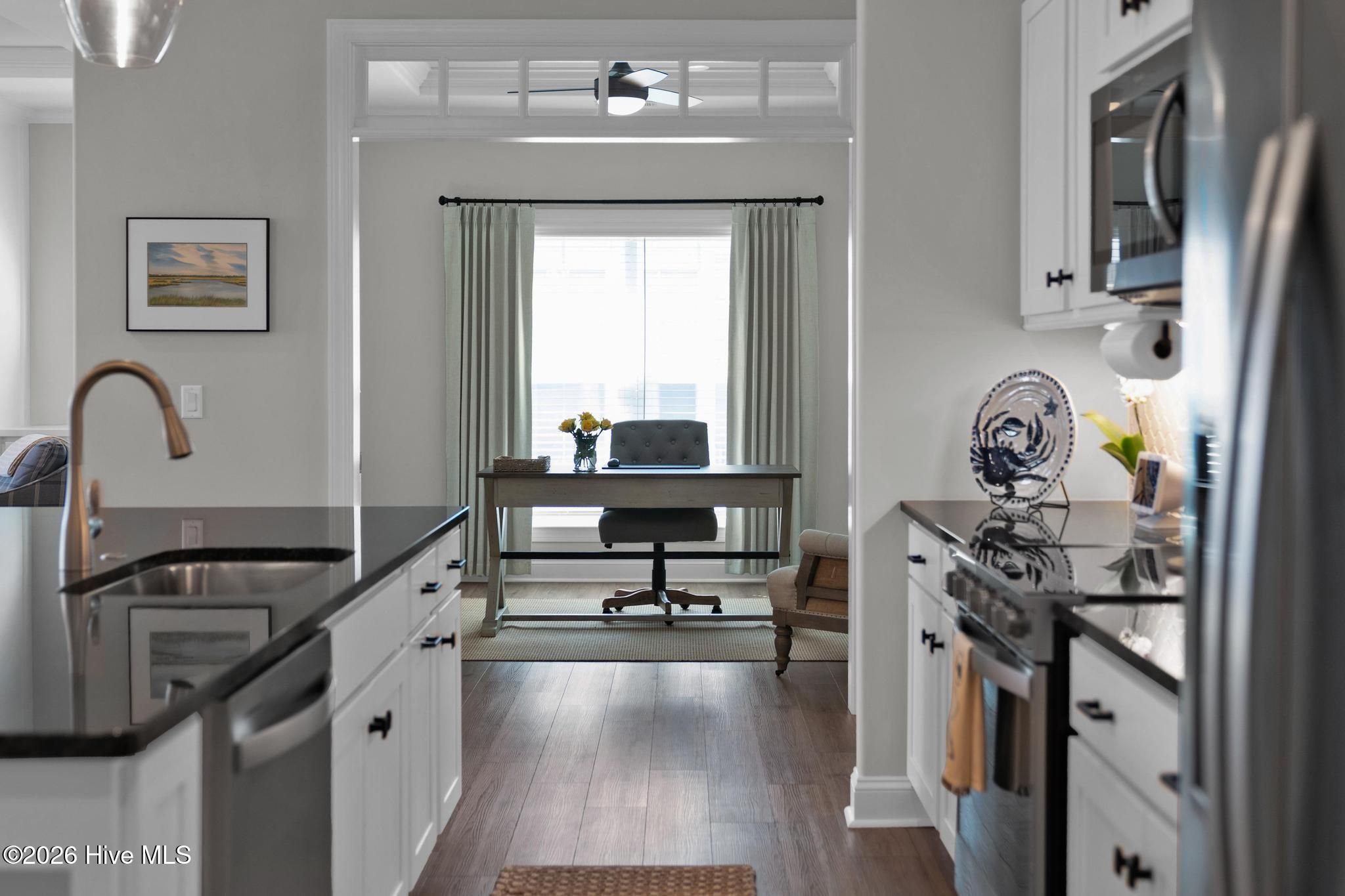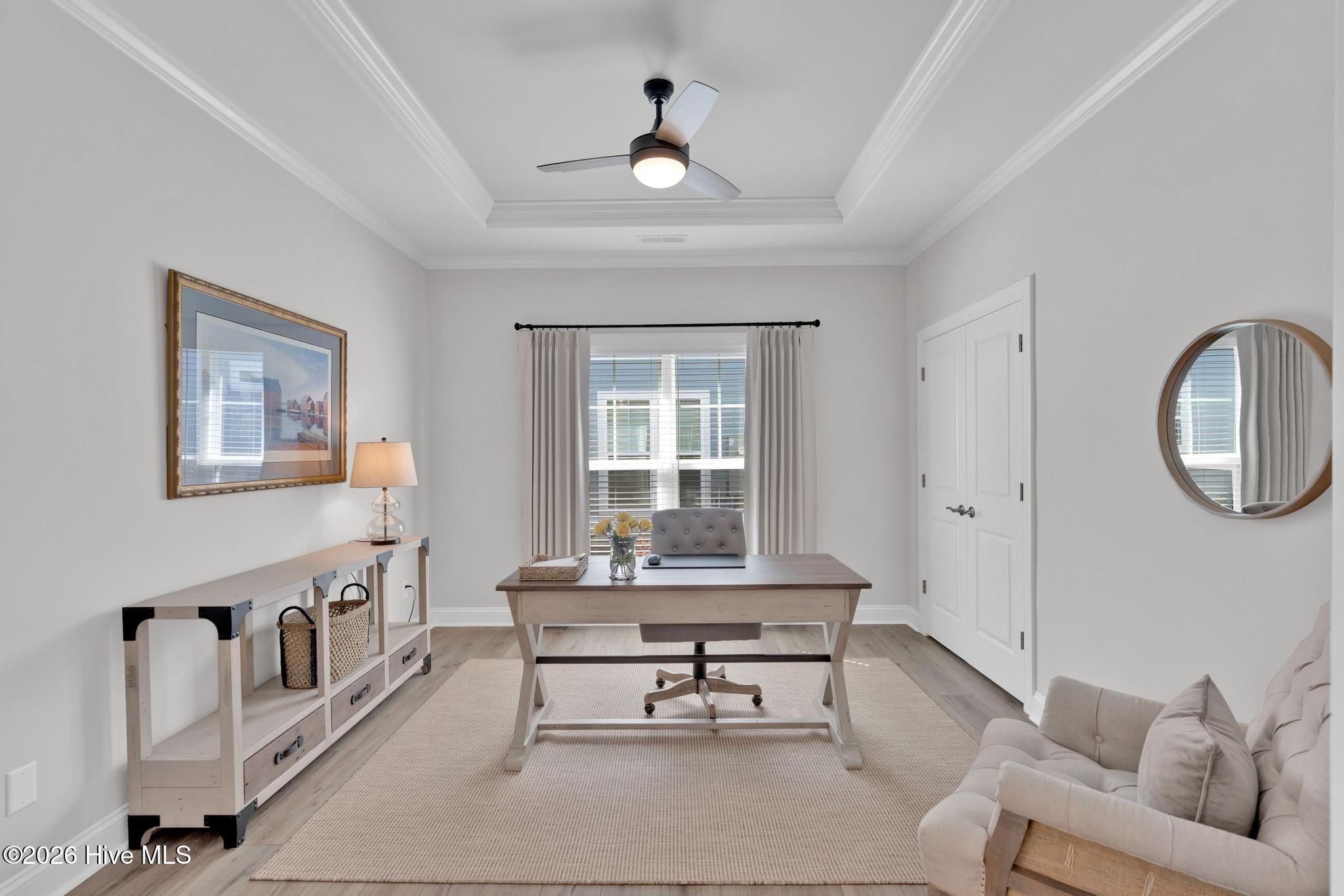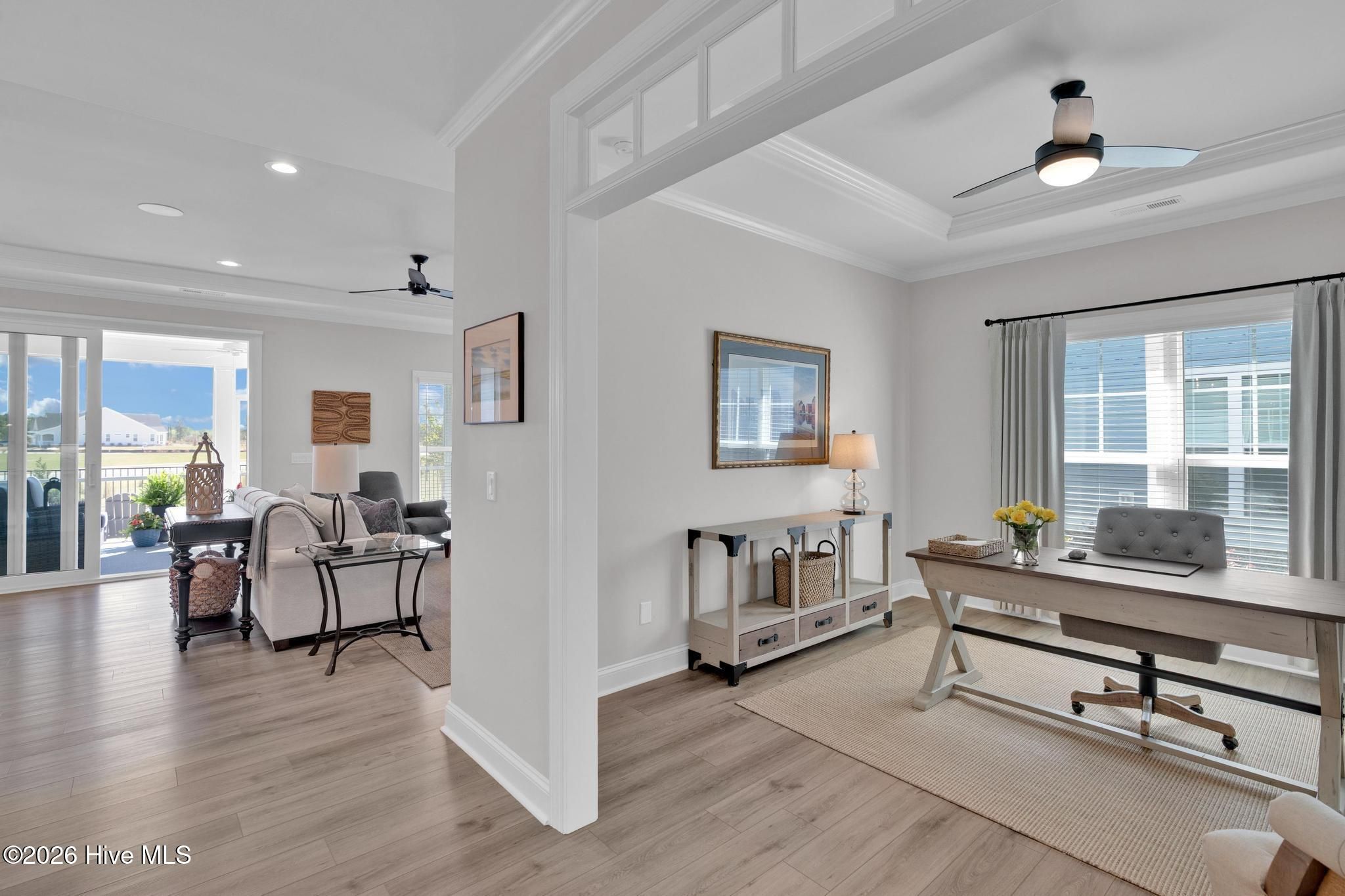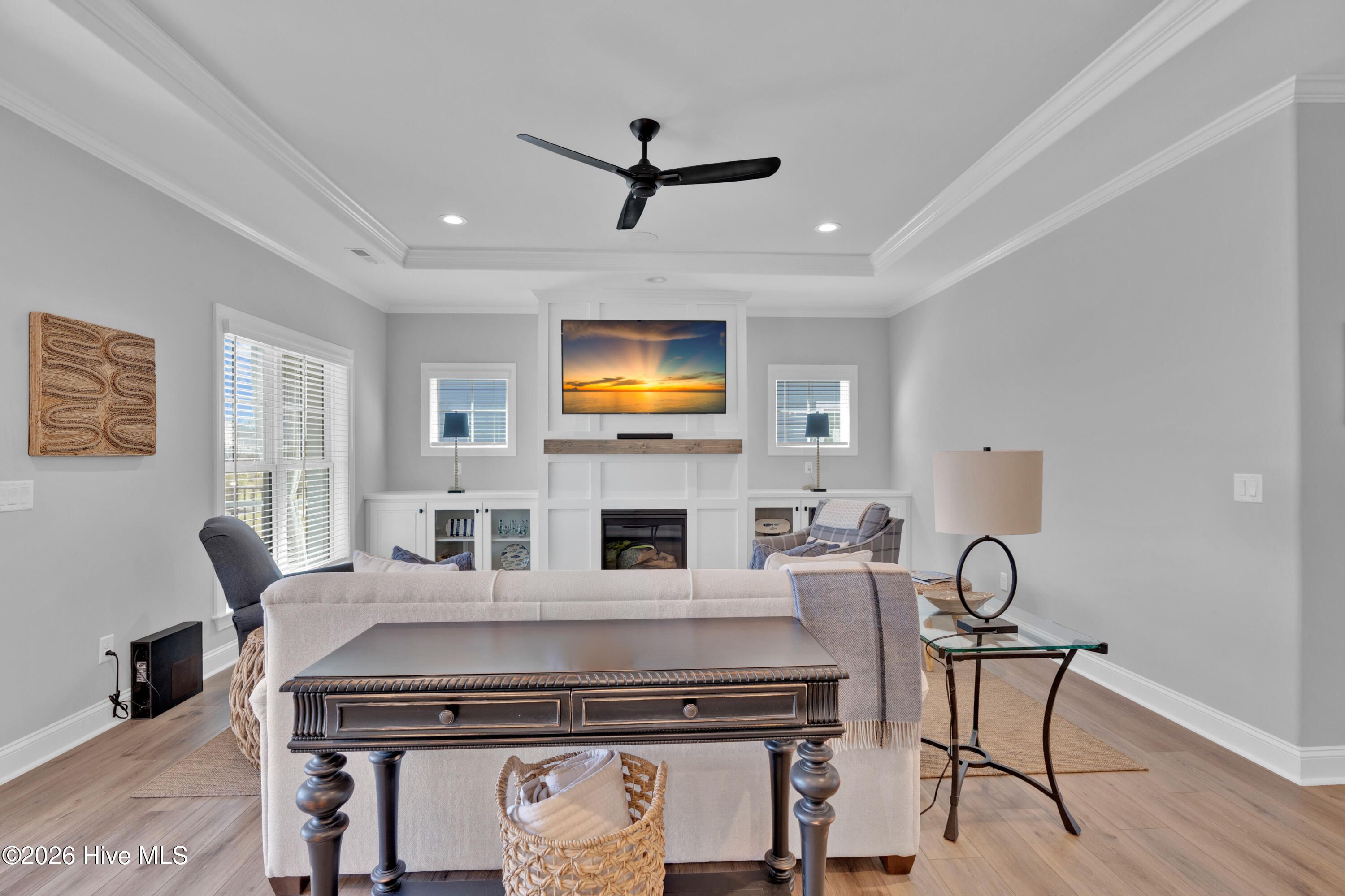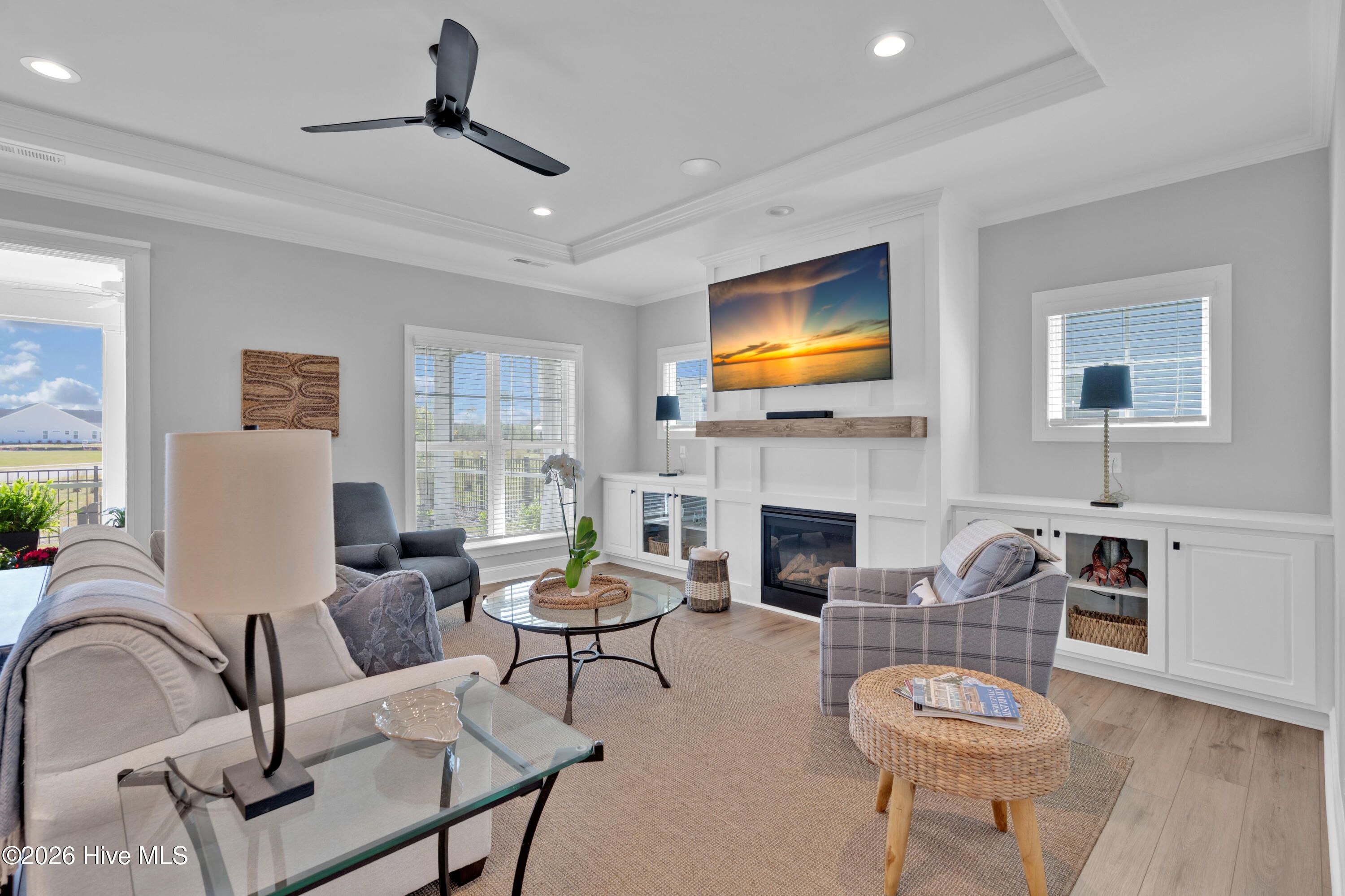 Enjoy easy, low-maintenance living in this beautifully designed Trusst-built townhome, just 3 years young and offering over 2,400 square feet of bright, open space in one of Brunswick Forest's most walkable locations. Filled with natural light, the home welcomes you with a spacious great room featuring a gas fireplace, custom built-ins, and an open layout ideal for both everyday living and entertaining. The gourmet kitchen offers generous counter space and flows seamlessly into the main living area, along with a dedicated dining space perfect for gathering. A designated office provides flexibility for working from home or quiet retreat. The first-floor primary suite adds everyday convenience, complete with an ensuite bath and a large walk-in closet. Upstairs, guests have plenty of room to spread out, along with abundant storage including a large attic and a well-sized garage. Step outside to the lanai and take in peaceful pond views and coastal breezes--perfect for morning coffee or relaxing evenings. Located in Brunswick Forest, this home offers exceptional access to the community's lifestyle amenities, including the nearby private golf club (membership required), pickleball courts, and miles of scenic walking and biking trails. Shopping and dining are conveniently located at the front of the neighborhood. Just 12 minutes to historic downtown Wilmington, 15 minutes to Wilmington International Airport, and a short drive to several area beaches. A bright, beautiful home offering comfort, convenience, and the coastal lifestyle buyers are looking for.