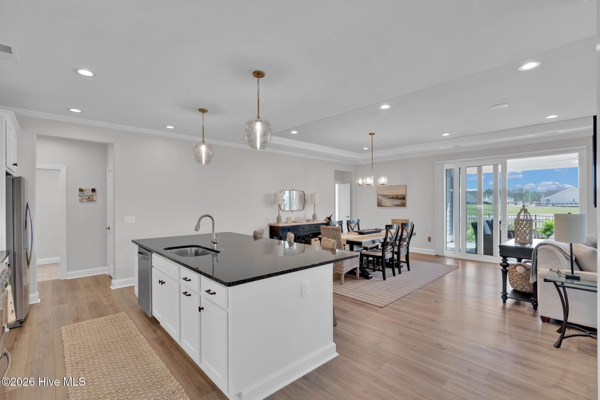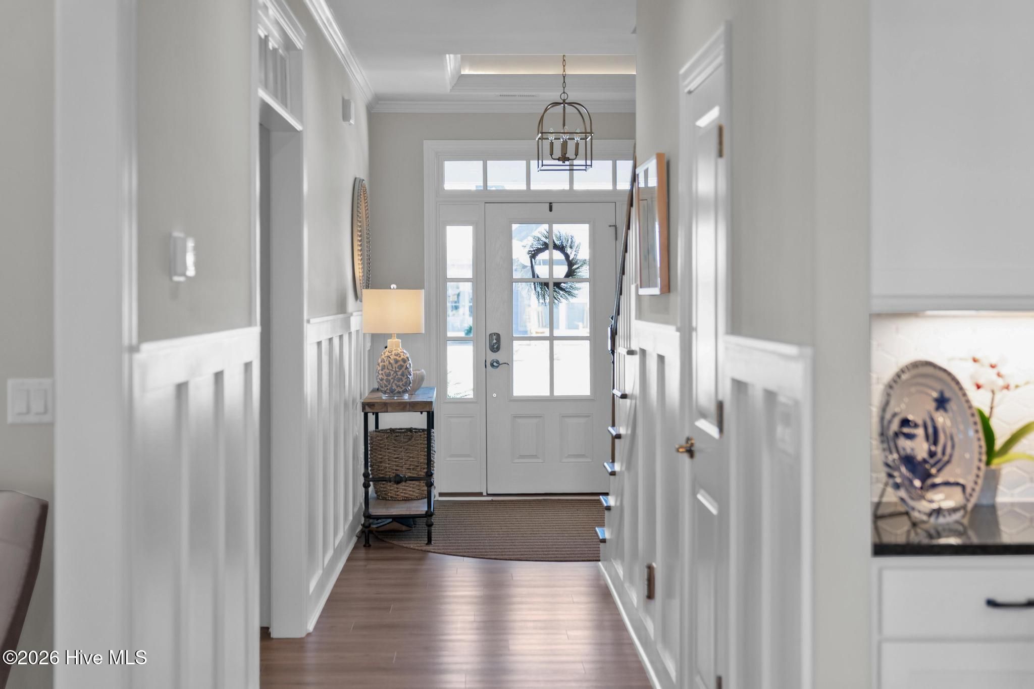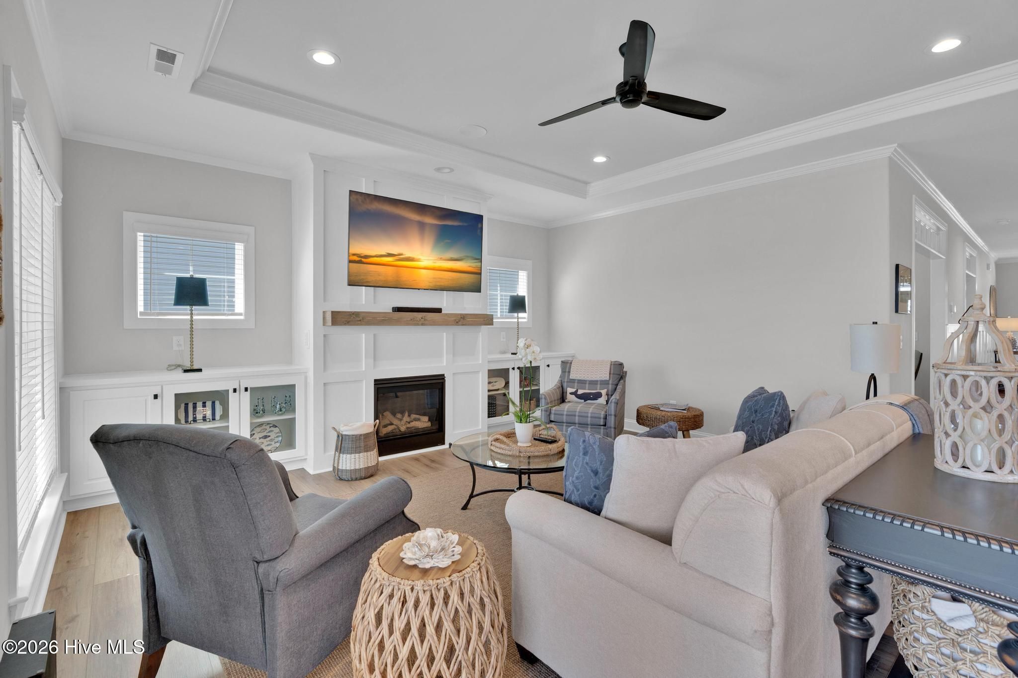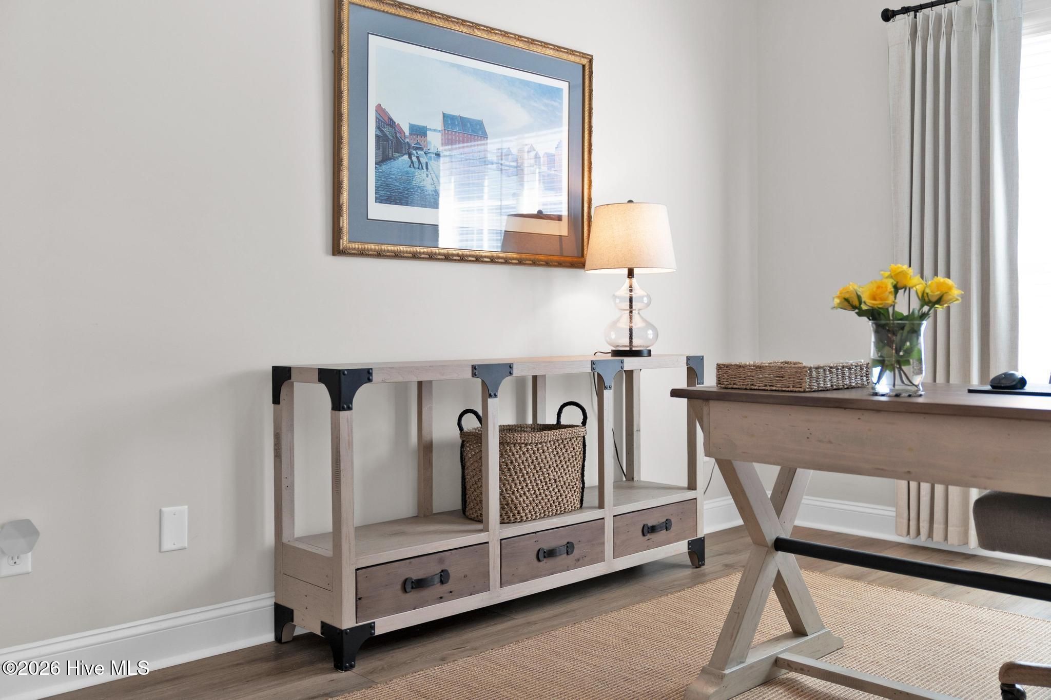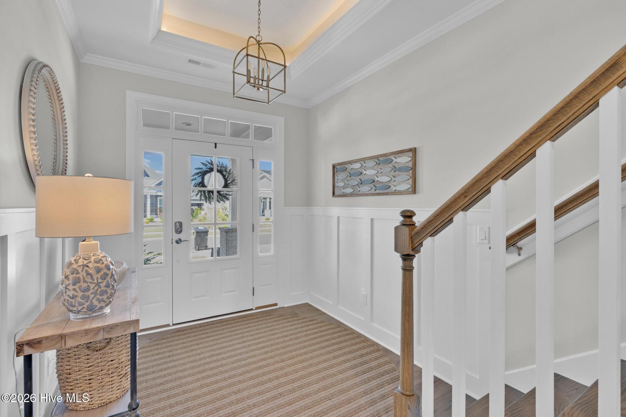 Enjoy easy, low-maintenance living in this beautifully designed Trusst-built townhome, just 3 years young and offering over 2,400 square feet of bright, open space in one of Brunswick Forest's most walkable locations. Filled with natural light, the home welcomes you with a spacious great room featuring a gas fireplace, custom built-ins, and an open layout ideal for both everyday living and entertaining. The gourmet kitchen offers generous counter space and flows seamlessly into the main living area, along with a dedicated dining space perfect for gathering. A designated office provides flexibility for working from home or quiet retreat. The first-floor primary suite adds everyday convenience, complete with an ensuite bath and a large walk-in closet. Upstairs, guests have plenty of room to spread out, along with abundant storage including a large attic and a well-sized garage. Step outside to the lanai and take in peaceful pond views and coastal breezes--perfect for morning coffee or relaxing evenings. Located in Brunswick Forest, this home offers exceptional access to the community's lifestyle amenities, including the nearby private golf club (membership required), pickleball courts, and miles of scenic walking and biking trails. Shopping and dining are conveniently located at the front of the neighborhood. Just 12 minutes to historic downtown Wilmington, 15 minutes to Wilmington International Airport, and a short drive to several area beaches. A bright, beautiful home offering comfort, convenience, and the coastal lifestyle buyers are looking for.