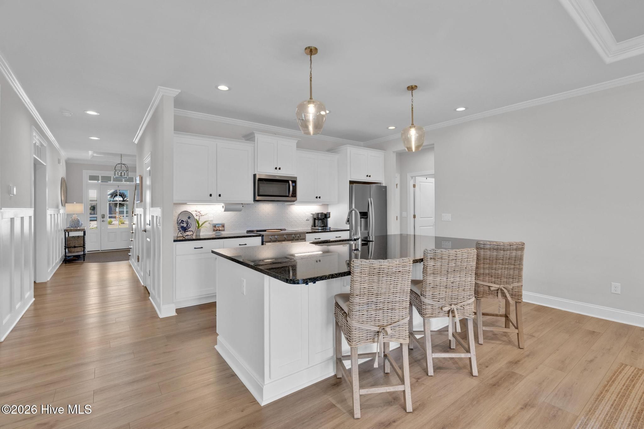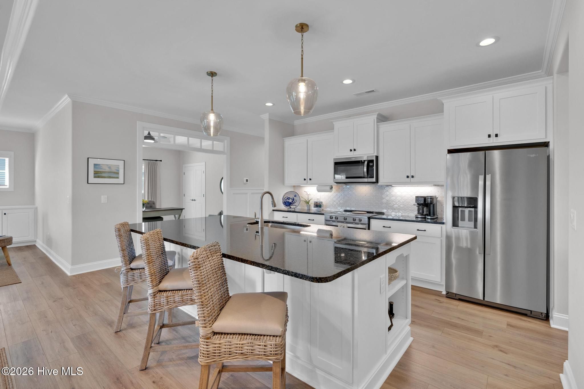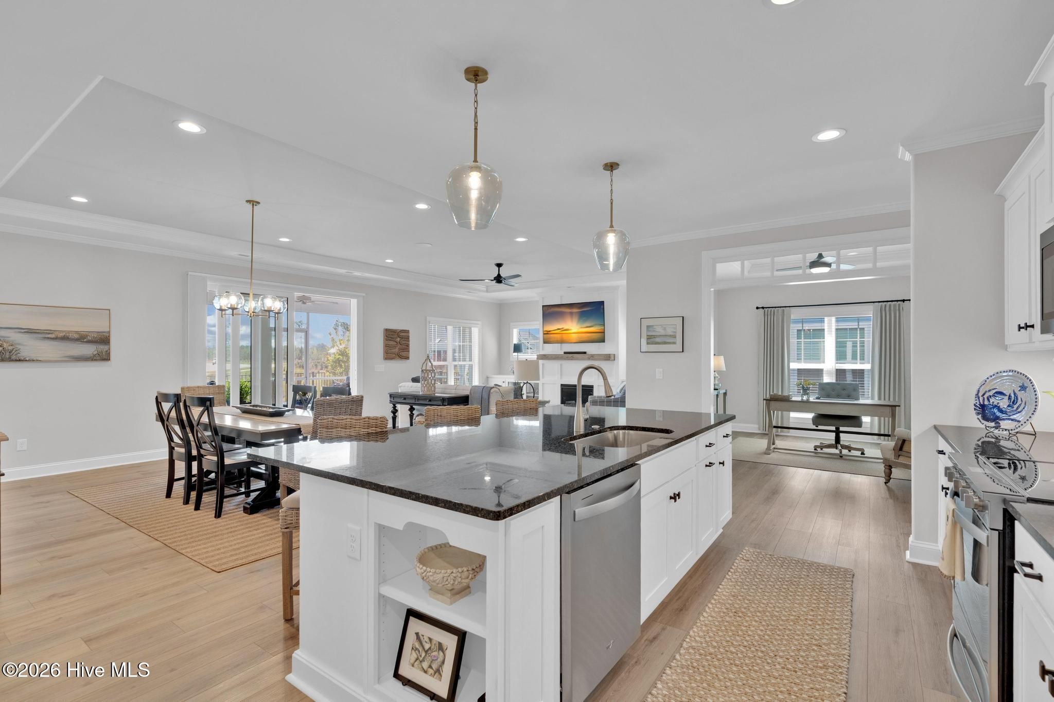 - Master Downstairs, Walk-In Closet(s), Tray Ceiling(s), Kitchen Island, Ceiling Fan(s), Pantry, Built-in Features