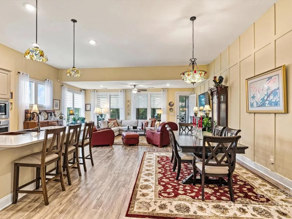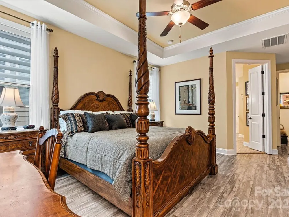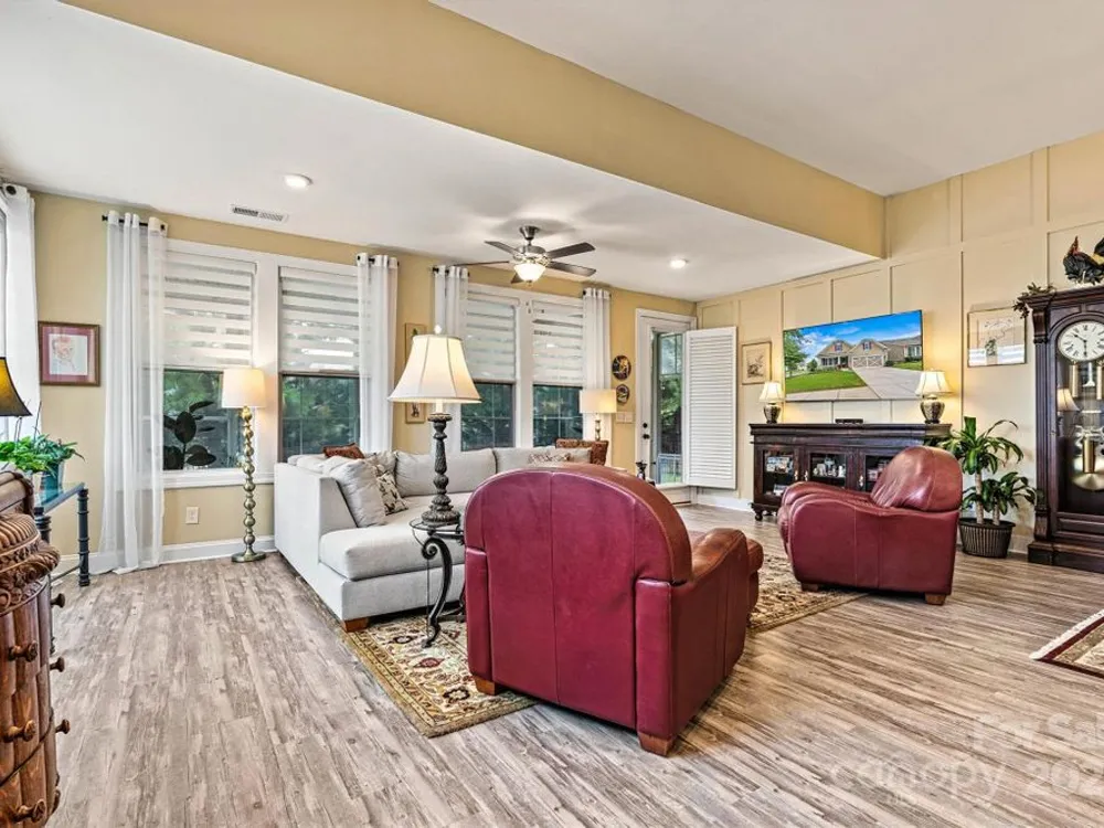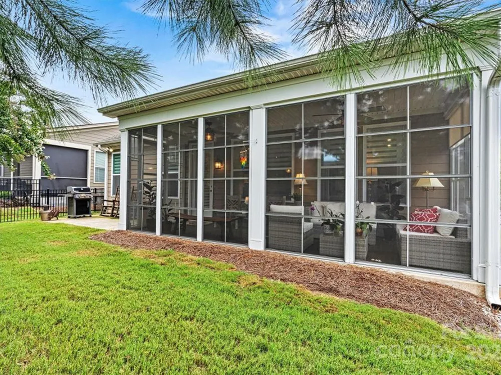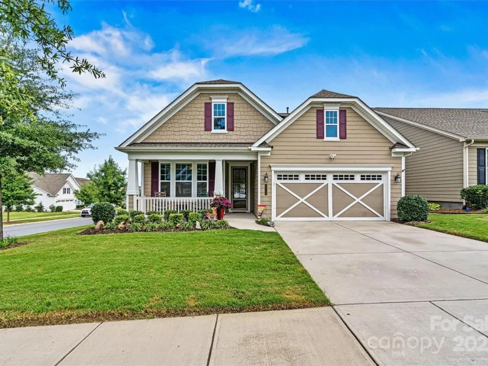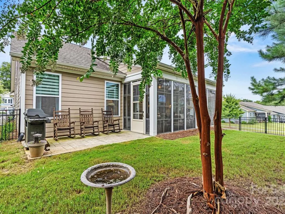 Welcome to this stunning BEECHWOOD model from Kolter Homes’ Trade Collection, perfectly situated on a corner homesite in the highly desirable Cresswind Charlotte 55+ community. Every detail has been thoughtfully upgraded, offering the perfect blend of comfort, style, and low-maintenance living. Step inside to find a bright and open floor plan with 1,739 sq ft of heated living space, featuring 2 spacious bedrooms, 2 full baths, and an extended open Sunroom. The freshly painted interior boasts luxury vinyl plank flooring throughout—no carpet anywhere—recessed lighting, upgraded fixtures, and custom accent walls. Both the Primary and Guest bedrooms include custom closets, while the Primary Suite features a tray ceiling, spa-like zero-entry shower, dual vanities, and solid French doors leading to the ensuite. The gourmet kitchen is a true showstopper with quartz countertops, upgraded cabinetry with soft-close doors and drawers, a mosaic tile backsplash, oversized island, stainless steel appliances including a gas cooktop, wall oven, convection microwave, and a hammered copper sink. The open design flows seamlessly into the dining and living areas, perfect for entertaining. Enjoy year-round living in the 3-season room with remote-controlled shade and ceiling fan, or step outside to the extended paver patio, fully FENCED backyard, upgraded landscaping, and full inground irrigation system - with irrigation water included in the HOA dues. Additional highlights include a whole-house Generac GENERATOR, custom Silhouette window shades, Murphy bed with memory foam mattress, painted garage with attic storage, and a French drain system for peace of mind. With its covered front porch, beautifully maintained yard, and move-in ready upgrades, this home combines elegance and function in one of the most sought-after active adult communities in the region.