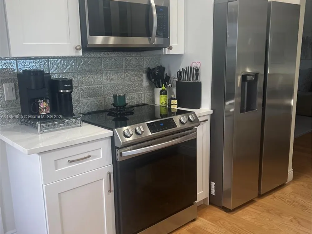 - Dryer, Dishwasher, Electric Water Heater, Disposal, Ice Maker, Microwave, Refrigerator, Self Cleaning Oven, Washer