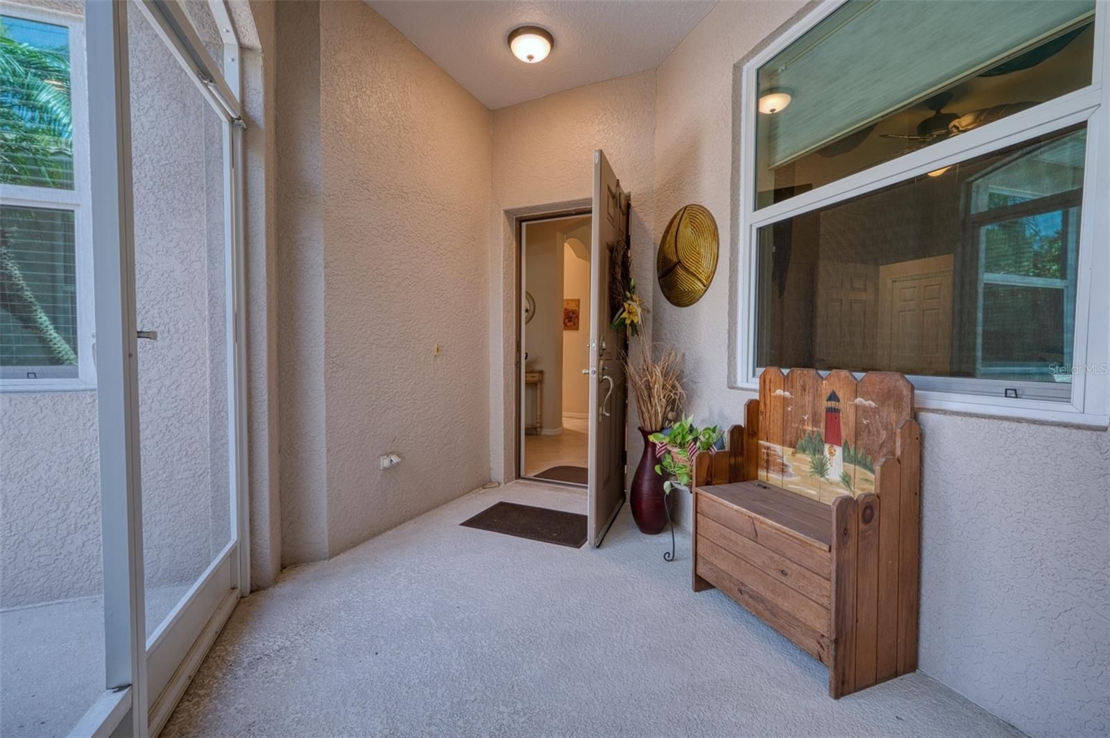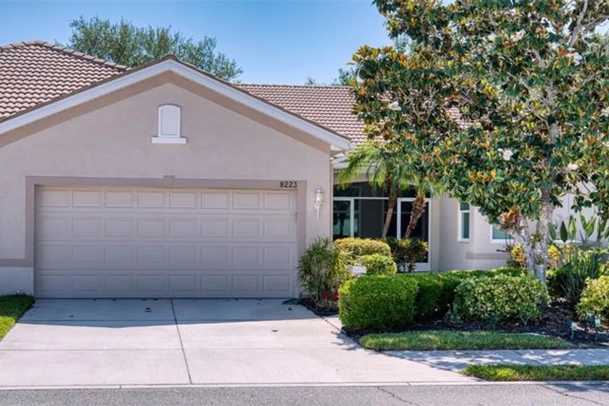 Impact windows highlight this optional furnished three bedroom villa. A yard that is a Dog owners delight! This 2 bedroom plus den villa also includes a 4 season enclosed lanai with sliders that allow for the breezes to flow. Exquisitely maintained- New AC - 2023, Hot Water Tank - 2021, New rugs in the bedrooms, and Hardwood floors, and tile throughout. The solar tubes allow the light to come in, so this home feels light and bright without any lights on. A beautiful clubhouse, pool and hot tub, and lots of activities makes living in Lakeridge falls an easy way to enjoy Florida life. Wonderfully located Lakeridge falls answers all your needs and wants - Close to everything, but away from it all! -A walkable community - with Publix, Paneras, and more an easy walk. An easy drive to downtown Sarasota, our beautiful beaches, UTC Mall, Benderson Park, Lakewood Ranch, and I75.