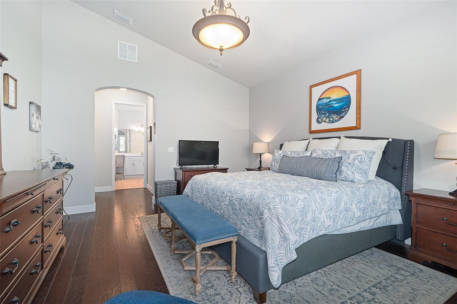 Perfectly sized and beautifully maintained, this just-under-1800 sq. ft. home is ideal for those looking to right-size without sacrificing comfort or quality. Located in the desirable, friendly Creekside neighborhood within the gated community of Plantation Bay, this home offers privacy, style, and a thoughtfully designed layout. Step through the elegant glass front door into an inviting open-concept living space. The upgraded kitchen features stunning granite countertops, a coordinating tile backsplash, 42-inch soft-close cabinetry, a spacious walk-in pantry, and an oversized center island—perfect for casual dining or morning coffee. The adjoining family room offers tile flooring, a ceiling fan, and sliding doors that open to the screened lanai, creating a seamless indoor-outdoor living experience with serene views of the wooded preserve. The primary suite is privately tucked away on its own side of the home and offers wood flooring, a walk-in closet, and a charming window seat overlooking the peaceful backyard. The en-suite bath includes quartz countertops, dual sinks, and a large walk-in shower. Two additional bedrooms also feature wood floors and plantation shutters, with the guest bath offering a quartz vanity and tile shower/tub combination. Outdoor living is a highlight of this home—relax on the screened lanai with paver flooring and pre-installed plumbing for a future outdoor kitchen, or enjoy the additional open-air paver patio just beyond. The fenced area of the yard is ideal for pets, and the preserve backdrop offers natural beauty and privacy. This meticulously maintained home includes upgrades throughout: paver driveway, stone-accented front entry, plantation shutters, epoxy-coated garage floor, hybrid water heater, irrigation system with well, and more. Located on a quiet private street and just moments from the convenient third entrance of the community, this home offers quick access in and out while still enjoying the full lifestyle benefits of Plantation Bay—an upscale, golf cart-friendly, amenity-rich community with optional club memberships. Enjoy 45 holes of private golf, 10 pickleball courts, 9 tennis courts, bocce ball, 2 clubhouses including the brand-new $30M Founders Club, fitness and spa center, cabana bar & grill, resort pool, and a full social calendar. Buyers of this home will receive a substantial discount on the club initiation fee—ask the listing agent for details. (NOTE: Furniture is negotiable)