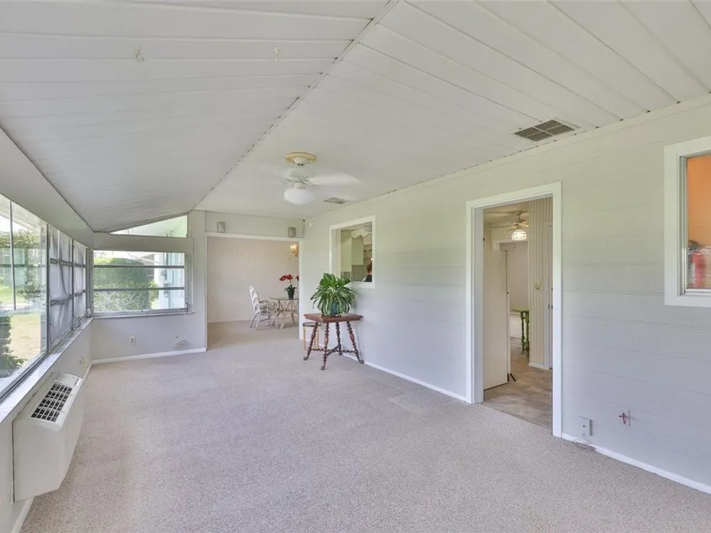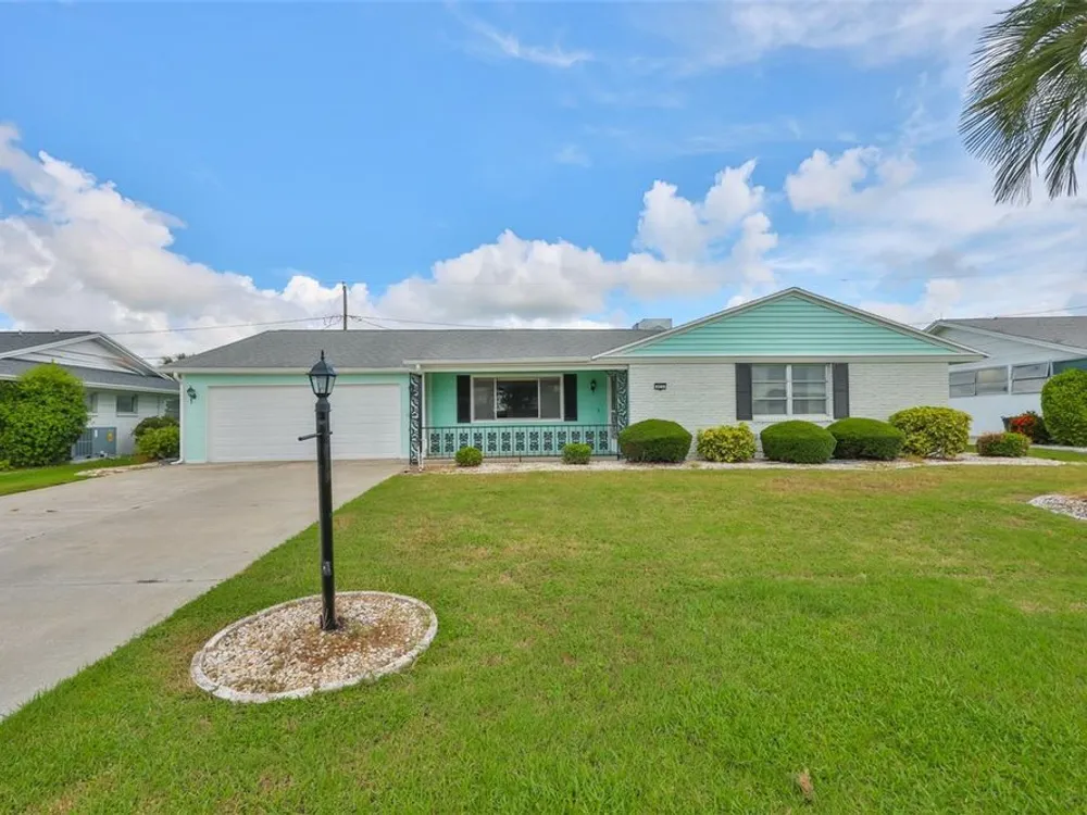 WELCOME TO YOUR CHARMING, FRESHELY PAINTED HOME- NO HOA REQUIRED! Nestled on the North side of Sun City Center this lovely home features Florida friendly landscaping, lush green lawn, & newly painted exterior lending to the homes fantastic curb appeal. With its vintage charm & plenty of potential you can transform this property into your dream home. From the moment you walk up to the quaint front porch & step inside you will be delighted by the recently painted light grey interior color scheme, freshly clean Berber carpet, spacious rooms & closets, and several new fans. There is an eat-in kitchen and roomy dining room with abundant counter space & cabinets that open onto your enclosed lanai, perfect for relaxing and entertaining family & friends. Enjoy the extra living space and the convenience of built-in shelves ideal space for morning coffee as you sit and plan your day. Your oversized primary bedroom has a generous walk-in closet & dressing vanity, and the ensuite bath has a convenient walk-in shower. The guest bedroom & bath provide comfort and ample closet space and because it’s filled with retro vibes, integrated cabinets that are ideal for storage and organization. The interior laundry room is equipped with a washer, dryer, & handy overhead cabinets. A rear door makes it easy to access your yard where you can relax in the open green space behind the home, watch the birds, or tend to your plants & flowers. UPGRADES: 2025 Hot Water Heater, 2025 Interior & Exterior Painting, 2019 York HVAC, 2013 Roof, 2004 Replumbed. This home has plenty of classic appeal & with the right vision you could create a personalized retreat or make a smart investment-supported by excellent rental history and strong future potential-this home offers exceptional possibilities. Sun City Center (SCC) is a vibrant & active 55+ golf cart community. It is close to airports, beaches, shopping & big city nightlife & entertainment. Residents can enjoy outdoor pools & spas, a well-equipped fitness center, a community hall, library, arts/crafts, outdoor sports, Lawn bowling, Pickleball and golf. Don’t miss your opportunity -schedule a showing today! Start enjoying your new SCC lifestyle. This home is priced to sell-you will love calling it yours!