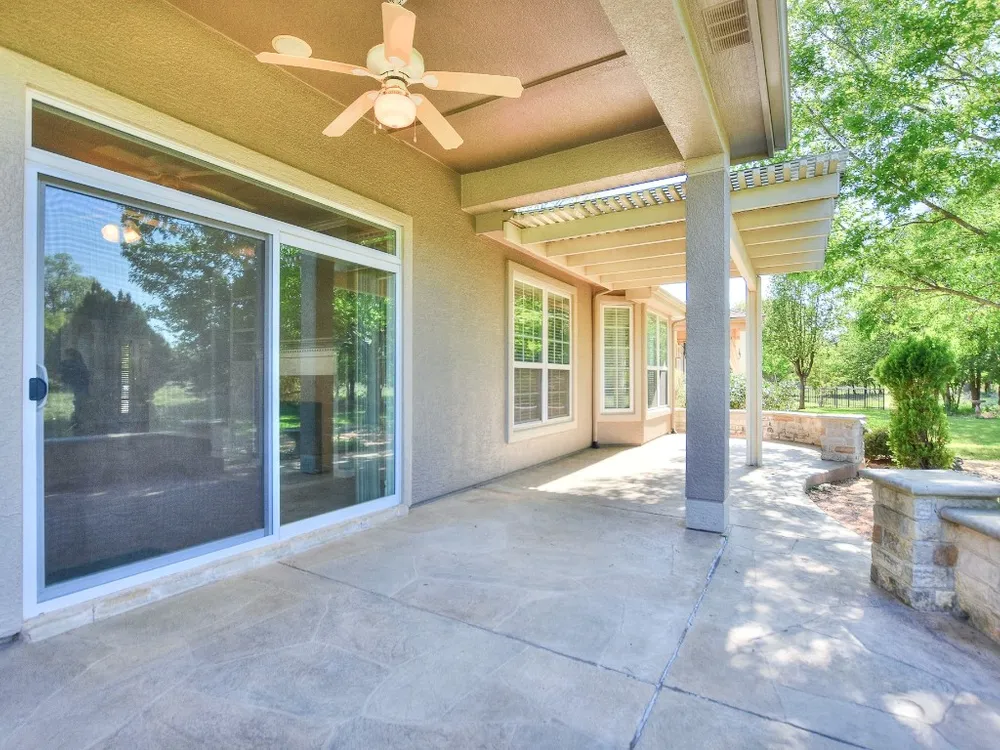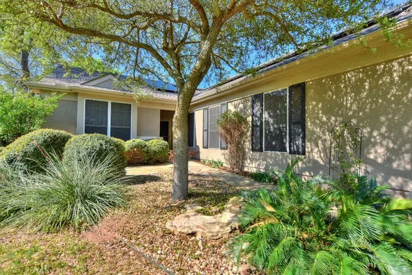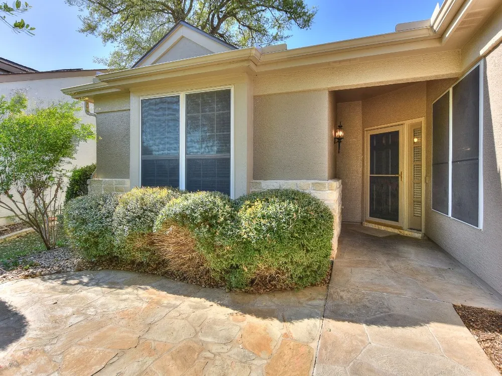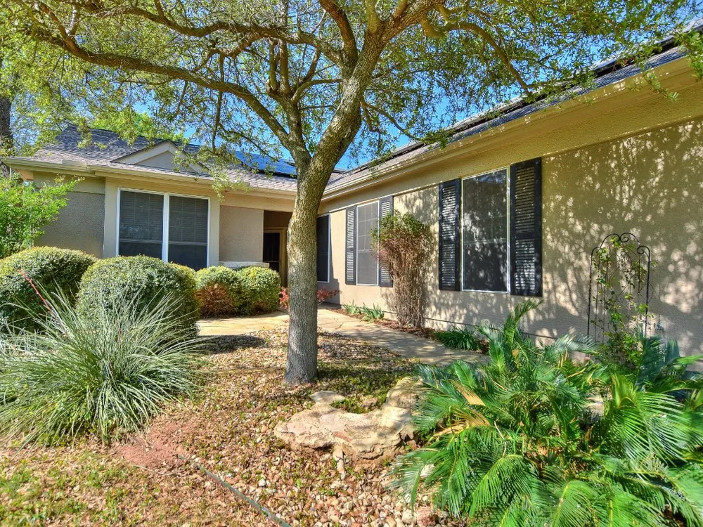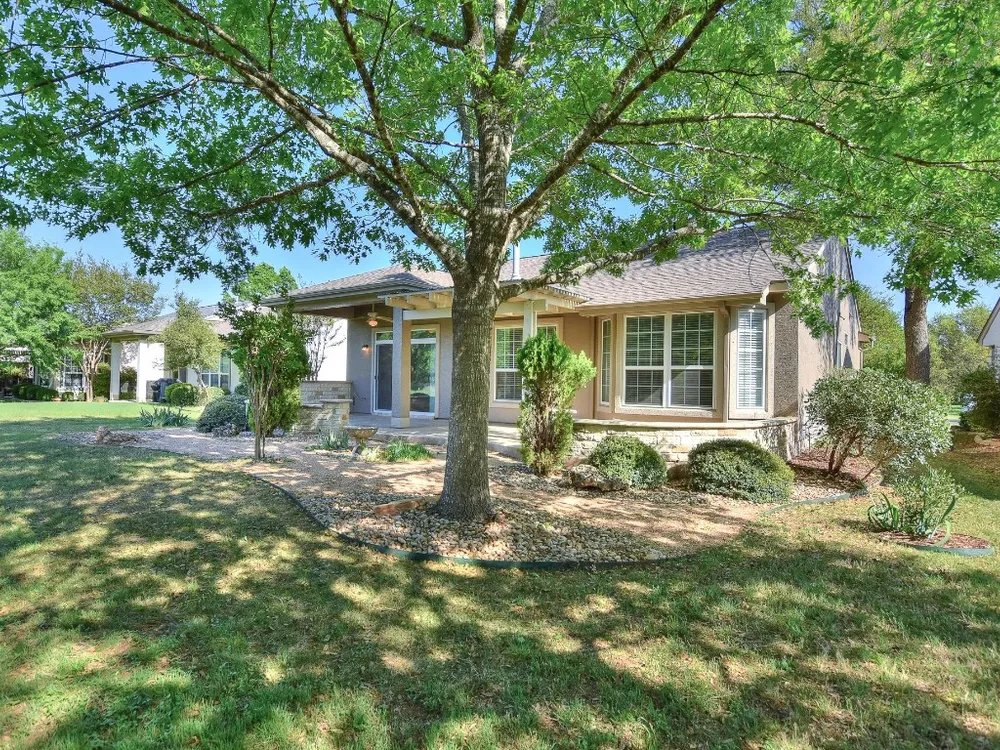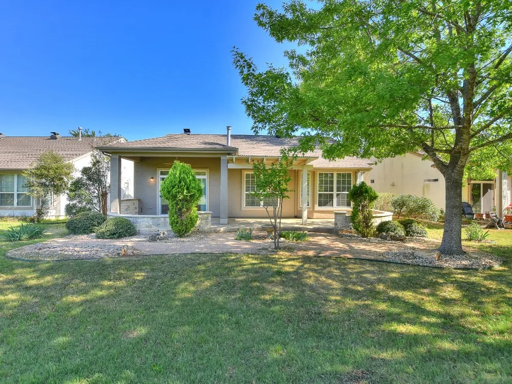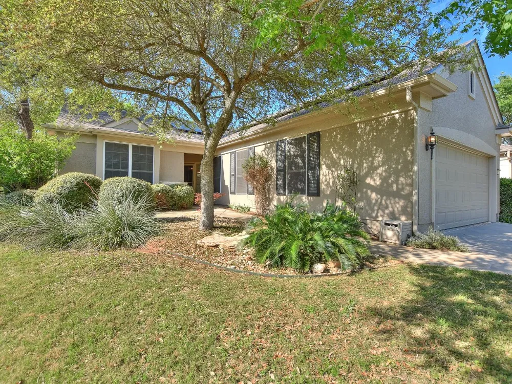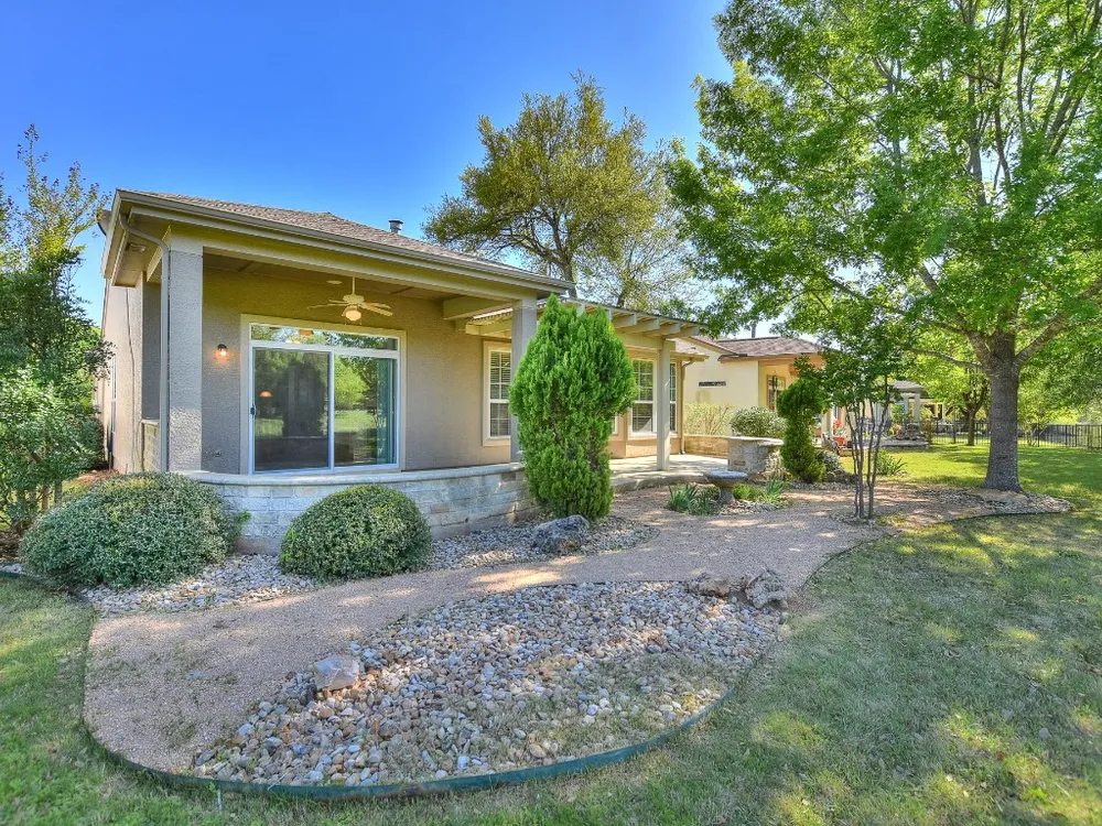 Location! Location! Location! Come home to this Monroe plan on fabulous greenbelt. So much nature and trees to enjoy. Front stone courtyard for overlooking the greenbelt/park in front of the home. Quartz kitchen counters with updated appliances. Large pantry with additional wider shelves. Monroe has 2 bedrooms + Study. Tile floors and Wood will make for easy keeping-No Carpet. Gas fireplace in family room will be fun to cozy up to on some cool days. Built-In cabinets with lighting is a great place for extra storage. Study has double doors for privacy as needed. Extended garage with plenty of built in storage and work bench. Water Softener. Solar panels will help keep utilities lower. Back Covered patio has been extended with stone and a great stone seat wall. This patio will be your favorite place to relax and enjoy your private greenbelt view. Come and Just Do this lifestyle.