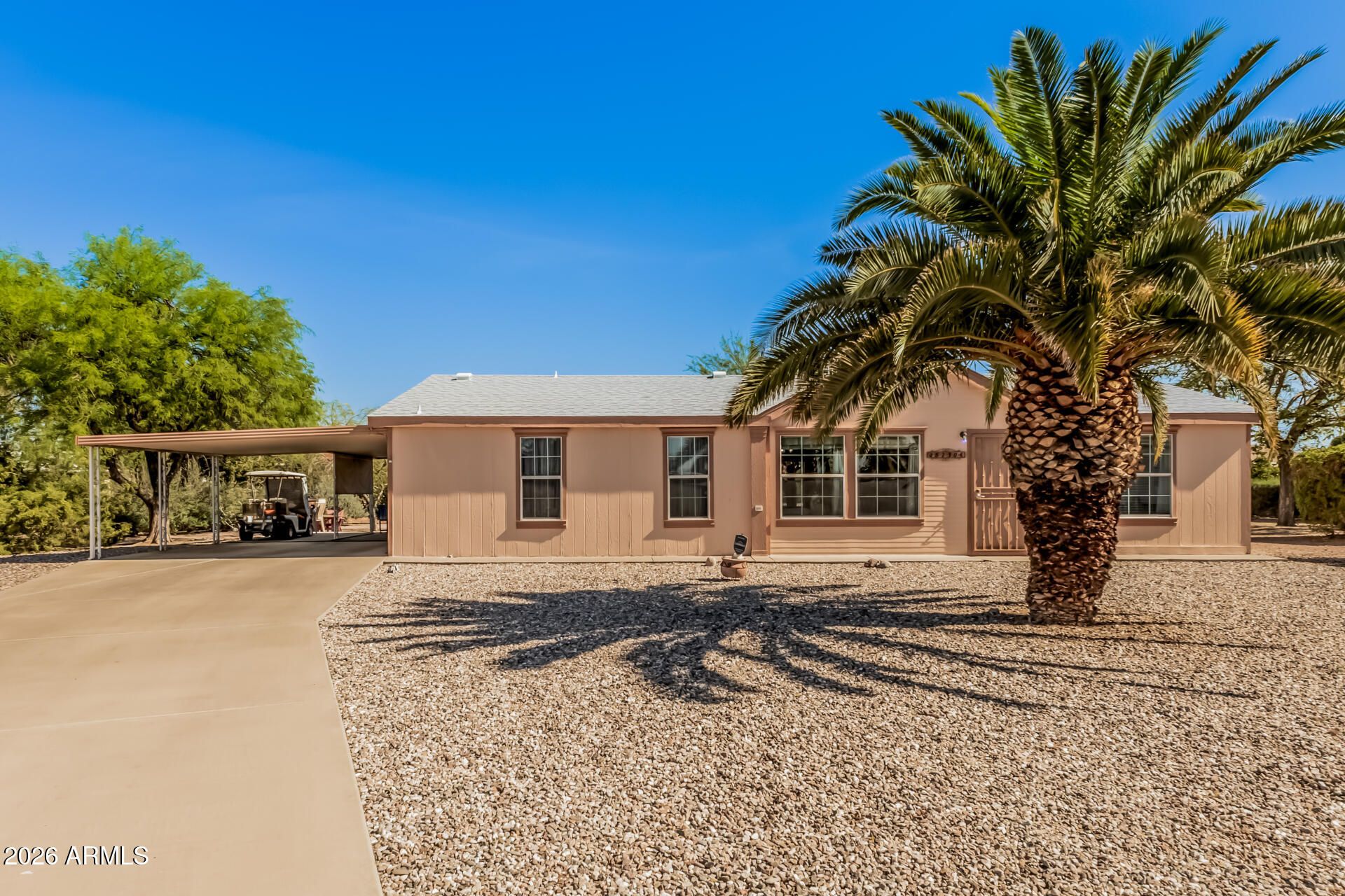 Rare newer manufactured home built in 2000 with full drywall interior & pitched roof. Located on a quiet cul-de-sac on a nearly ½-acre lot. 3 bedroom split floor plan with 2 full baths, soaring ceilings & extended layout creating larger bedrooms. Large screened porch & storage shed plus covered parking for up to 3 cars. Wheelchair accessible doors throughout. Energy efficient Low-E windows with newer screens and natural gas service to range/oven & water heater. Major updates include new HVAC (2023) exterior paint (2021) water heater (2020) and new 30-year roof installed in 2018. Fountain of the Sun is a highly regarded gated community with 24-hour security. Residents enjoy an impressive range of amenities for both relaxation and an active lifestyle. Click here for more: The community features a clubhouse, fitness center, library, computer room, card room, arts and crafts studio, and billiards. Outdoor amenities include a heated pool & spa, pickleball, bocce ball, shuffleboard and horseshoes. The on-site public golf course offers optional memberships and Birdies Bar & Grill provides convenient dining within the community. A full calendar of activities includes live music concerts, dances, golf tournaments, pickleball and bocce ball events, creating a vibrant and social atmosphere for residents.