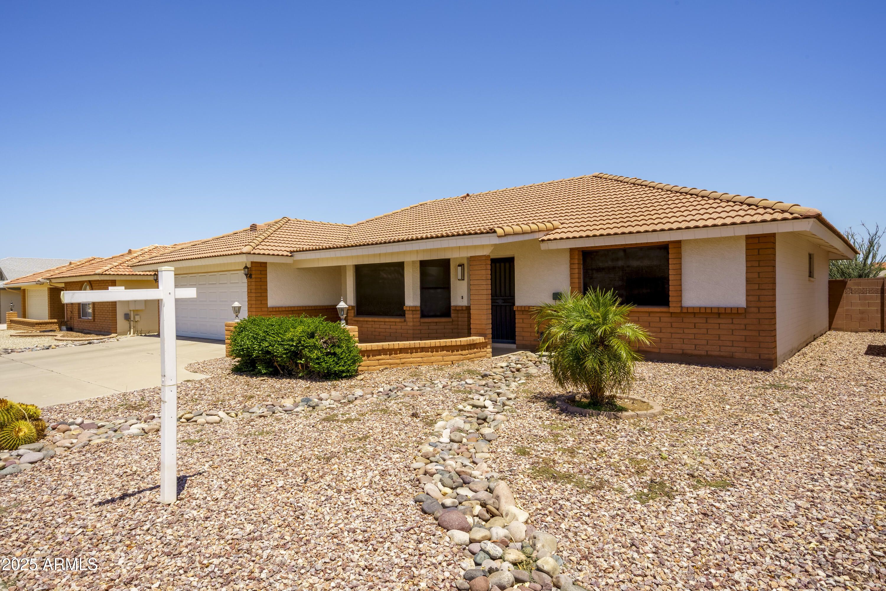 Move-In Ready home located in Adult (55+) East Valley Community! A Split Two Bedroom, Two Bath Layout with Vaulted Front Living Room featuring a Custom Bay Window overlooking the spacious front Patio (Southern Exposure). Tile Roof, Tile Flooring in main living areas, new carpeting in Bedrooms. Kitchen has Granite Countertops, Oak Cabinetry, Tile Backsplash. Back Family Room leads to covered back patio with block wall fenced backyard. Other features included ceiling fans, decorative light fixtures, primary bedroom walk-in closet, epoxy coated garage floor, attached garage storage cabinets, new hi-rise toilets. Community offers Golf, Tennis, Pickleball, Swimming Pools, Fitness Centers, so much more. Buyers required to pay $3000 SVE HOA Capital Contribution Fee.