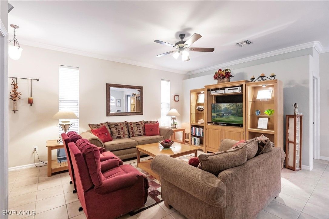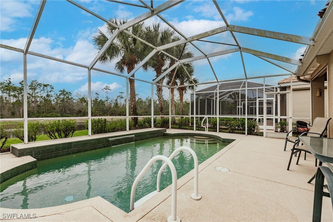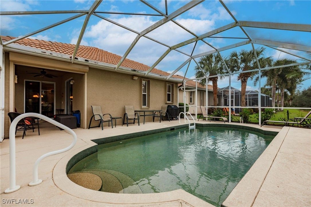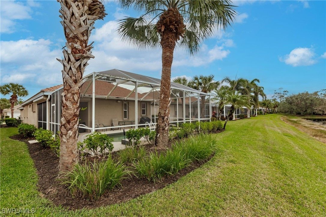 Enjoy your own tropical oasis with this nice waterfront TURNKEY home with soothing pool and relaxing waterfall feature. Brand NEW AC in 2024, refrigerator 2020, water heater 2019 and new pool pump in 2024!! Freshly painted with new exterior paint and pool deck in 2025!! Nice privacy screen on the lanai and screened in front entry, to welcome the Florida breezes. This is a Social Membership property, so you can enjoy all the amenities except golf without the high fees of a golf membership or golf assessment, yet plenty of local golf courses to play at your own leisure. Great location too.. only steps to the pool!! The Legends is a prestigious private country club that offers a wide array of amenities and eating options such as bocce, tennis, pickleball, sports bar, fine dining, exercise facility with tons of classes to choose from along with a gorgeous outdoor sunset grill aside a refreshing lagoon style pool with a waterfall. Convenient location too.. close to shopping, dining, entertainment, I75 and SWFL International Airport. Resort Style living to it's finest, MOVE IN READY and waiting for you to call it home!!