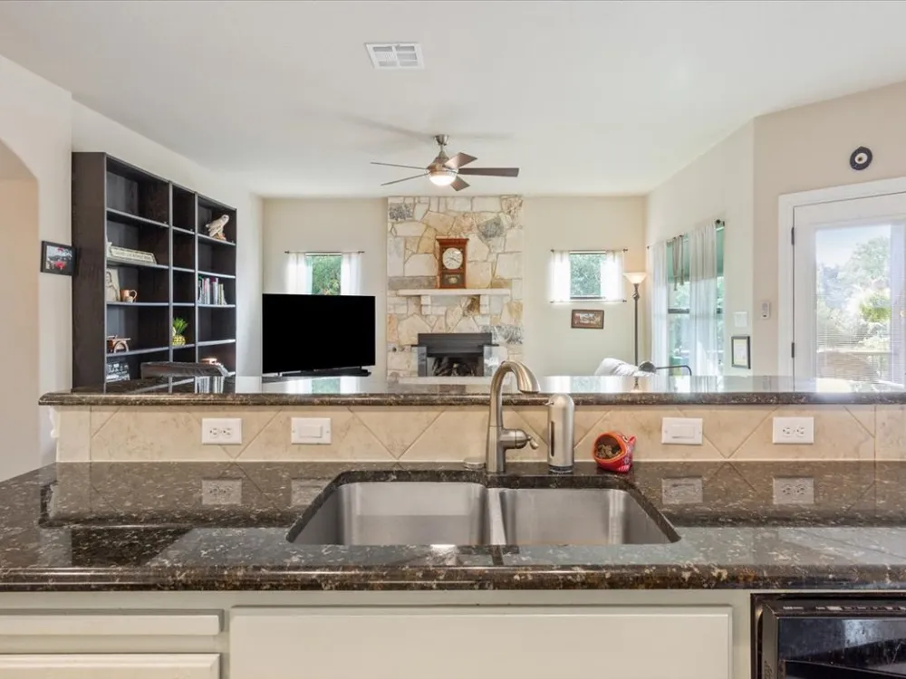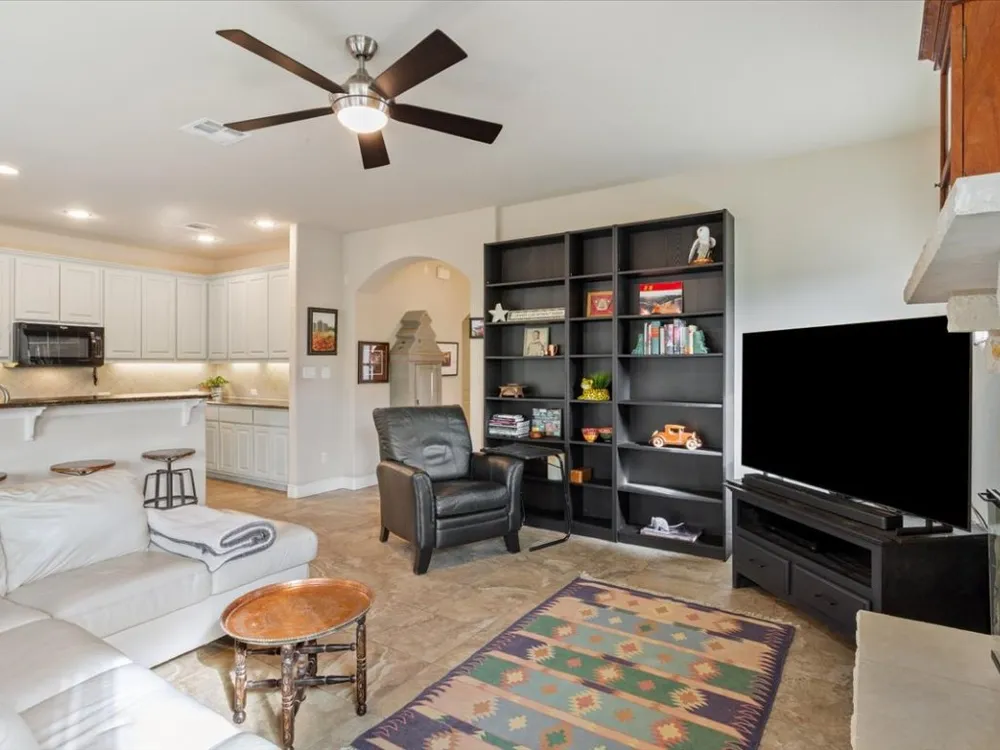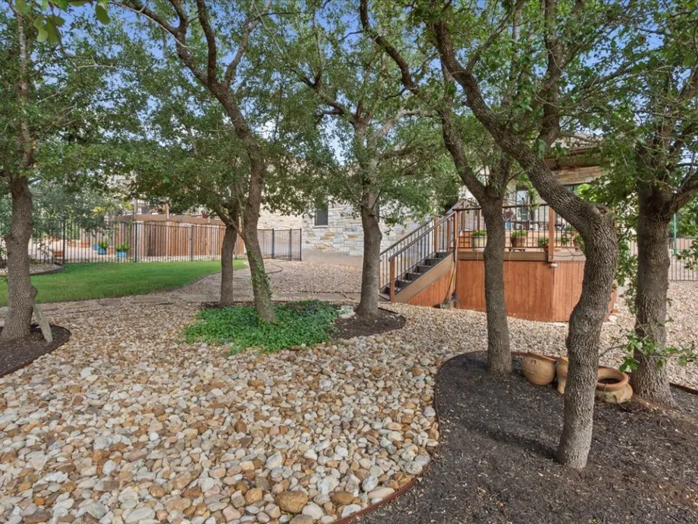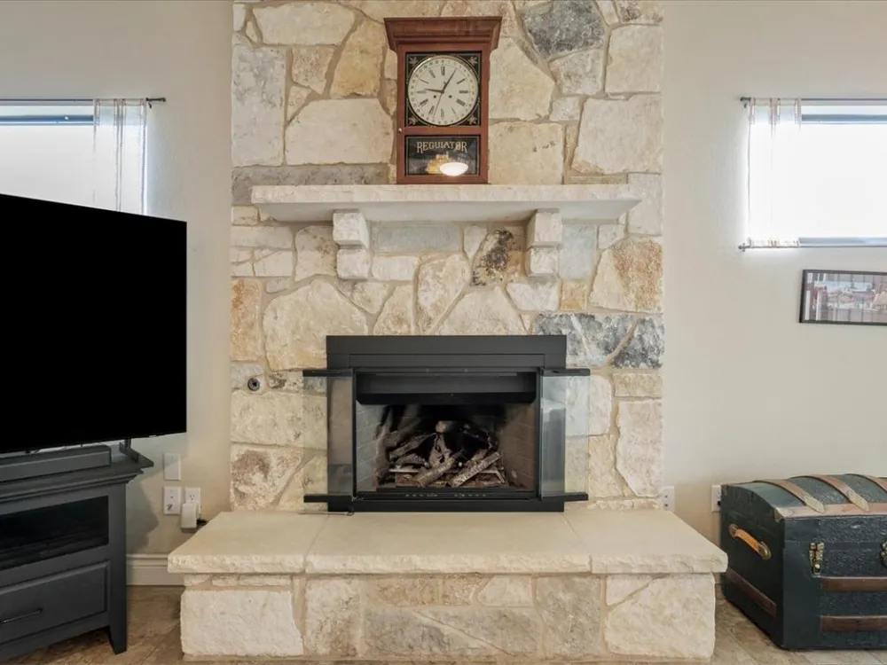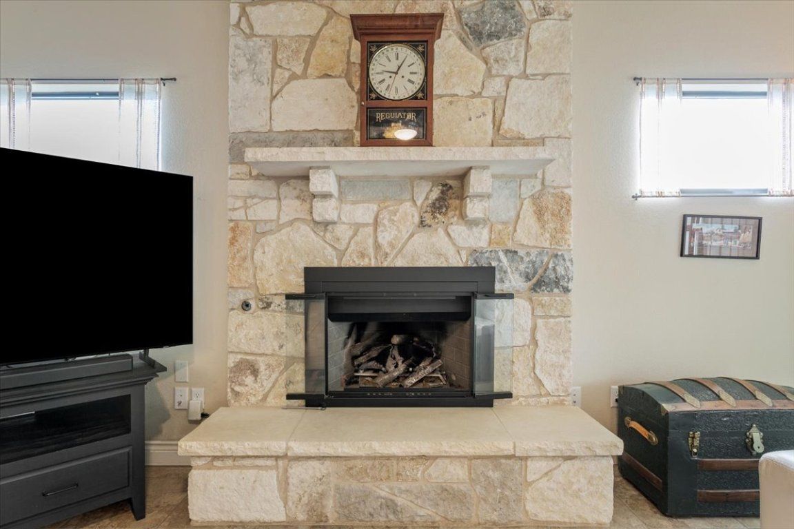 Set against a stunning greenbelt in the 55+ Heritage Oaks community, this Jimmy Jacobs-built home offers serene outdoor living with expansive, multi-level Trex decking with storage below, KoolCote front and rear patios, a flagstone walkway in a fully fenced yard. Enjoy morning coffee on the front porch or relax back on the deck while taking in the peaceful views—nature is truly part of this home! Inside, the open floor plan features 2 bedrooms, 2 bathrooms, and a large office with French doors. The living area is anchored by a dramatic stone-to-ceiling gas fireplace, dining space with fabulous views, and the kitchen showcases granite countertops, and a gas range. All appliances convey. The oversized primary suite includes dual vanity, walk-in shower, a spa tub, and a spacious walk-in closet for him and her. Updates include a new roof in 2020, a garage door opener in 2025, an insulated garage door, and an epoxy-coated garage floor. Heritage Oaks residents enjoy a vibrant community lifestyle. The amenities include- clubhouse featuring a ballroom with full commercial kitchen facilities, a state-of-the-art fitness center, a billiards and dart room, and a library/game room. Walking trails and a variety of community activities make it easy to stay active and connected. Close to Lake Georgetown and the infamous Georgetown Square, this home blends a great floor plan with exceptional outdoor spaces and views you’ll love coming home to.