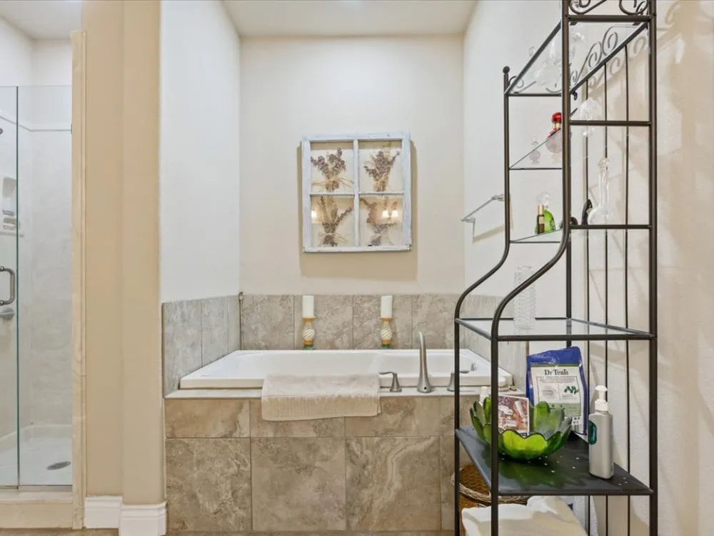 - Breakfast Bar, Ceiling Fan(s), Double Vanity, Entrance Foyer, French Door(s)/Atrium Door(s), Granite Counters, Kitchen Island, Main Level Primary, NoInteriorSteps, Open Floorplan, Pantry, Recessed Lighting, Soaking Tub, Walk-In Closet(s)