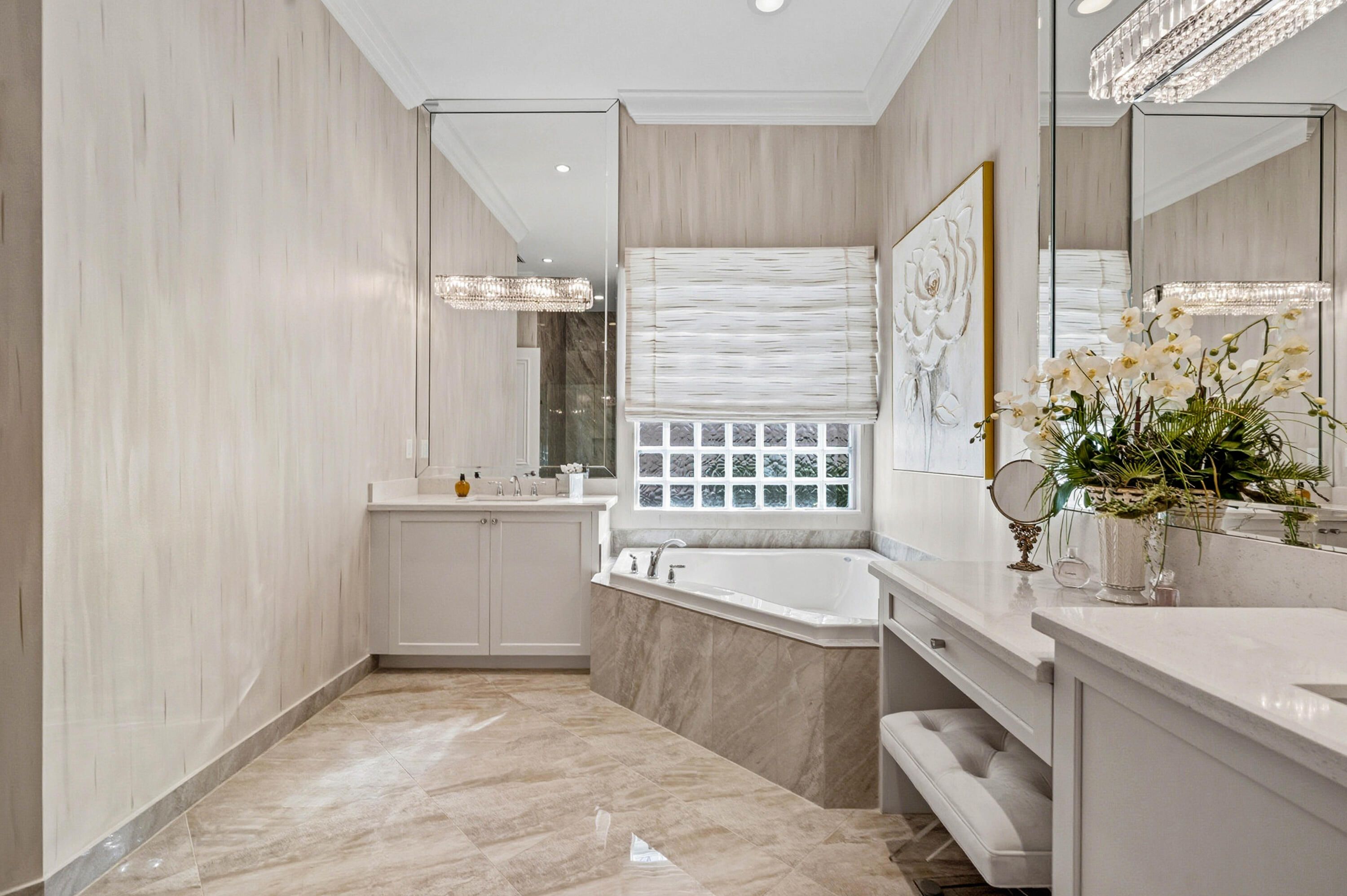 - Built-in Features, Entrance Foyer, High Ceilings, Pantry, Walk-In Closet(s), Split Bedrooms, Closet Cabinetry, Custom Mirrors, Garden Tub/Roman Tub, Impact Glass, Breakfast Area, Eat-in Kitchen, Separate/Formal Dining Room, Snack Bar, Dual Sinks, Main Level Primary, Separate Shower, Soaking Tub