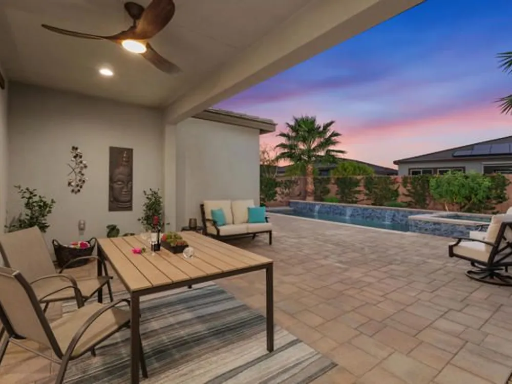 This is the deal of 2025! 3 Bed + Den/Office w/Private POOL!Our favorite floor plan, THE CONNECT, features an expanded yard & a sparkling pool with waterfalls. This captivating 3BR/2BA + Den/Office residence is perfect for avid entertainers. The home boasts premium upgrades, including high-end appliances, quartz countertops, California Closets & spacious white shaker cabinets. The open concept living area includes a dining space & a retractable glass wall leading to the covered outdoor living space, which features an extended yard with a beautiful pool & spa. With over $248,000 in upgrades this home is ready for immediate occupancy, allowing you to embrace the desert lifestyle without delay. Welcome to the prestigious, guard-gated Trilogy Polo Club, offering exceptional amenities & activities and a low HOA fee of $245 p/m. Community amenities are plentiful. For sports enthusiasts, there are tennis & pickleball courts, an Olympic pool, & a play pool. Fitness options include a state-of-the-art fitness center, yoga, resort-style pools, & walking paths. Social activities abound, including Mahjongg, poker, wine tastings, comedy night, karaoke; as well as, live music & a full-fledged art studio. All for a small transfer fee and $211 p/m. The club restaurant: June Hill's Table offers Farm to Table cuisine, entertainment and Happy Hour. Located in the vibrant ALL AGES community, this property is in the 55+ section, inviting you to embrace a lifestyle full of luxury & leisure. Don't miss the chance to make this your desert oasis, a place where everyday feels like vacation!