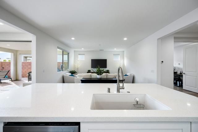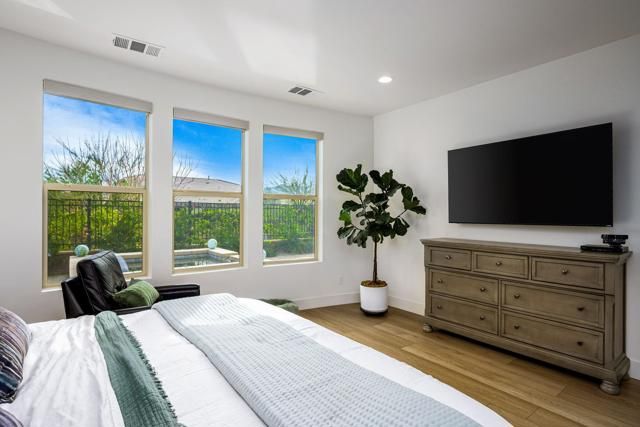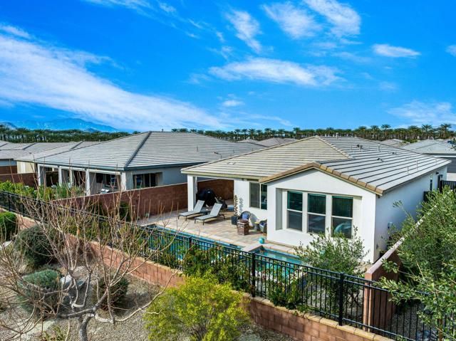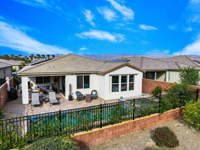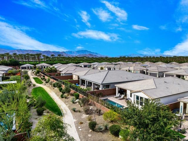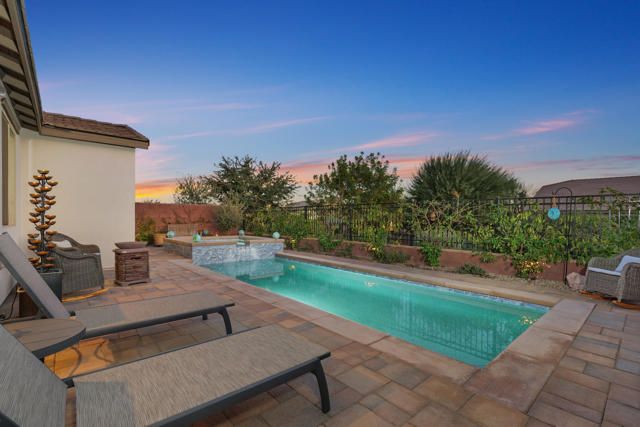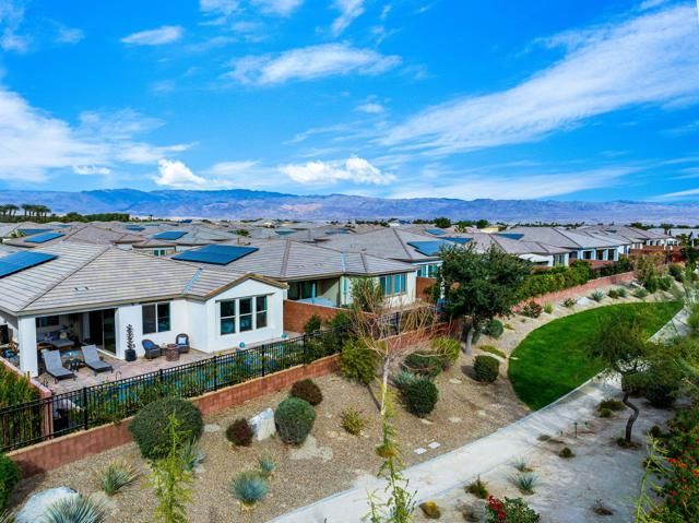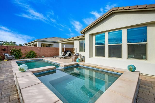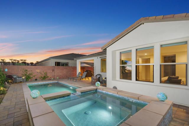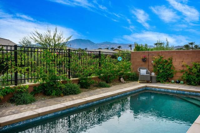 This stunning Reunion floor plan exemplifies perfection with style and functionality at its core. This home maximizes every square foot, offering two bedrooms, two baths, the third bedroom option is currently used as a spacious office, all adorned with upgraded lighting, light vinyl plank flooring, 8-foot doors, and sleek electric blinds. The open floor plan welcomes you with a gourmet kitchen with a large island, quartz countertops, a custom-designed backsplash, shaker-style cabinetry, and premium KitchenAid stainless appliances. Flowing seamlessly into the expansive great room, this space is perfect for entertaining or relaxing. A striking 15-foot rolling wall of glass opens to the covered patio, creating a harmonious indoor-outdoor experience. The primary suite serves as a luxurious retreat, complete with dual vanities, a seamless glass-enclosed shower featuring custom tile and a bench seat, plus an oversized walk-in closet. The secondary bedroom, located on the opposite side of the home, ensures maximum privacy. Step into the south-facing backyard to find your private oasis: a custom-designed pool with a raised spillway spa, surrounded by pavers and complemented by a covered patio, all while enjoying breathtaking mountain views from every angle. This home is packed with premium upgrades, including a spacious laundry room with a Smart Space, paid-for solar, epoxy-coated garage flooring, and a tankless water heater. With its unbeatable location and attention to detail, this home is a must see! Membership Available.